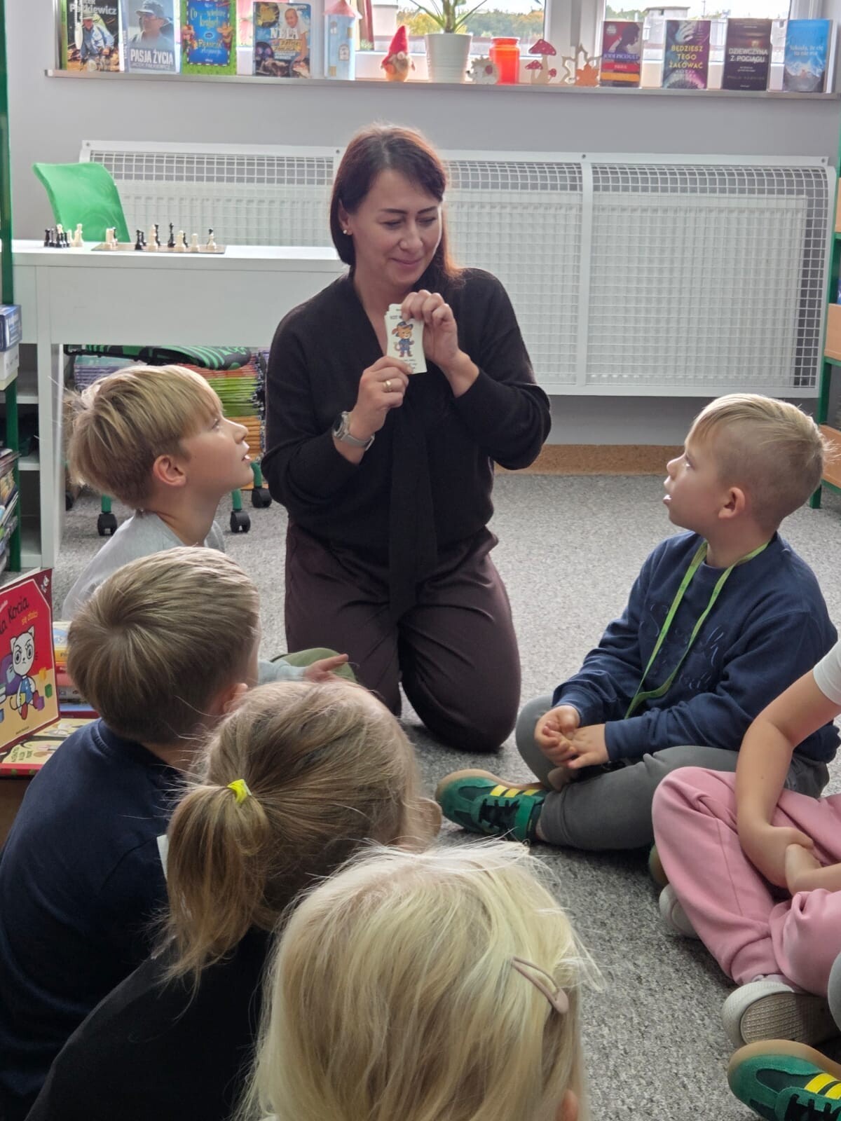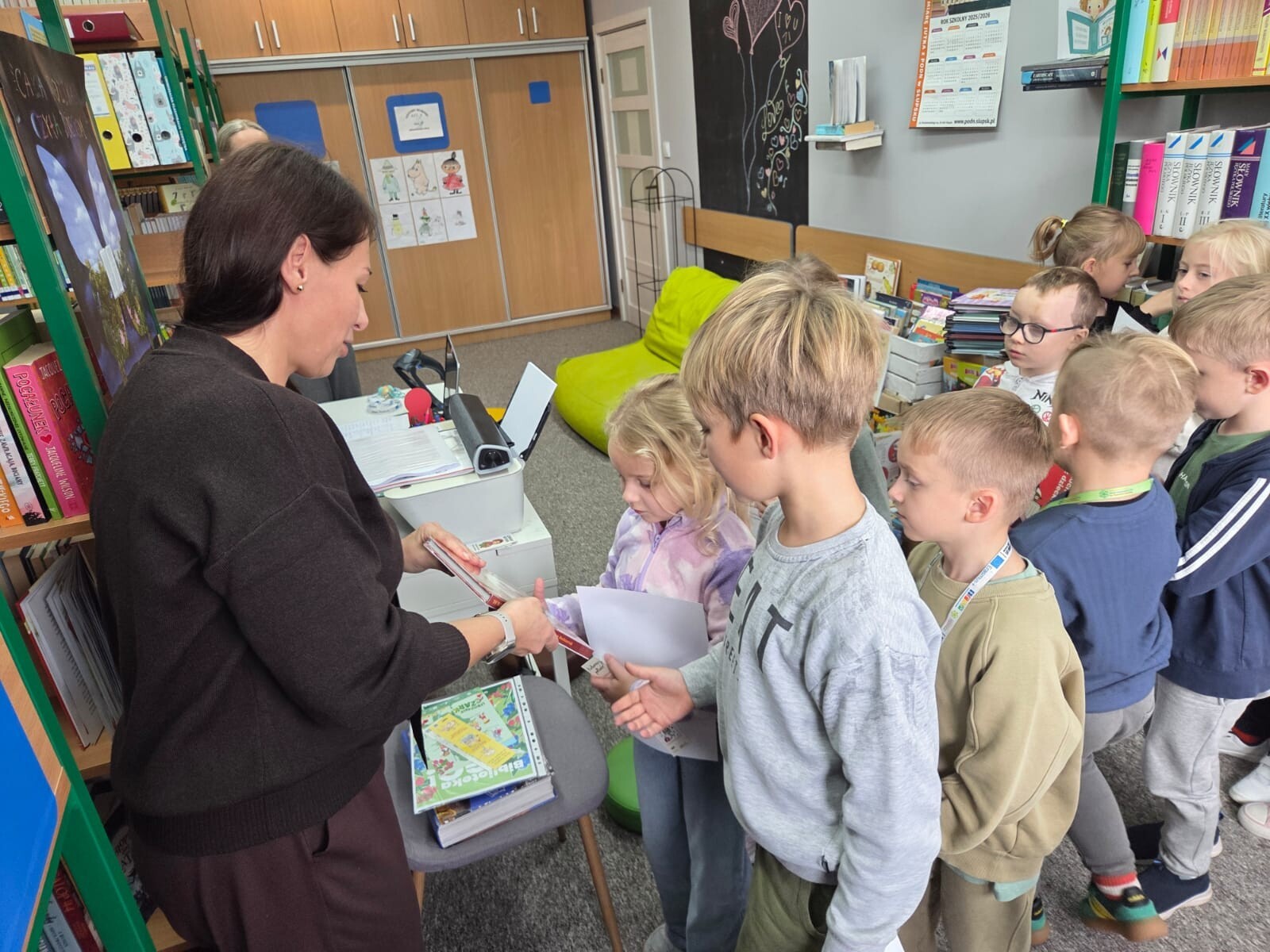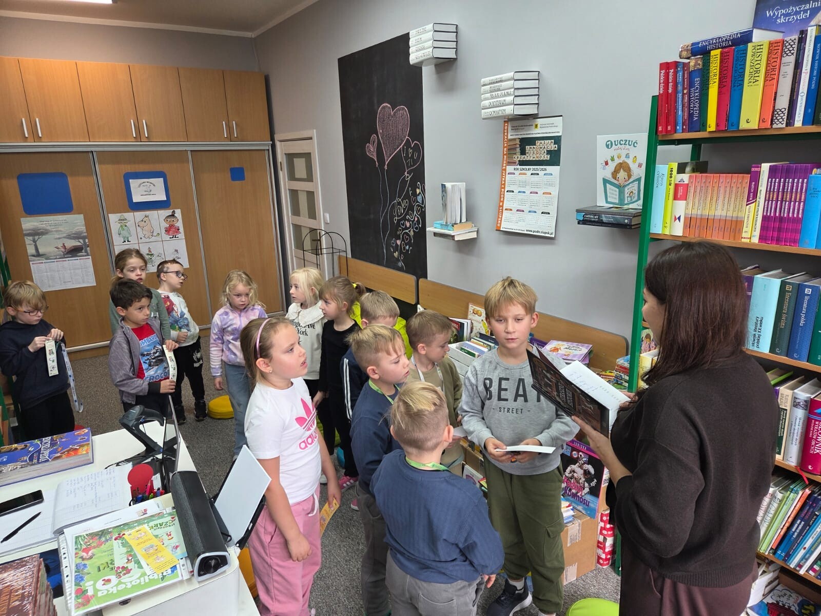 Dzieci miały okazję poznać zasady panujące w bibliotece oraz dowiedzieć się, jak funkcjonuje to niezwykłe miejsce pełne książkowych skarbów. Pani Kamila przygotowała dla nich specjalny test, który sprawdzał, jak dbać o wypożyczane książki. Nie zabrakło również zagadek o ulubionych bohaterach książkowych. Wszyscy uczniowie poradzili sobie znakomicie, wykazując się ogromną wiedzą i zaangażowaniem. Brawo dla naszych pierwszaków!