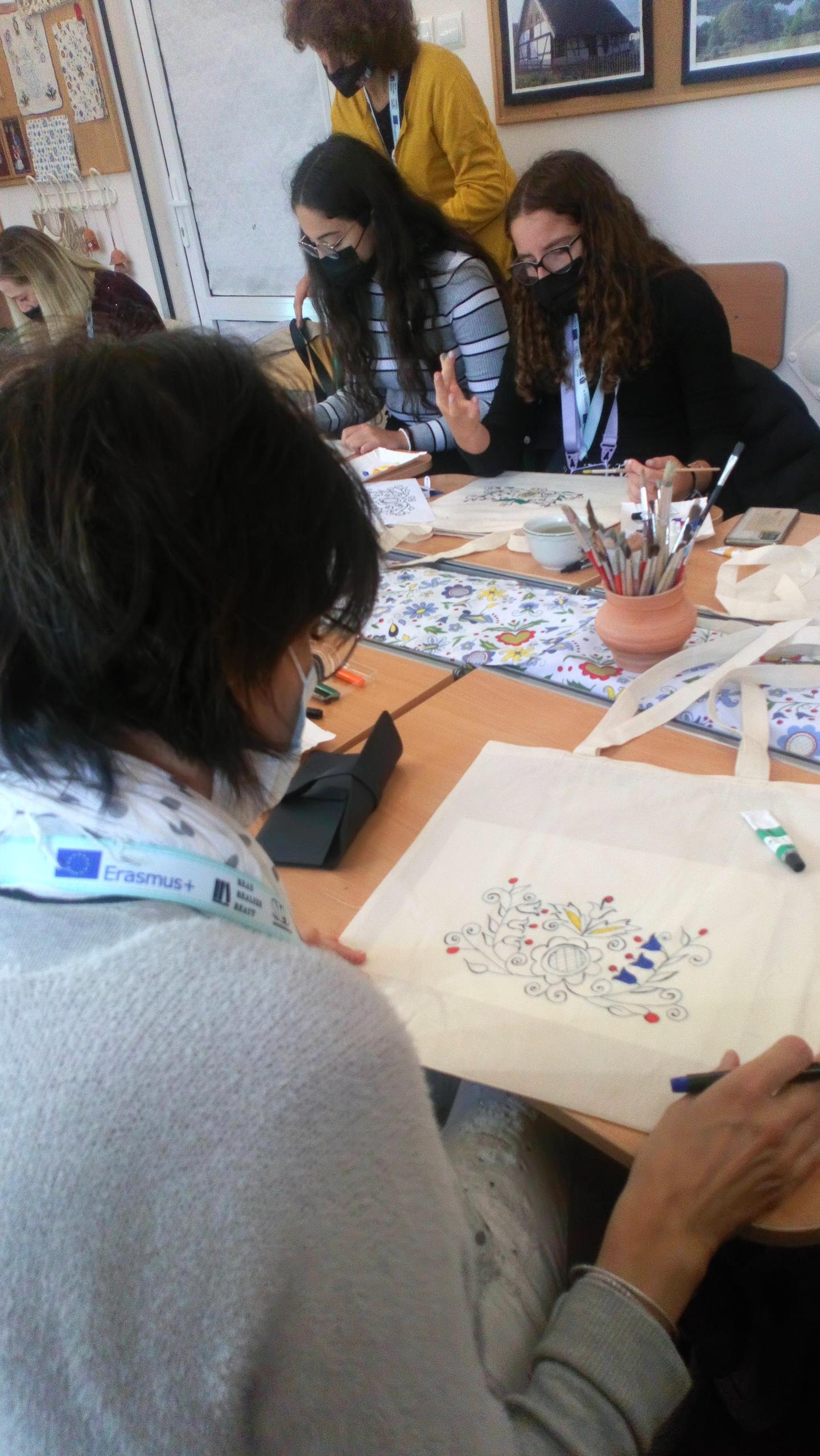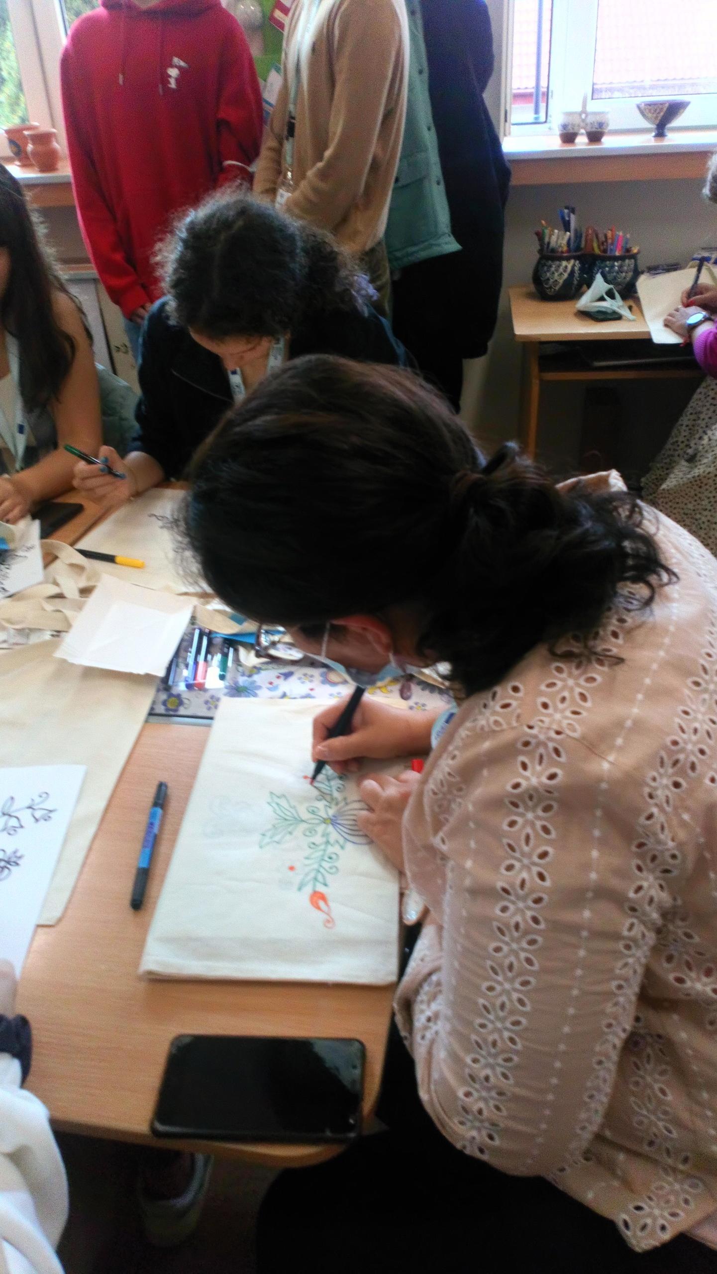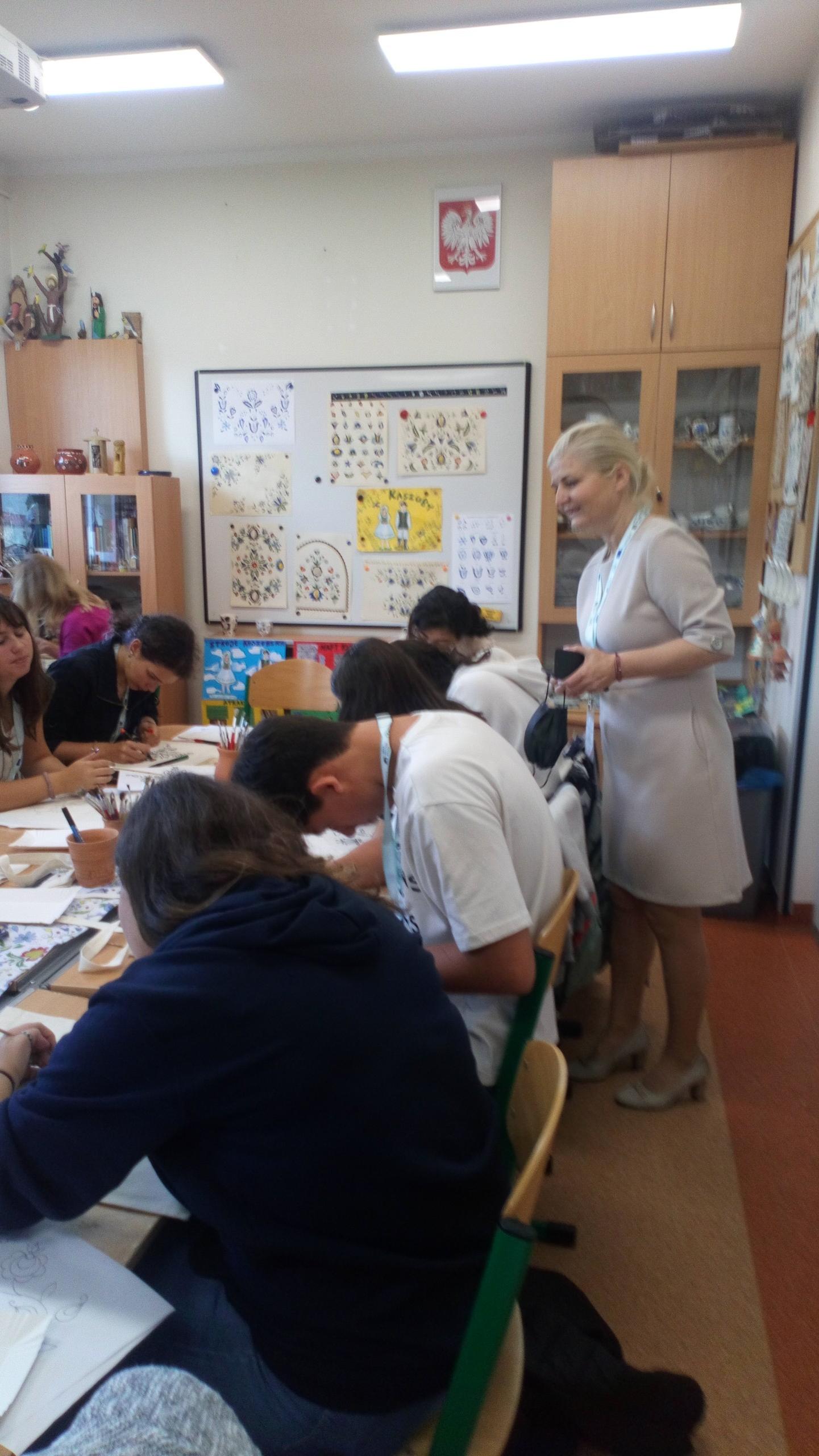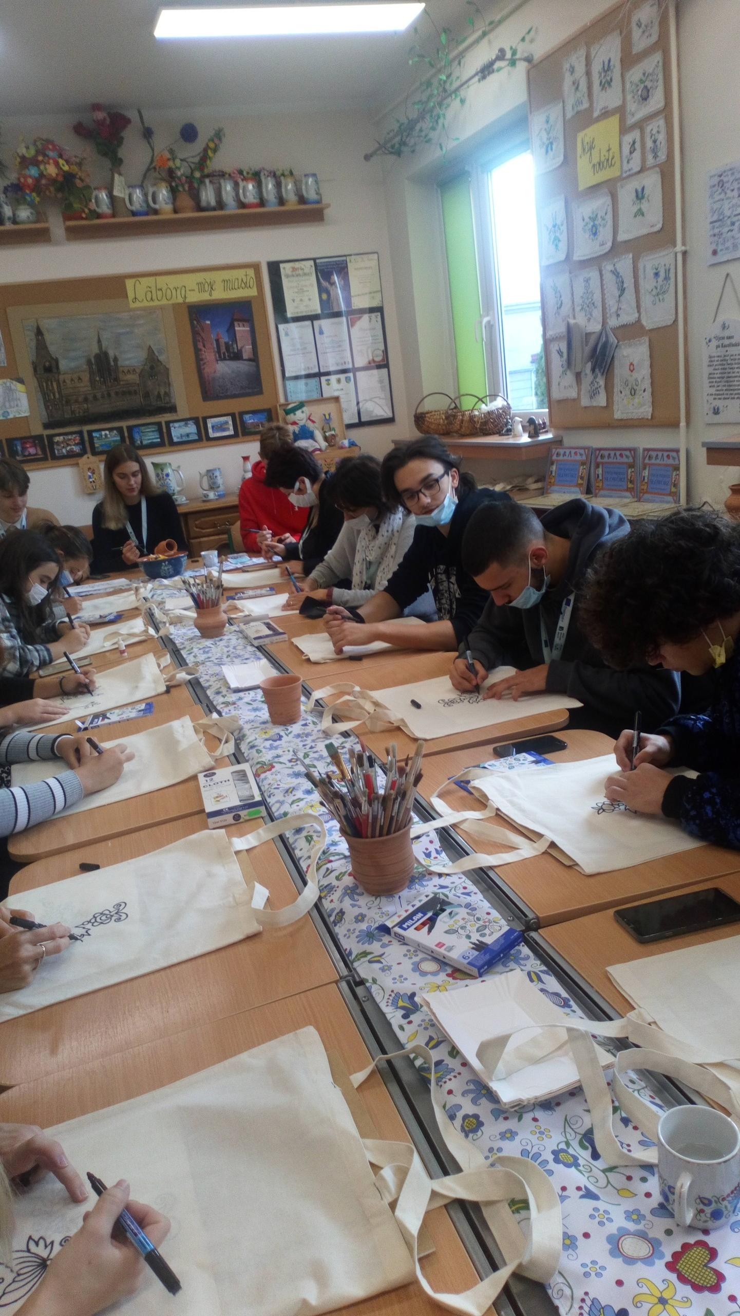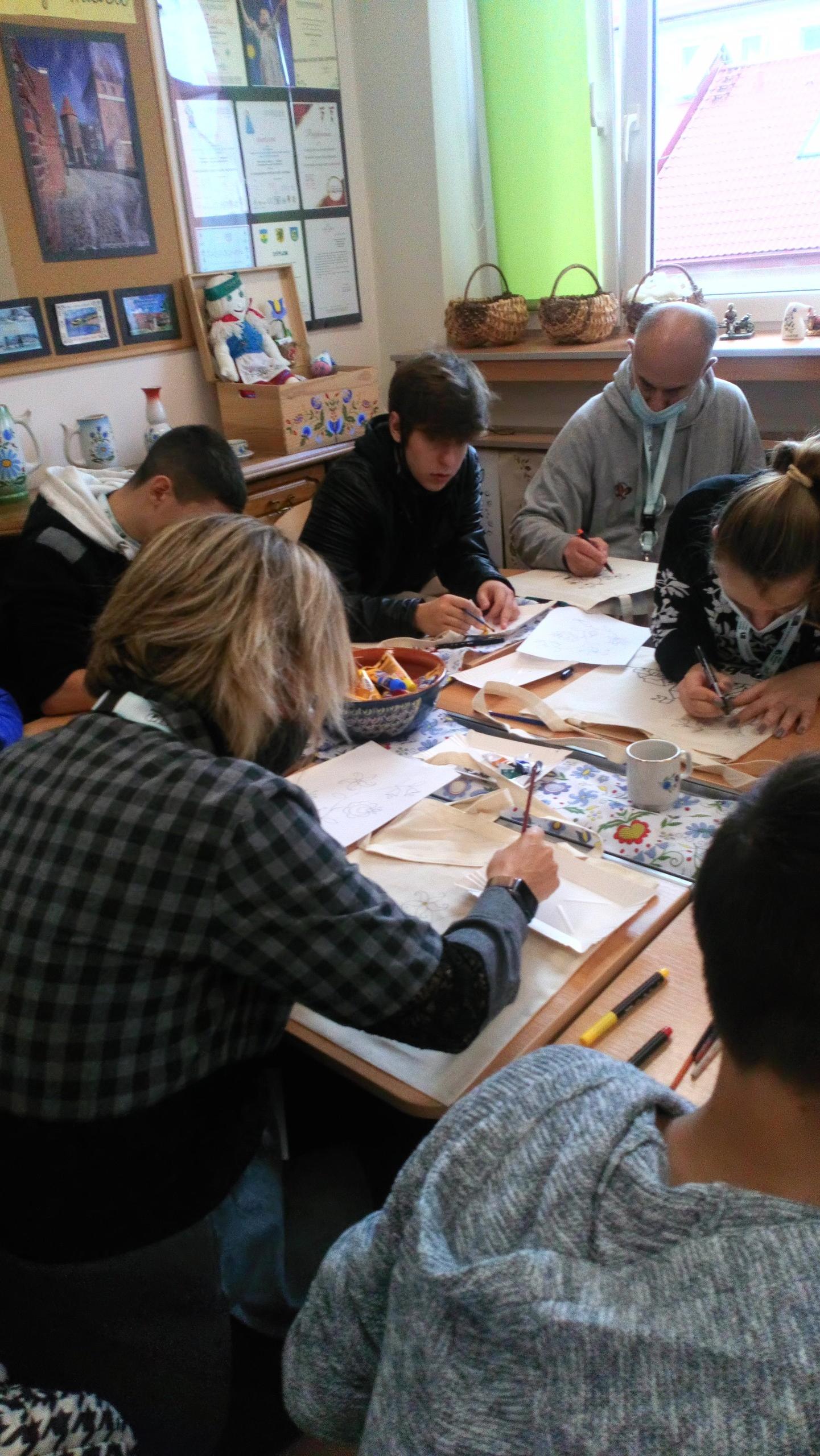 W piątek, 24 września 2021 roku, odbyły się warsztaty kaszubskie dla grupy młodzieży z pięciu krajów: Włoch, Hiszpanii, Portugalii, Grecji i Turcji. Przyjechali oni do Społecznego Liceum Ogólnokształcącego w Lęborku, w ramach programu Erasmus+. Koordynatorem akcji była p. Joanna Woźniakowska. Goście spotkali się z panią vicedyrektor Anetą Cichowlas, która pokazała im całą szkołę. Poznali folklor kaszubski, stroje i muzykę Kaszub dzięki warsztatom muzycznym prowadzonym przez lęborski zespół muzyczny ,,Frantówka” pod kierownictwem p. Reginy Szczupaczyńskiej. W warsztatach aktywnie uczestniczyli również uczniowie naszej szkoły, reprezentujący szkolny zespół ,,Lęborskie Słoneczka”. Natomiast w ramach warsztatów plastycznych prowadzonych przez p. Bożenę Siuta, nauczyciela języka kaszubskiego, młodzieży został przybliżony haft kaszubski. Mieli oni okazję ozdobić płócienne torby wybranymi motywami regionalnymi. Spotkanie przebiegało w bardzo miłej atmosferze i pozwoliło w atrakcyjny sposób przybliżyć gościom z innych krajów, chociażby w zarysie, różnorodność kulturową naszego regionu.
