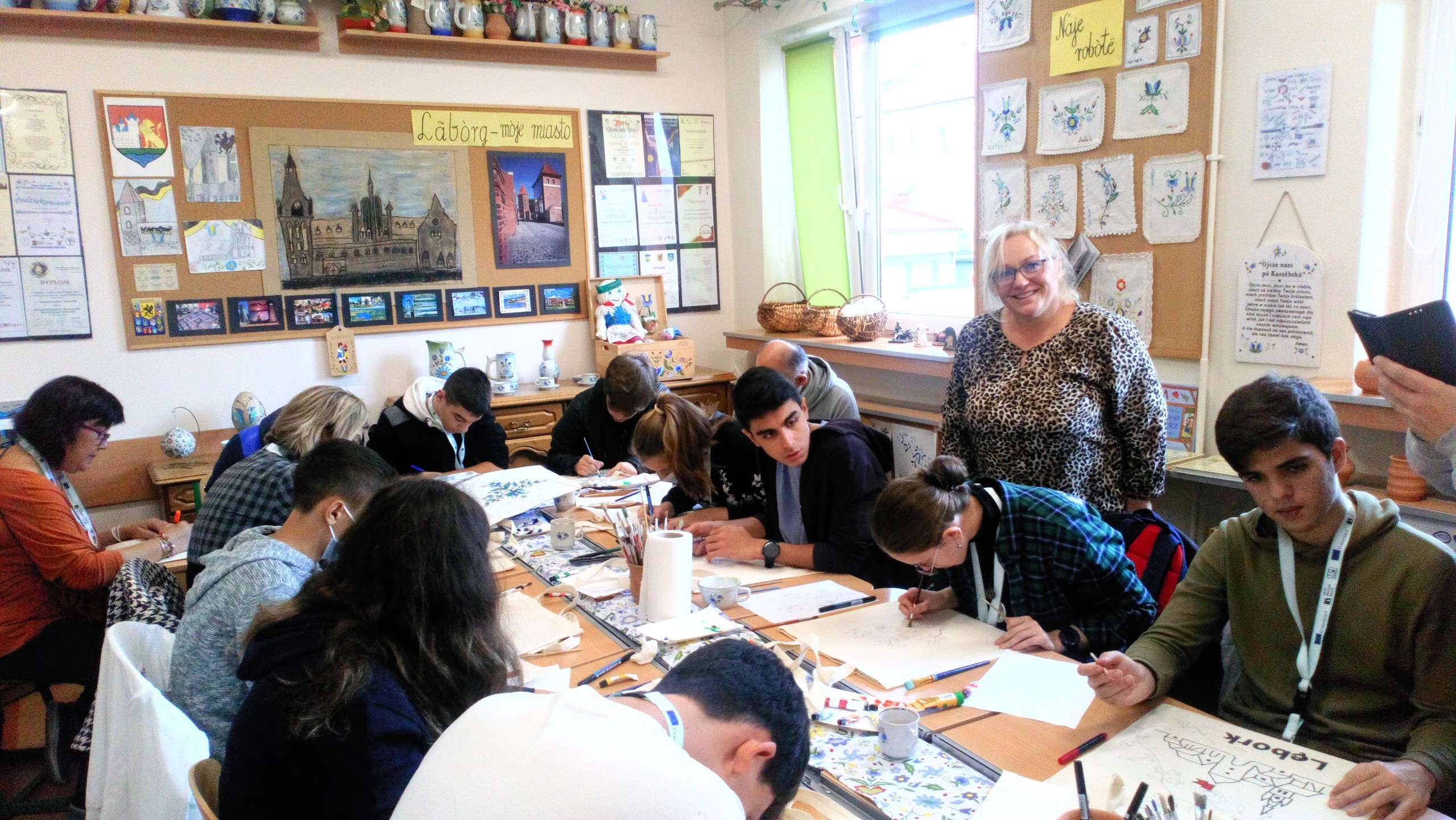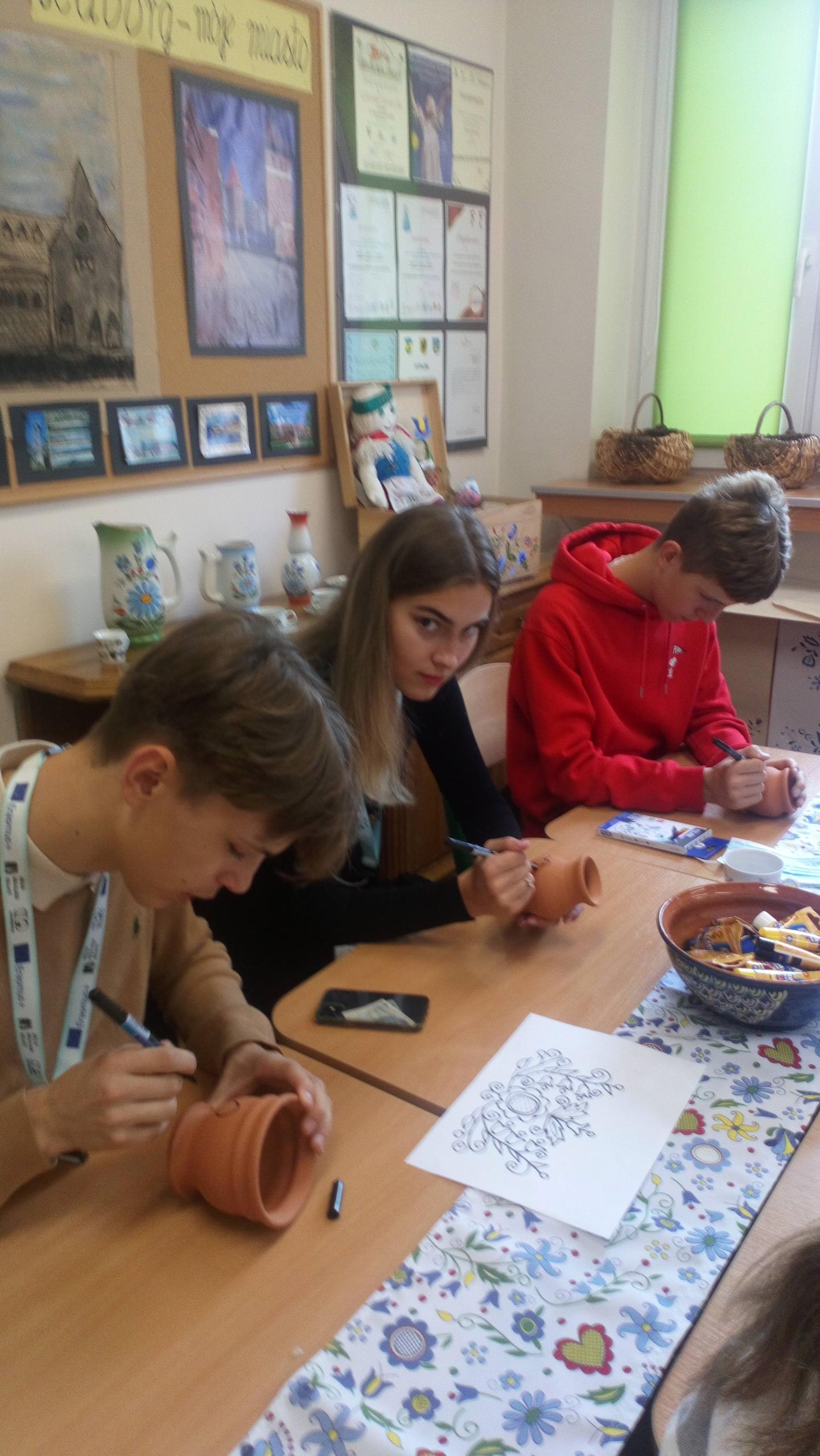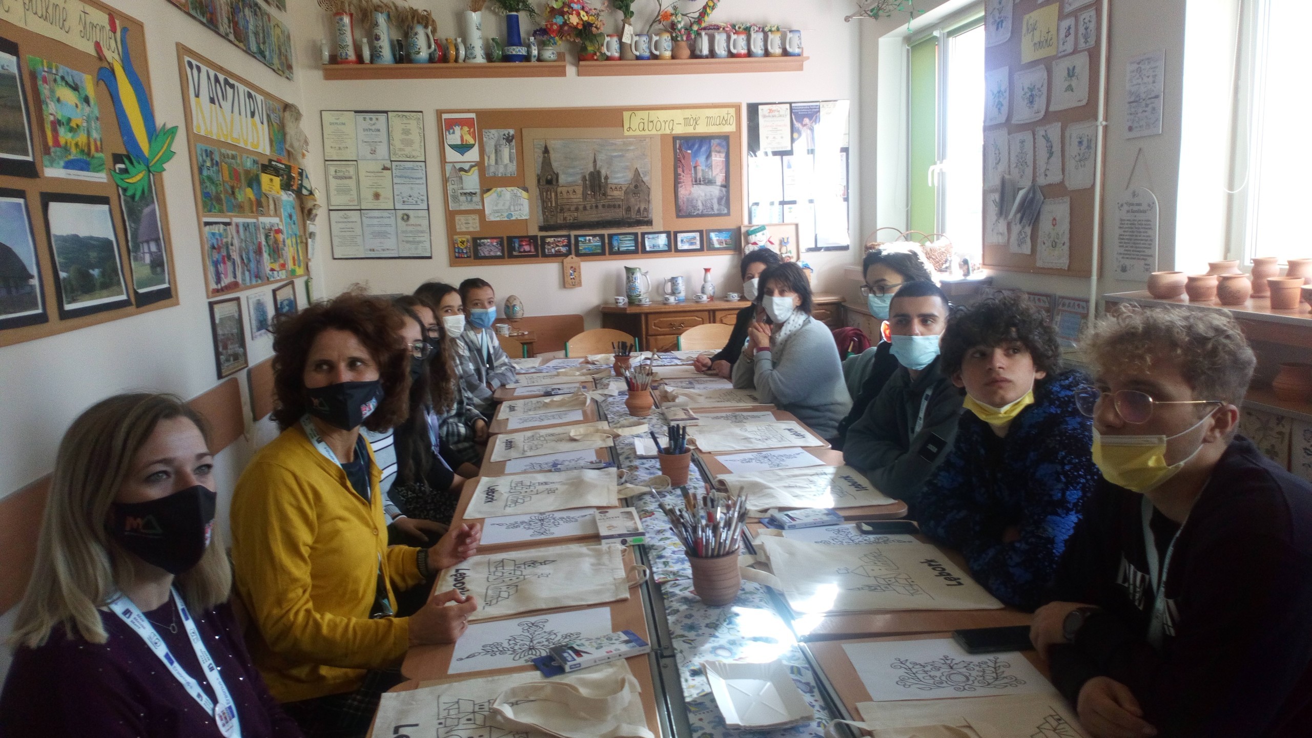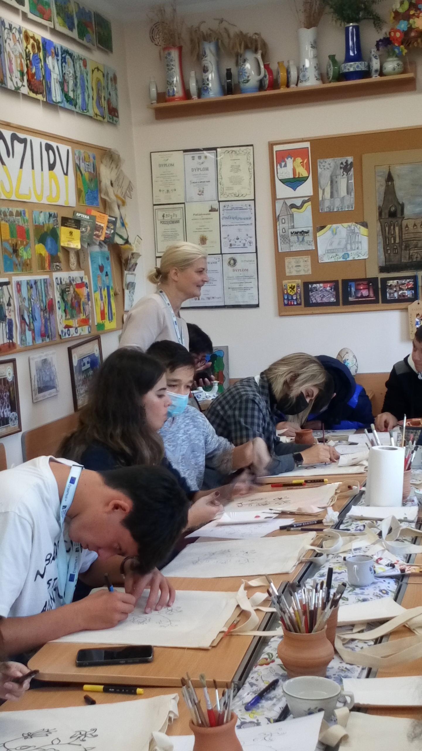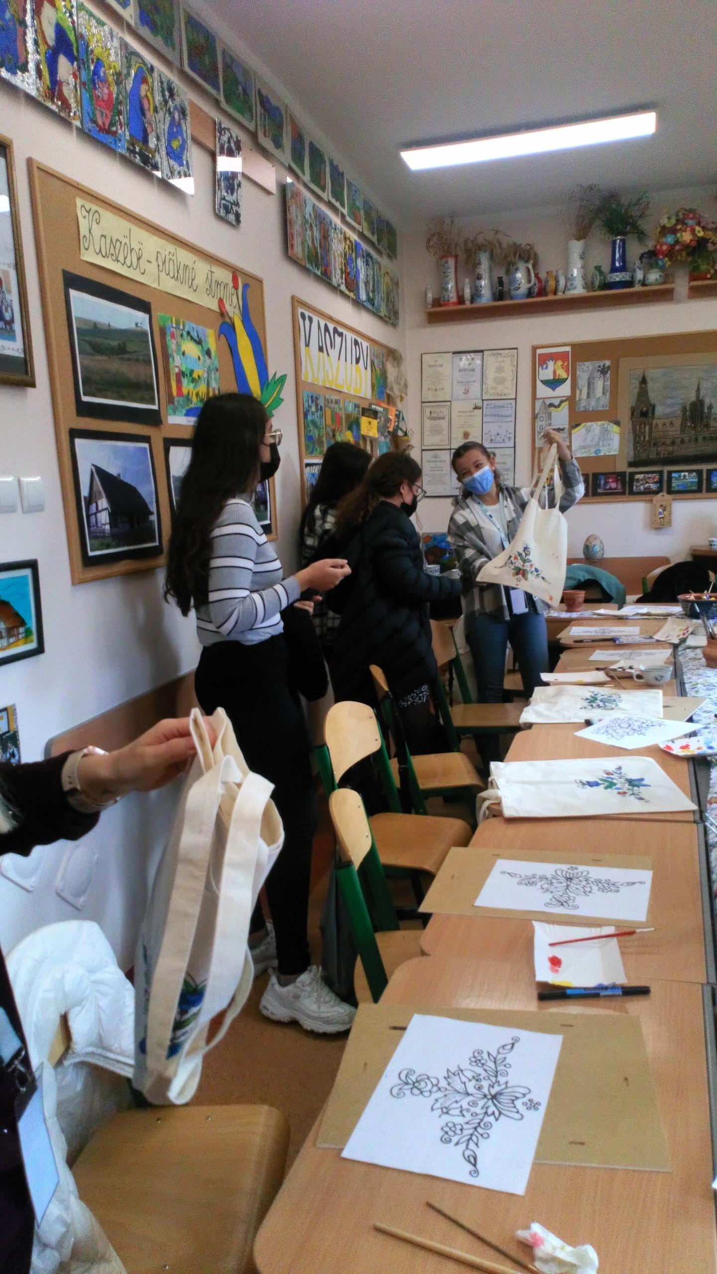 W piątek, 24 września 2021 roku, odbyły się warsztaty kaszubskie dla grupy młodzieży z pięciu krajów: Włoch, Hiszpanii, Portugalii, Grecji i Turcji. Przyjechali oni do Społecznego Liceum Ogólnokształcącego w Lęborku, w ramach programu Erasmus+. Koordynatorem akcji była p. Joanna Woźniakowska. Goście spotkali się z panią vicedyrektor Anetą Cichowlas, która pokazała im całą szkołę. Poznali folklor kaszubski, stroje i muzykę Kaszub dzięki warsztatom muzycznym prowadzonym przez lęborski zespół muzyczny ,,Frantówka” pod kierownictwem p. Reginy Szczupaczyńskiej. W warsztatach aktywnie uczestniczyli również uczniowie naszej szkoły, reprezentujący szkolny zespół ,,Lęborskie Słoneczka”. Natomiast w ramach warsztatów plastycznych prowadzonych przez p. Bożenę Siuta, nauczyciela języka kaszubskiego, młodzieży został przybliżony haft kaszubski. Mieli oni okazję ozdobić płócienne torby wybranymi motywami regionalnymi. Spotkanie przebiegało w bardzo miłej atmosferze i pozwoliło w atrakcyjny sposób przybliżyć gościom z innych krajów, chociażby w zarysie, różnorodność kulturową naszego regionu.