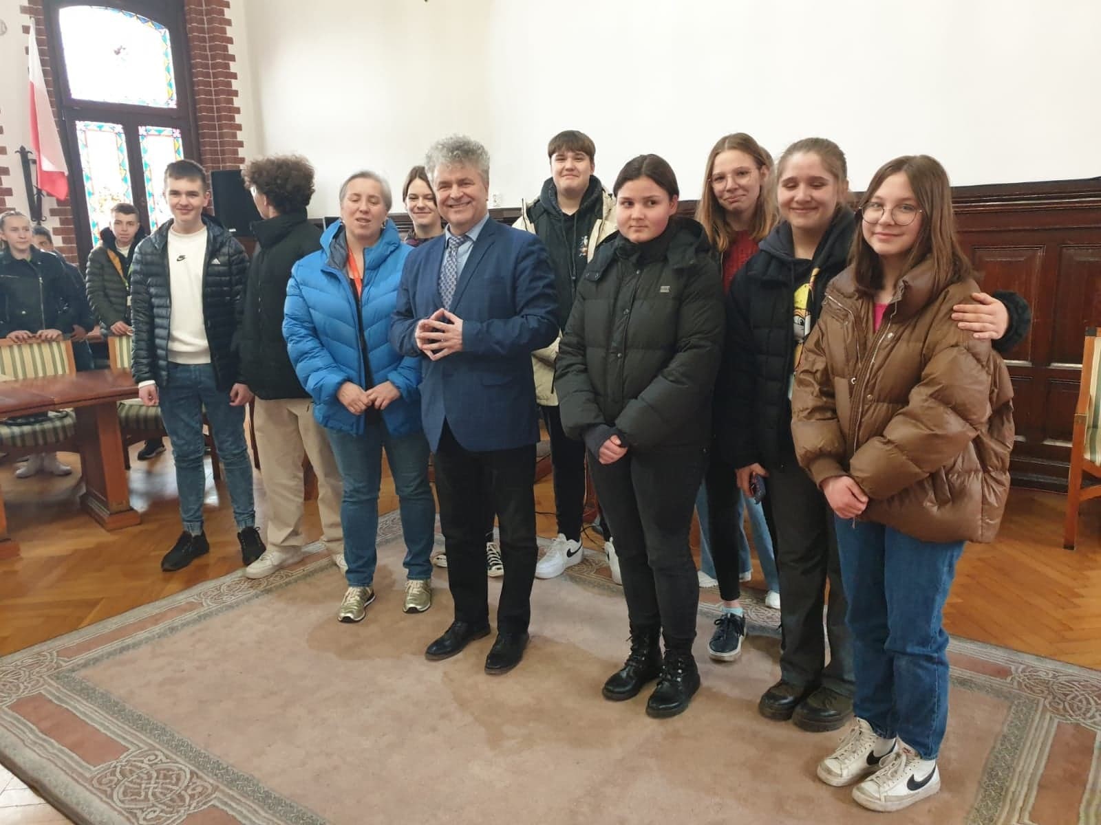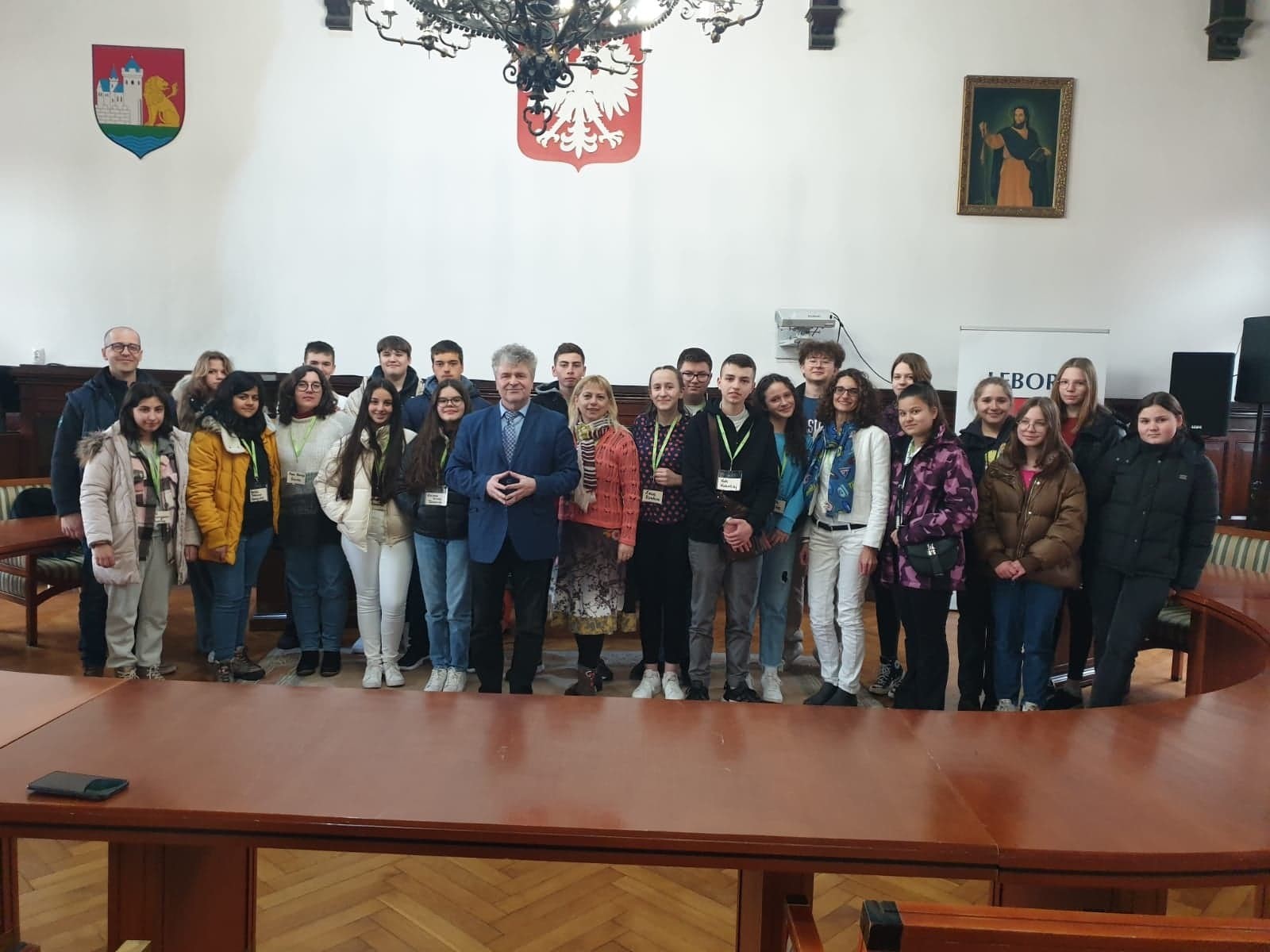 Oprócz wyjazdów krajoznawczych do Trójmiasta i Łeby, nasi goście wraz z uczniami SJSP odwiedzili Burmistrza Lęborka p. Witolda Namyślaka.