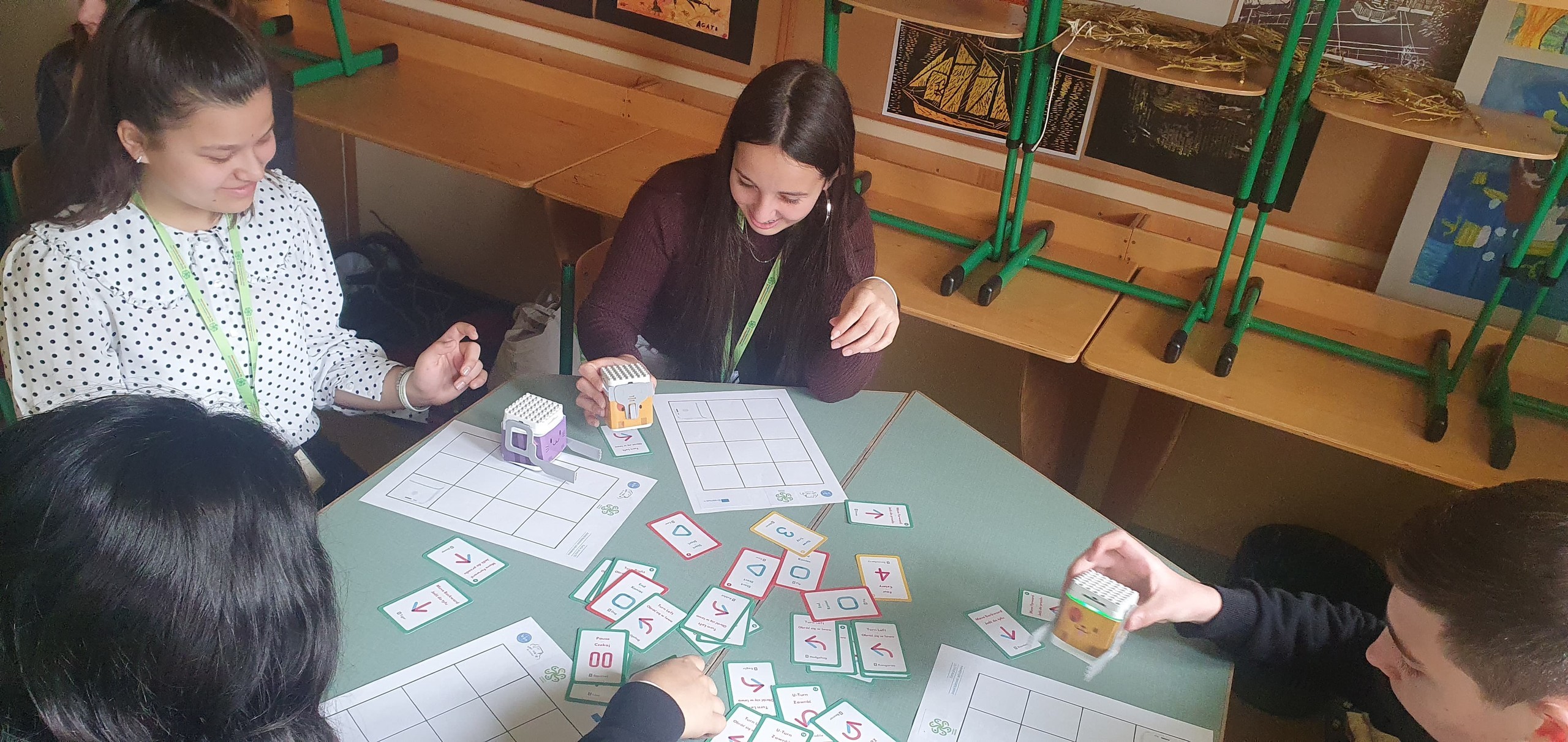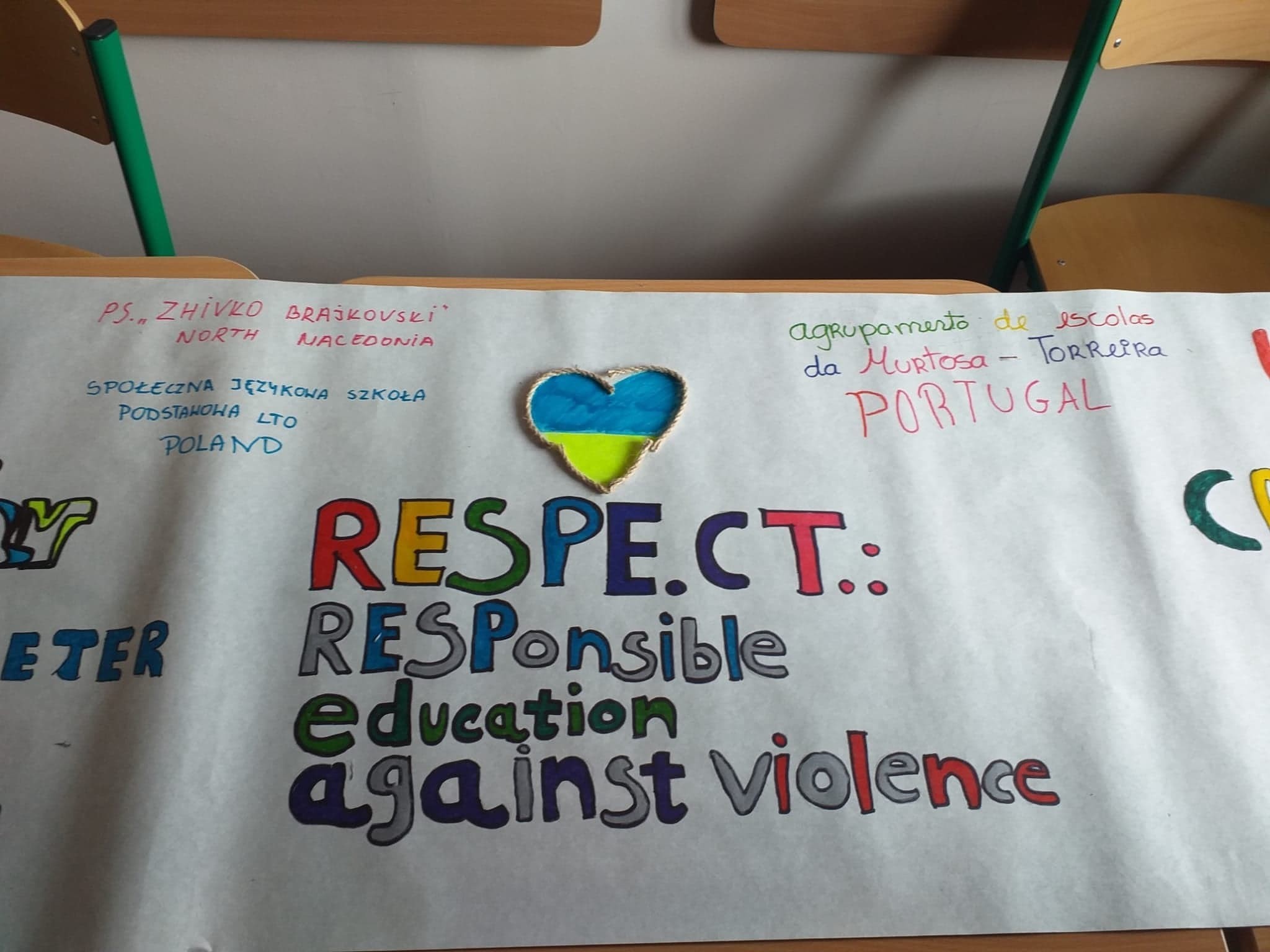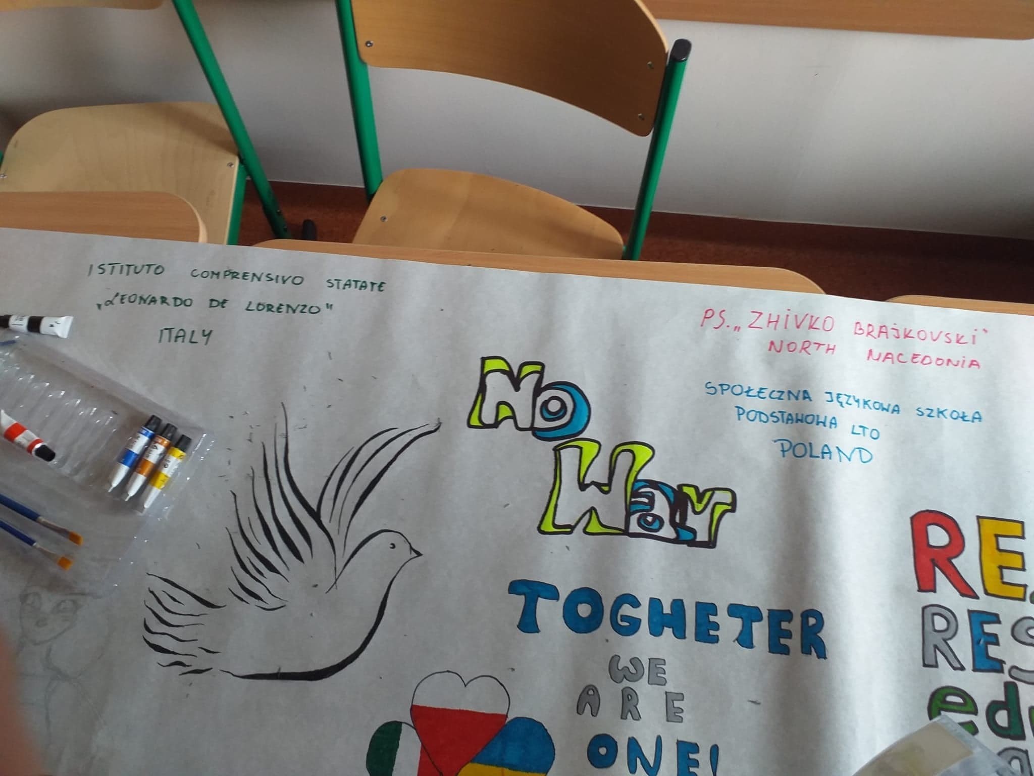 Ponadto udało się w twórczy sposób wyrazić sprzeciw wobec wszelkich konfliktów i wojen. Podczas zajęć kodowania uczniowie z krajów partnerskich mogli zapoznać się z nowinkami technologicznymi wspomagającymi edukację, które wykorzystywane są w naszej szkole, a także wspólnie stworzyli plakat wielkoformatowy oraz piosenkę na temat szacunku i odpowiedzialności.