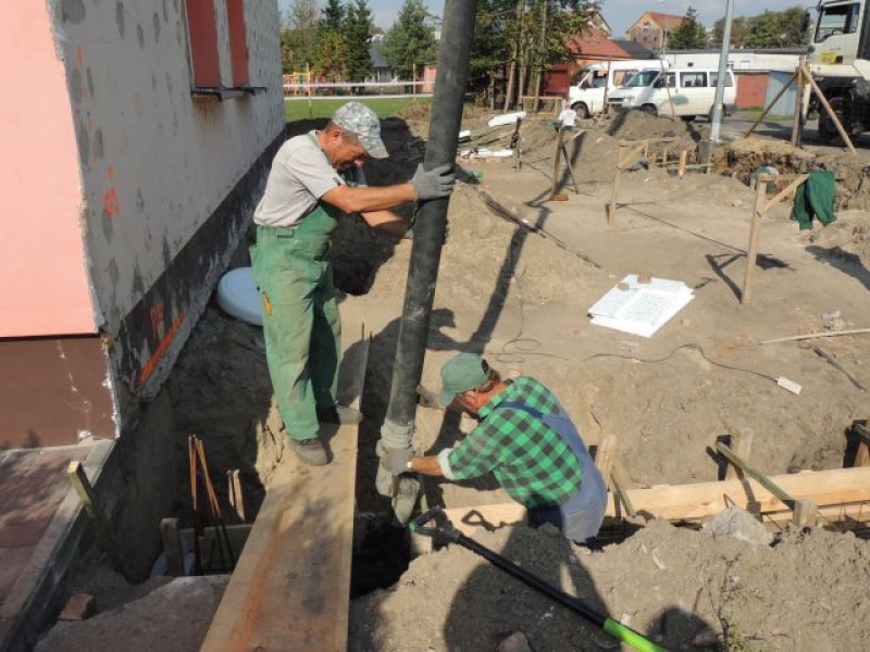 Od połowy września ruszyła budowa sali gimnastycznej. Jak na razie trwają prace przygotowujące teren pod inwestycję (organizacja zaplecza budowy, wykonanie żelbetonowych ław i stóp fundamentowych, roboty ziemne wraz z formowaniem podłoża).