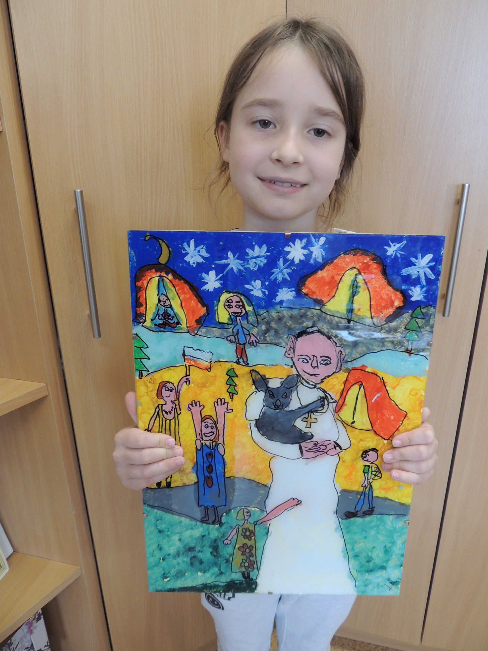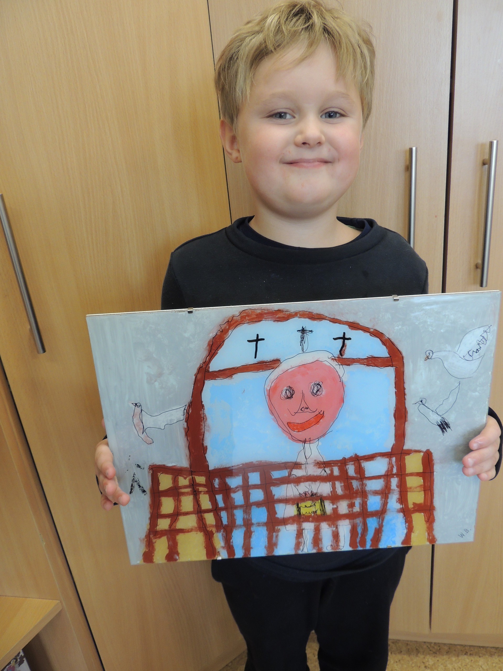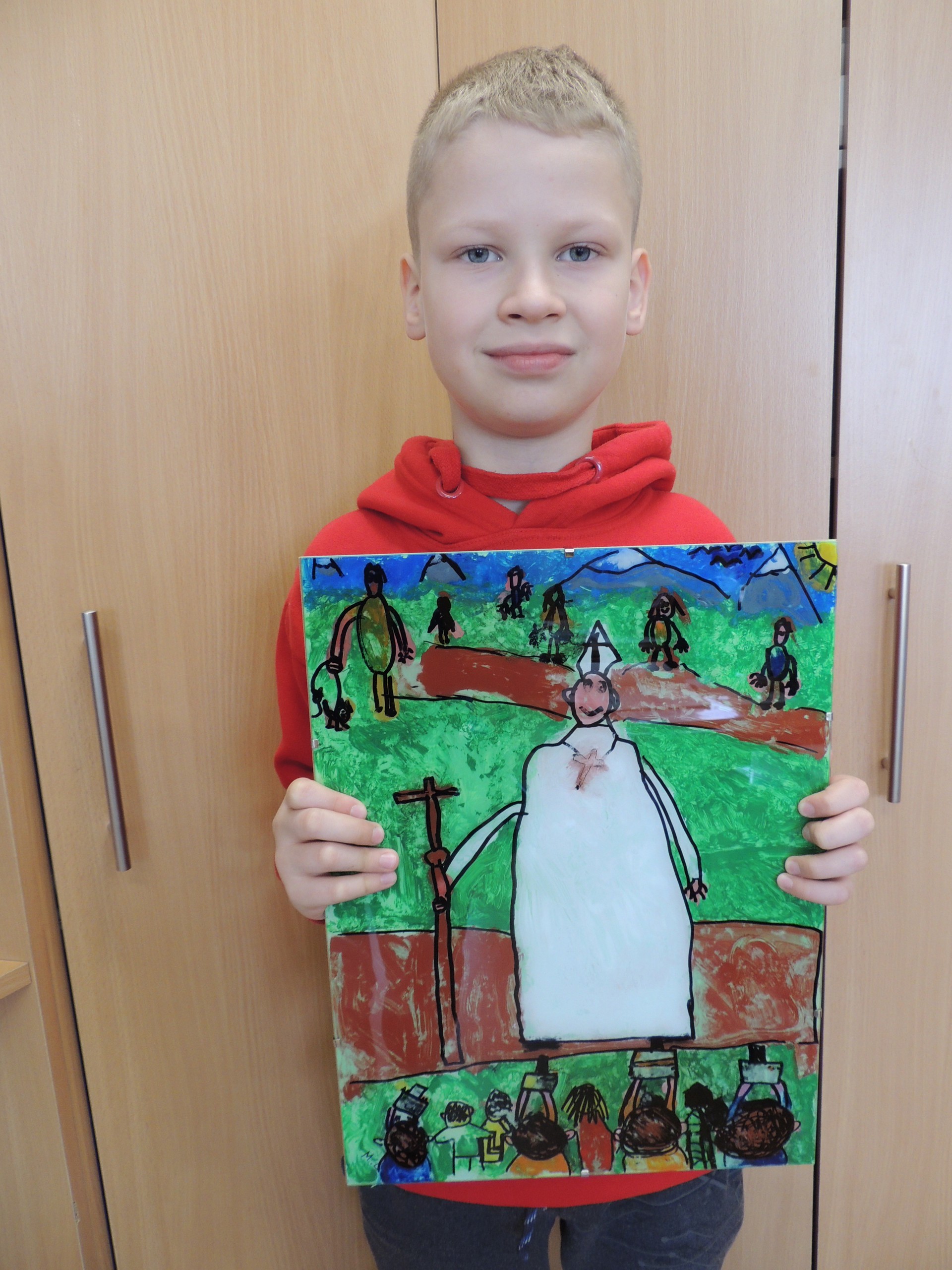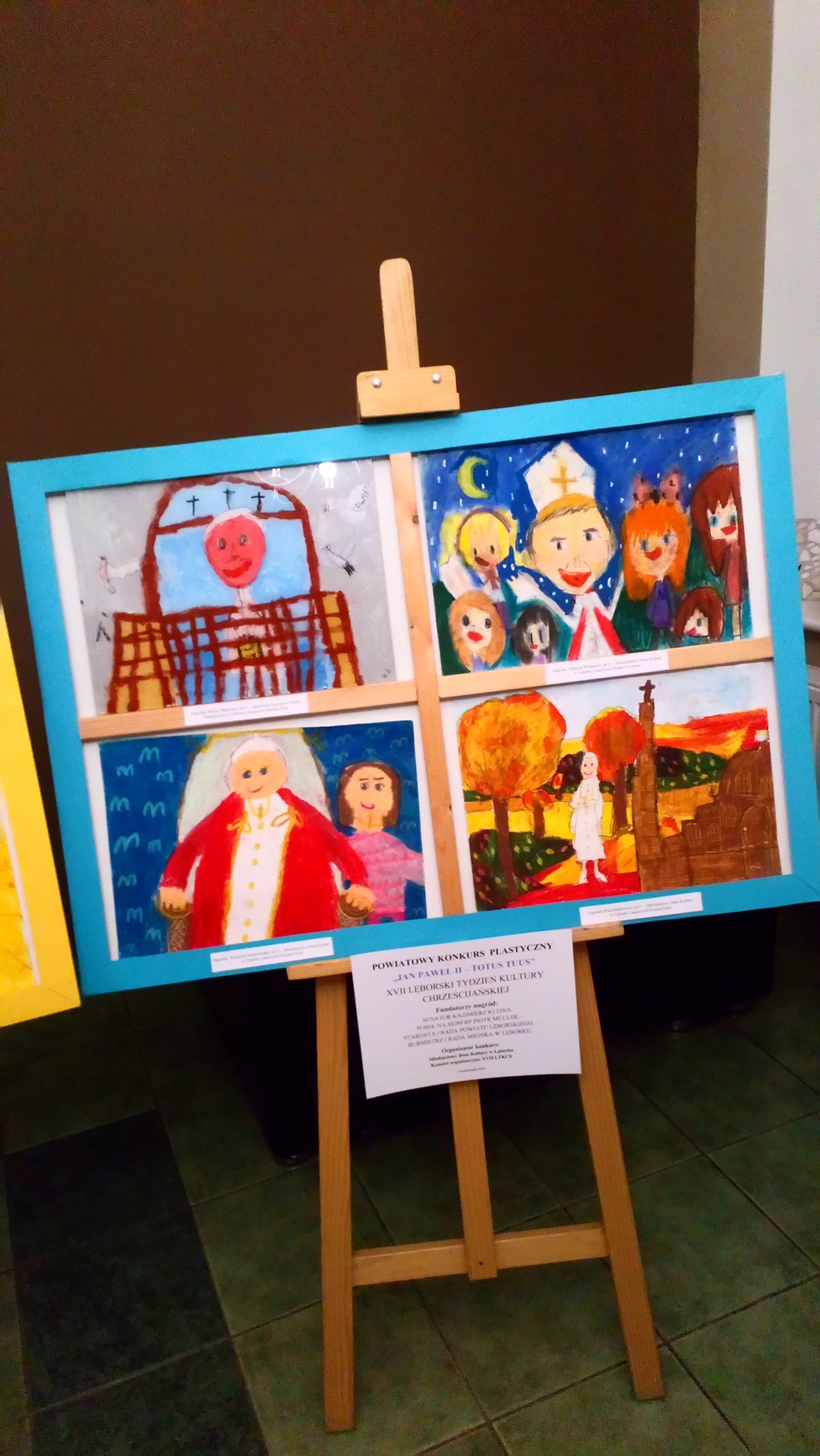W październiku 2020 r. uczniowie klasy drugiej, w ramach zajęć plastycznych pod kierunkiem p. Bożeny Siuta, przygotowali prace plastyczne w technice malarstwo na szkle na Powiatowy Konkurs Plastyczny "Jan Paweł II – Totus Tuus", organizowany przez MDK w Lęborku w związku z rocznicą pontyfikatu, w ramach XVII Lęborskiego Tygodnia Kultury Chrześcijańskiej. W środę, 21.10., otrzymaliśmy wyniki konkursu. Z przyjemnością informujemy, że laureatami konkursu z naszej szkoły są uczniowie klasy drugiej: Wiktor Balcerzyk, Julia Czaja, Lidia Dombrowska, Ksawery Dulewicz, Natasza Janusz, Leon Młyński, Maja Sawicka – Bąba, Martyna Walczyńska i Natalia Wojciechowska. W związku z sytuacją epidemiczną uroczyste rozstrzygnięcie konkursu w Sanktuarium św. Jakuba zostało odwołane. Wystawa pokonkursowa znajduje się w lęborskim MDK-u. Laureaci odebrali z MDK-u nagrody i dyplomy indywidualnie, z zachowaniem reżimu sanitarnego. Serdecznie im gratulujemy!