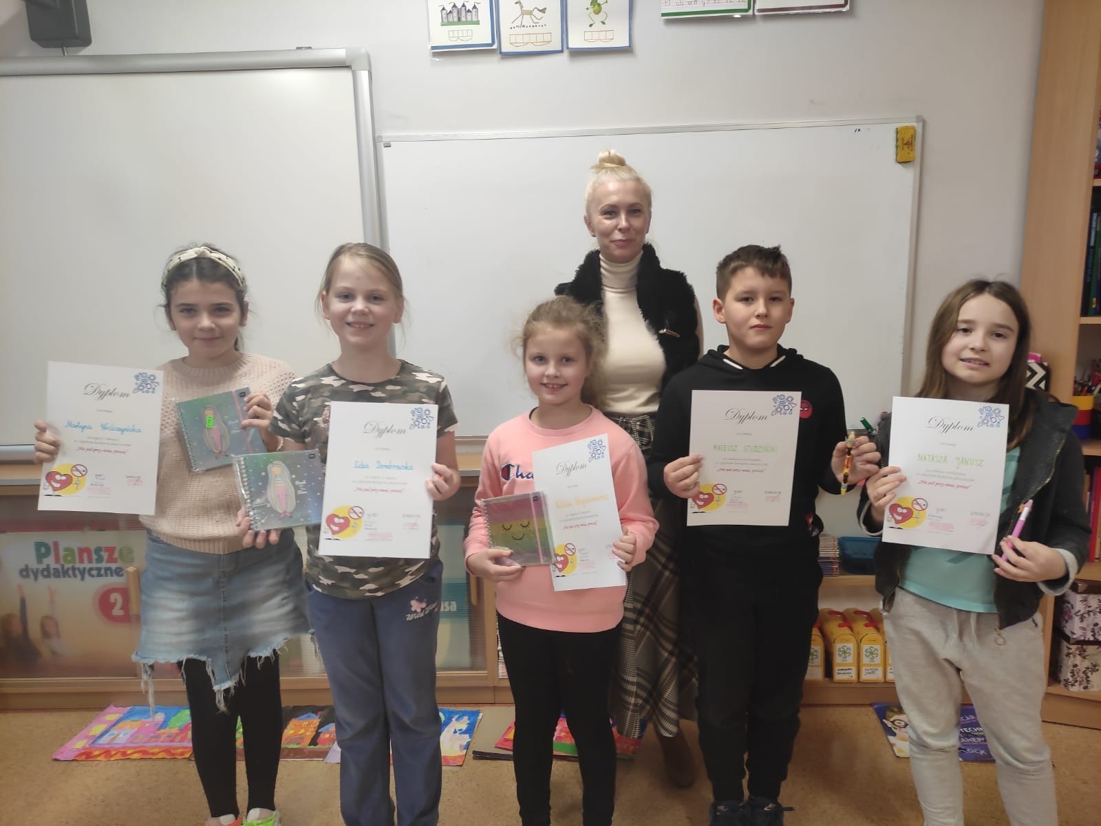 Laureaci konkursu otrzymali upominki i dyplomy wyróżnienia. Niżej wymienione pracę zostały zakwalifikowane do etapu powiatowego. Życzymy sukcesów.