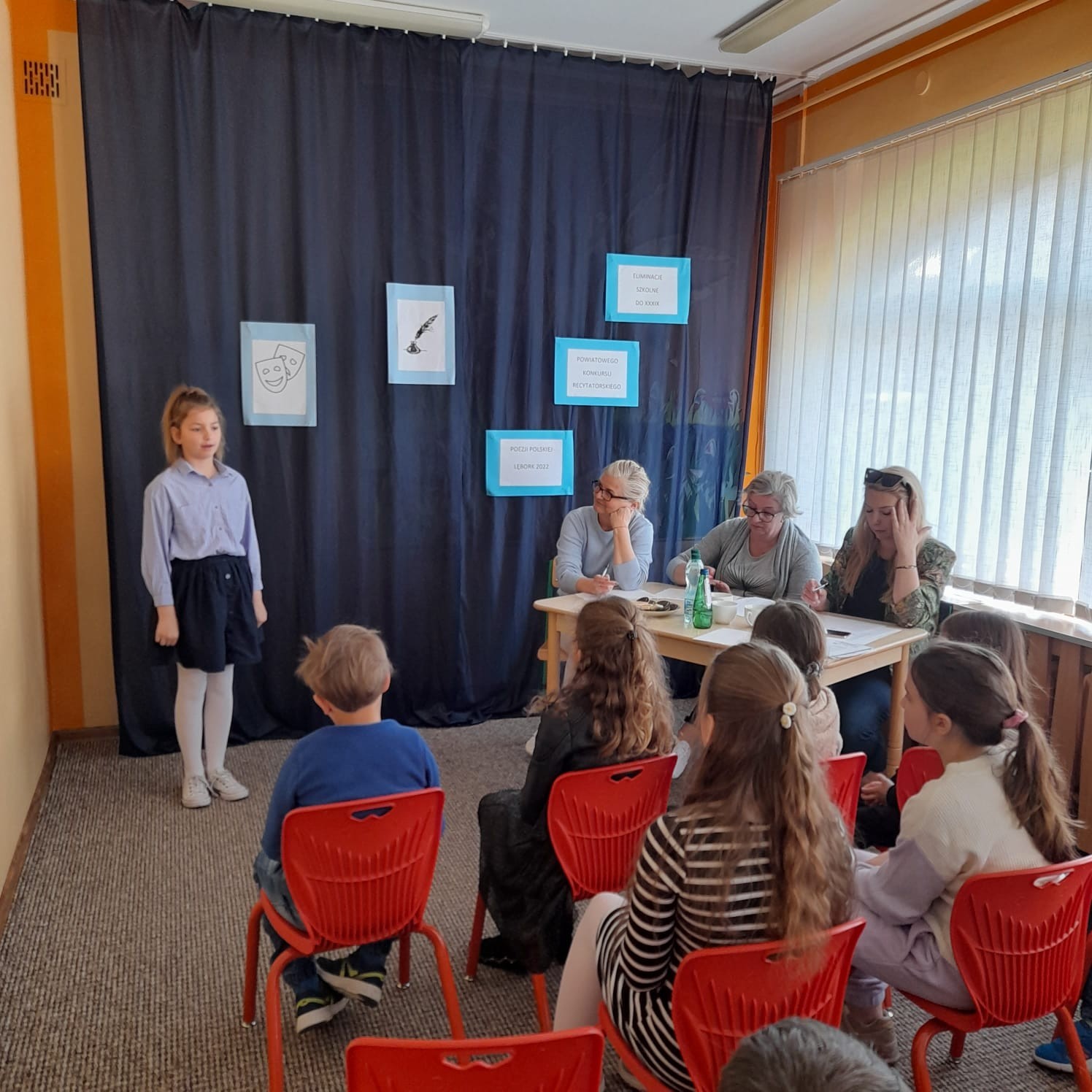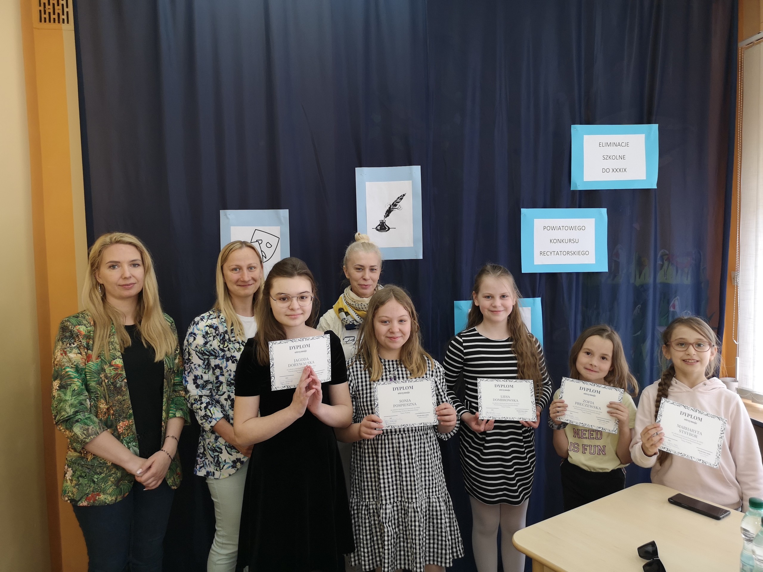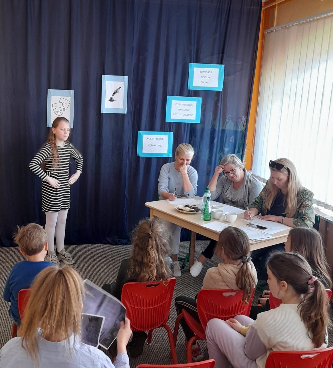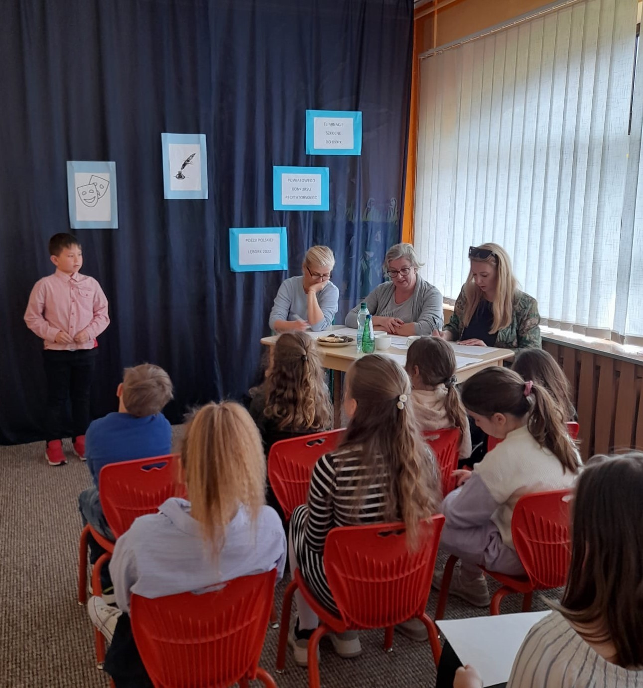 W piatek, 6 maja, odbyły się szkolne eliminacje Konkursu Recytatorskiego Poezji Polskiej. Z klas I-III wzięło udział 12 uczniów, z klas IV-VI siedmioro. Jury wyłoniło po dwóch uczestników z każdej kategorii, są to: