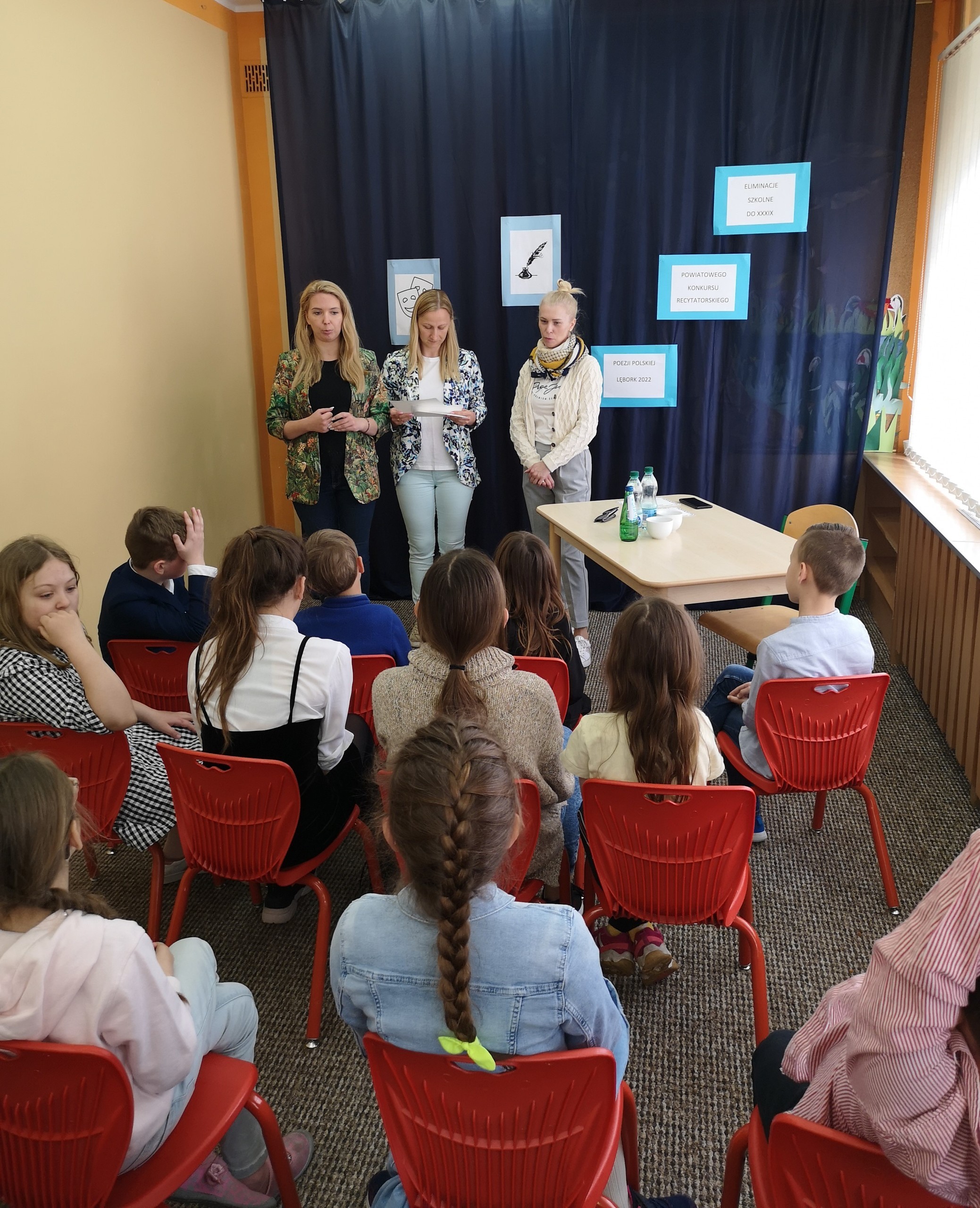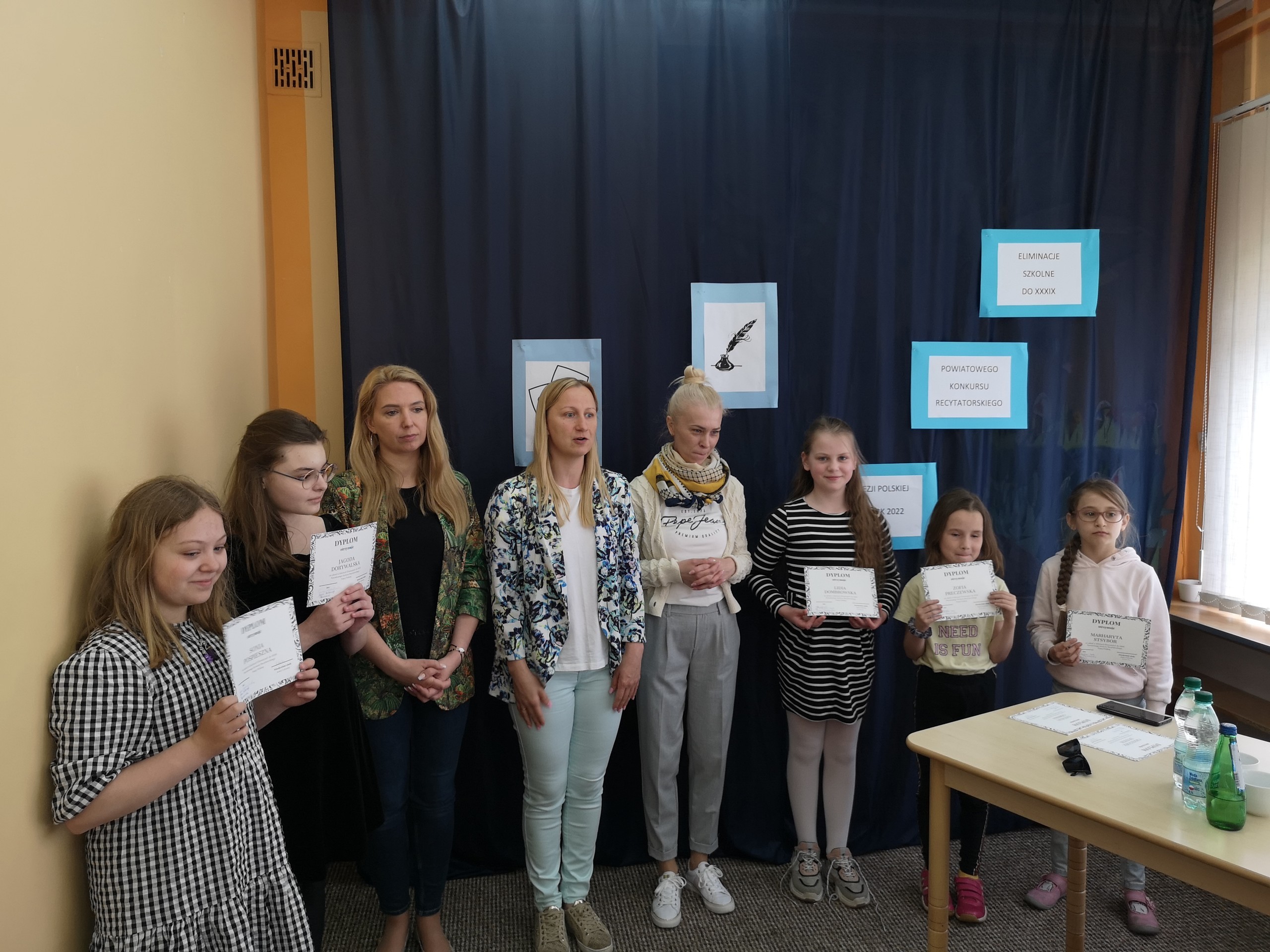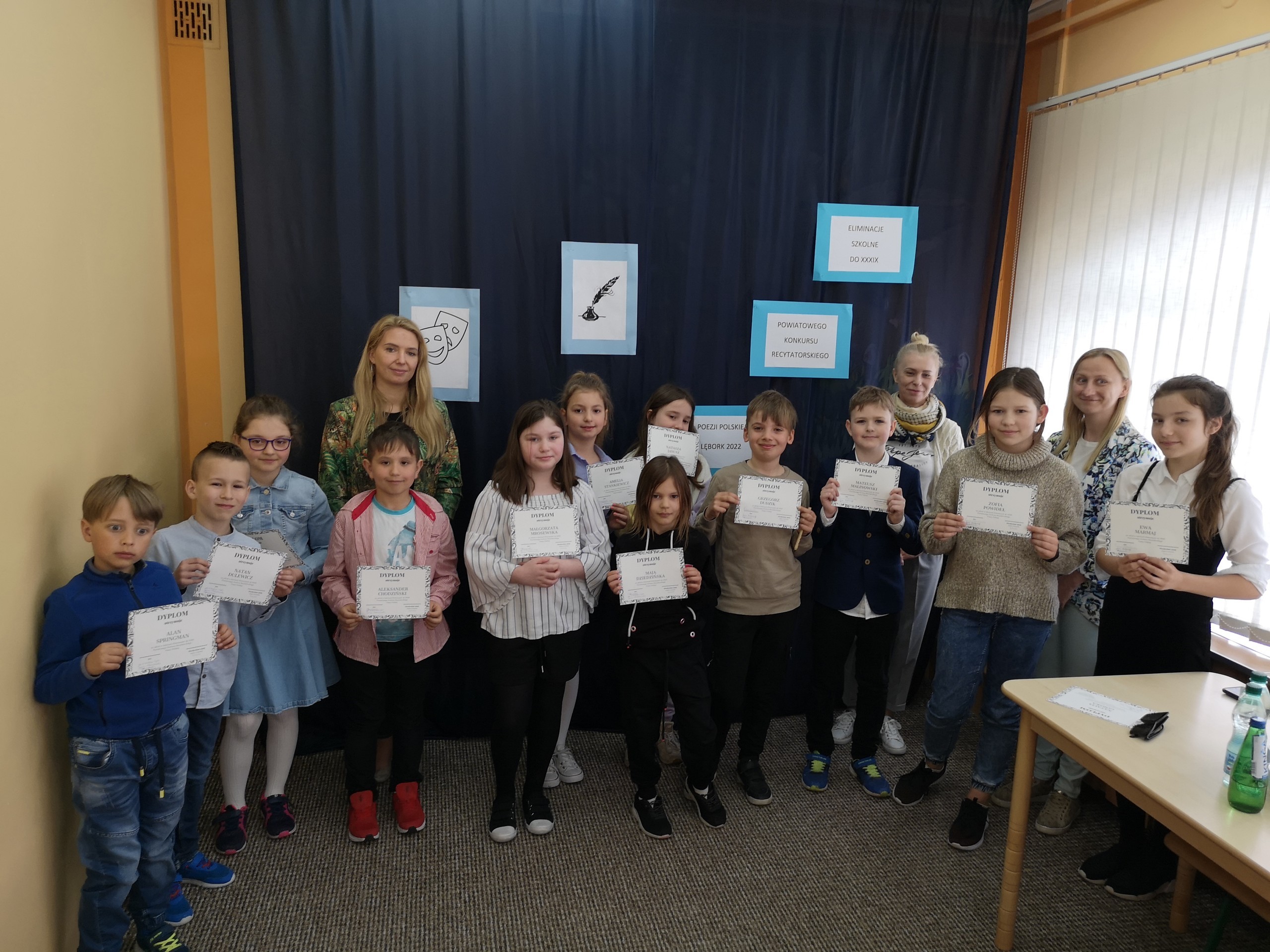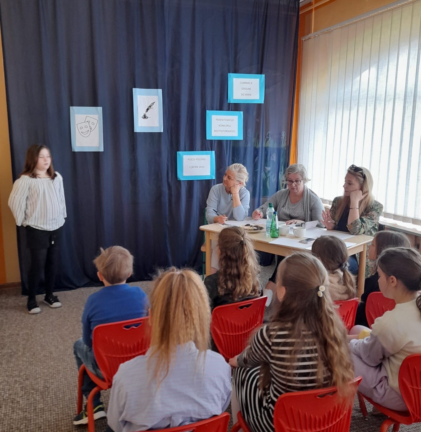 W piatek, 6 maja, odbyły się szkolne eliminacje Konkursu Recytatorskiego Poezji Polskiej. Z klas I-III wzięło udział 12 uczniów, z klas IV-VI siedmioro. Jury wyłoniło po dwóch uczestników z każdej kategorii, są to: