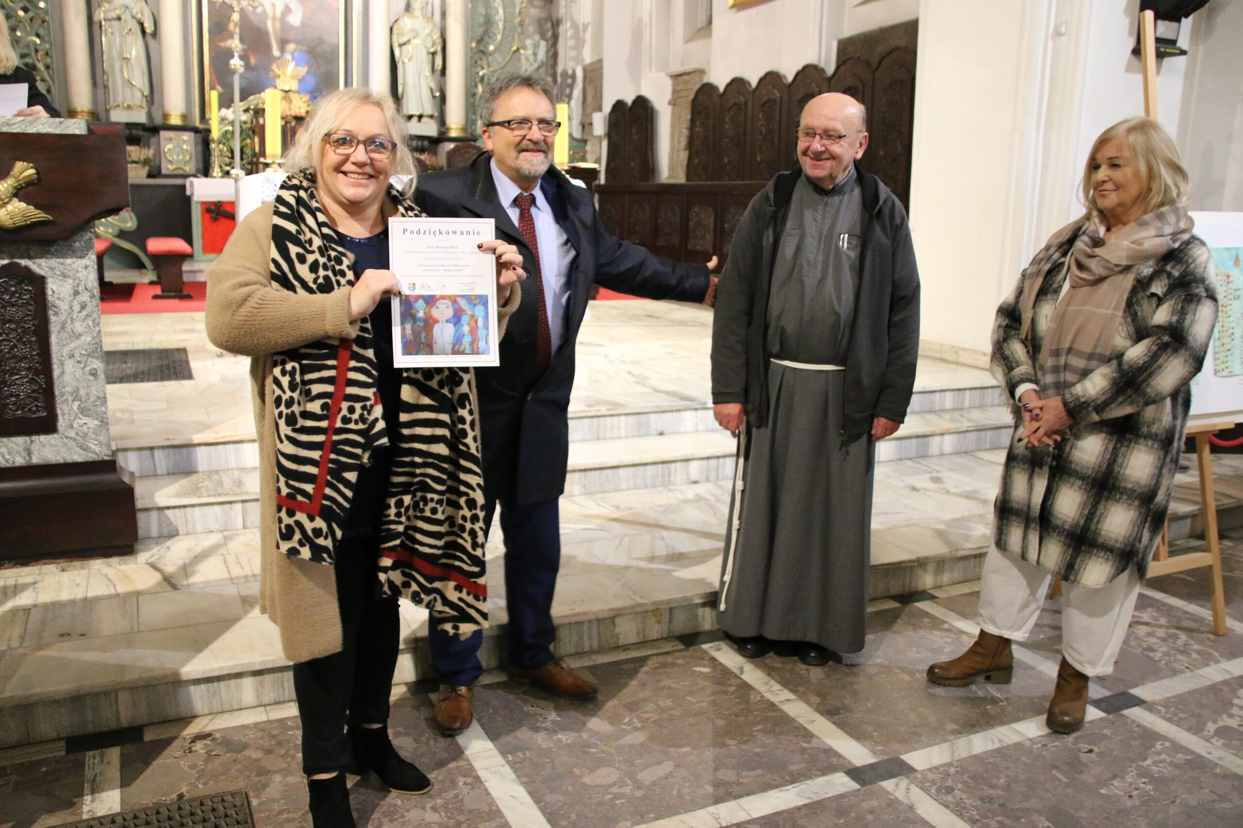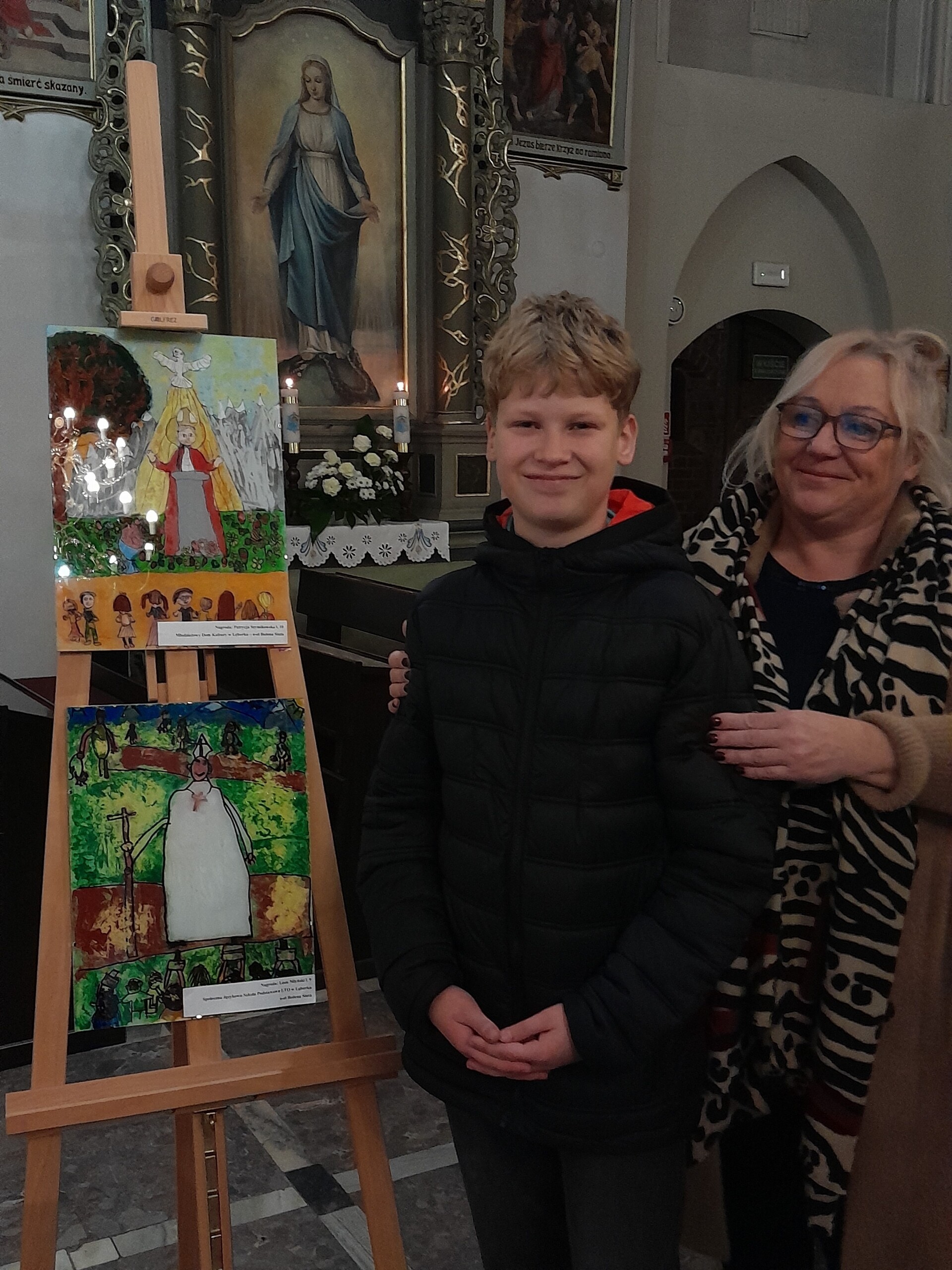 Z przyjemnością informujemy, że wśród laureatów XIX Konkursu Plastycznego "Jan Paweł II – Blask prawdy", organizowanego przez MDK w Lęborku, znaleźli się uczniowie naszej szkoły: Leon Młyński (kl. IV) oraz Adam Miklaszewski ( kl. IV). Gratulacje! Uroczyste podsumowanie odbyło się 21 października 2022 r. w Sanktuarium św. Jakuba. Nagrodzone prace – malarstwo na szkle - wykonane pod kierunkiem p. Bożeny Siuta można było zobaczyć na wystawie pokonkursowej.