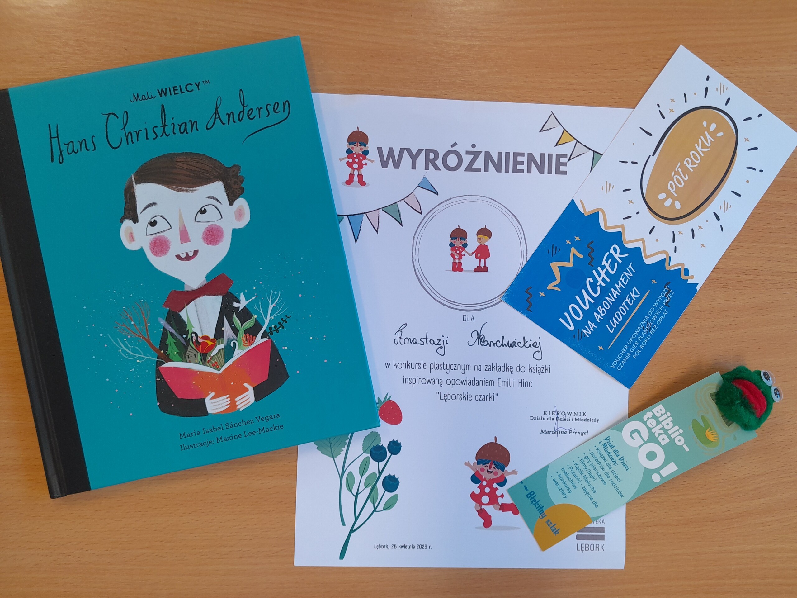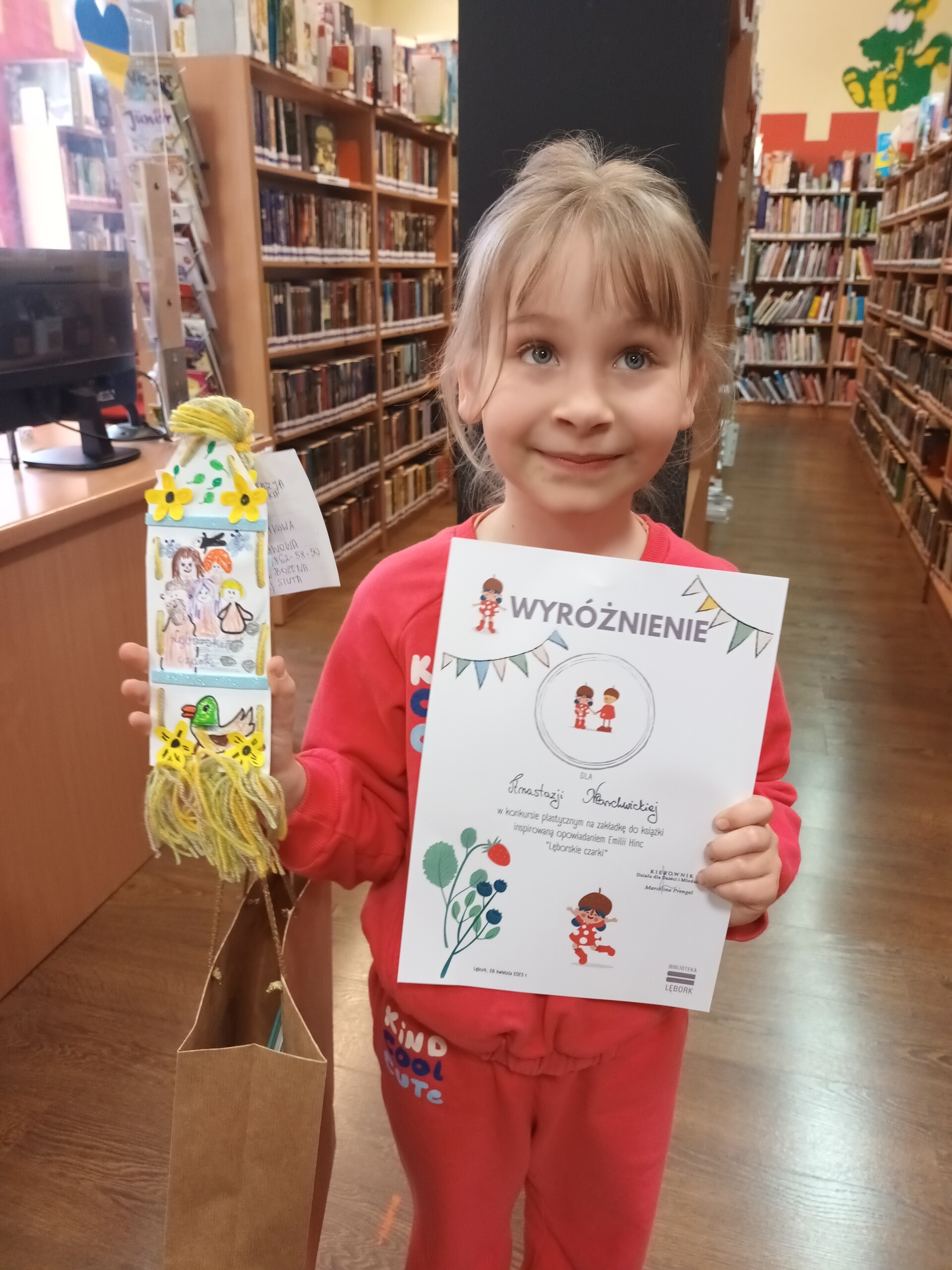 28 kwietnia 2023 r. Miejska Biblioteka Publiczna rozstrzygnęła Konkurs Plastyczny dla dzieci z lęborskich placówek na "Zakładkę do książki". Wśród dziesięciu laureatów znalazła się ANASTAZJA MARCHWICKA z klasy I ( opiekun: Bożena Siuta). Otrzymała ona WYRÓŻNIENIE. Serdecznie gratulujemy!