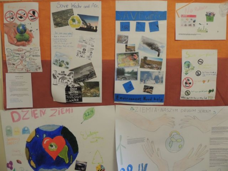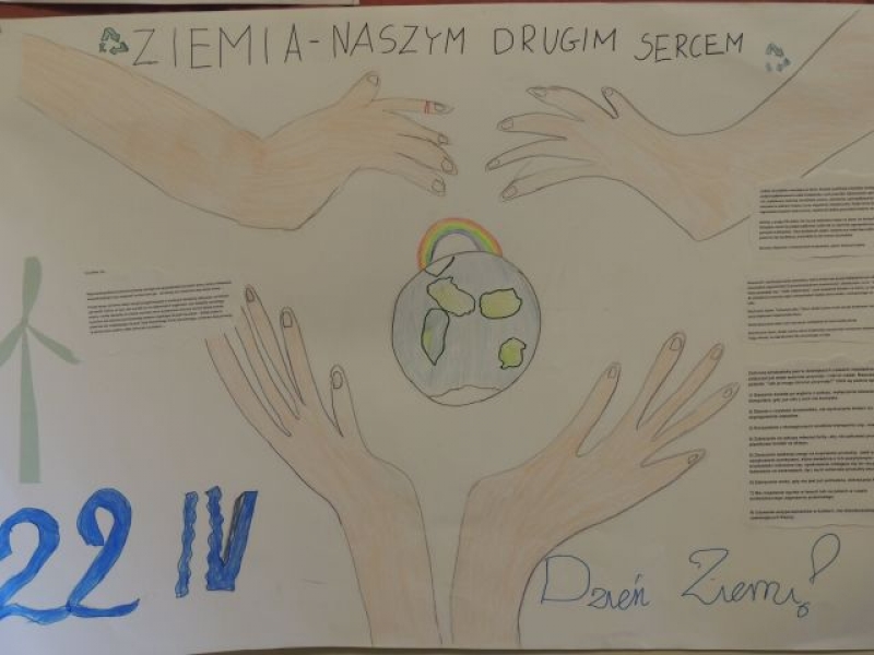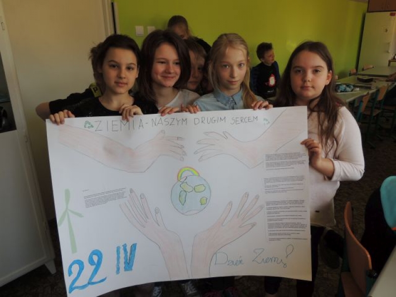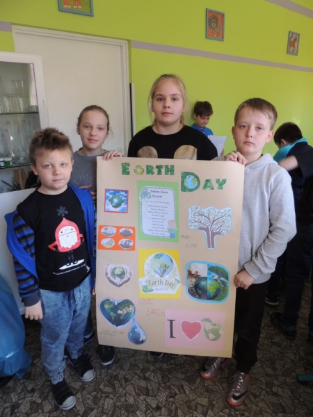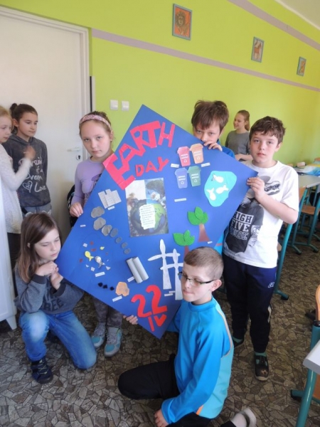 22 kwietnia obchodzimy w Polsce Dzień Ziemi w związku z tym uczniowie klas IV i V przygotowali polsko- angielskie plakaty promujące ochronę naszej planety. Prace wszystkich uczniów zaprezentowane zostały na korytarzach szkolnych. Ponadto 3 uczniów: Cezary Cużytek, Beniamin Marcisz oraz Filip Cysewski przygotowali prezentacje multimedialne poruszające zagadnienia ochrony Ziemi oraz historii obchodów Dnia Ziemi w Polsce i na świecie.