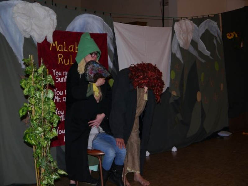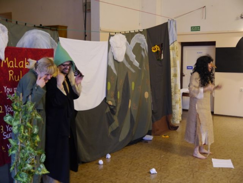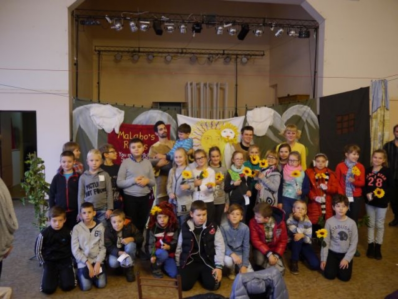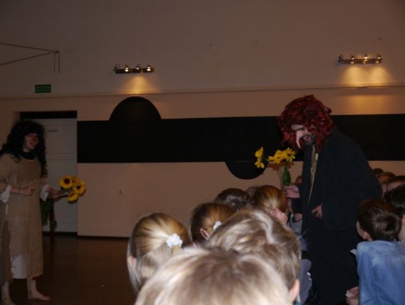 W ubiegłym tygodniu uczniowie naszej szkoły mieli okazję obejrzeć wspaniałe przedstawienia w języku angielskim. Trzecioklasiści obejrzeli spektakl pt. „Jackie and the Sunflower Princess”. Bohaterką opowieści była mała dziewczynka o imieniu Jackie, która wyrusza do Krainy Olbrzymów wezwana przez swych przyjaciół, państwa Good, żeby uwolnić Słonecznikowych ludzi uwięzionych przez złego króla Malabo.