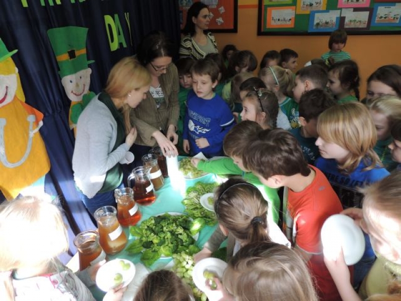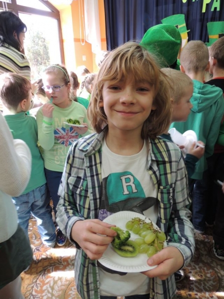 17 Marca w naszej szkole zazieleniło się, gdyż obchodziliśmy Dzień Świętego Patryka, patrona Irlandii. Na korytarzach królowały ubrania w kolorze zielonym, ponieważ najważniejszą tradycją obchodów dnia św. Patryka jest noszenie ubrań w tym właśnie kolorze. Zieleń to narodowy kolor Irlandii, nawiązujący do trawiastego krajobrazu wyspy i symbolizujący koniczynę przypisywaną tradycyjnie świętemu Patrykowi. Irlandczycy w wielu miastach organizują festyny i uliczne pochody, w których dominuje właśnie zieleń. My zaś świętowaliśmy ten dzień degustując zielone warzywa i owoce, a podczas zajęć języka angielskiego uczniowie poznali historię i tradycję tego święta.