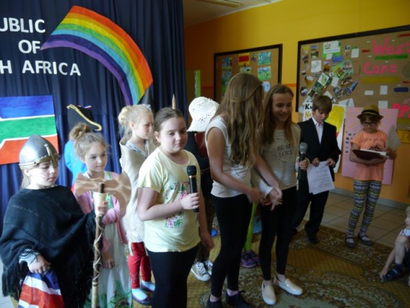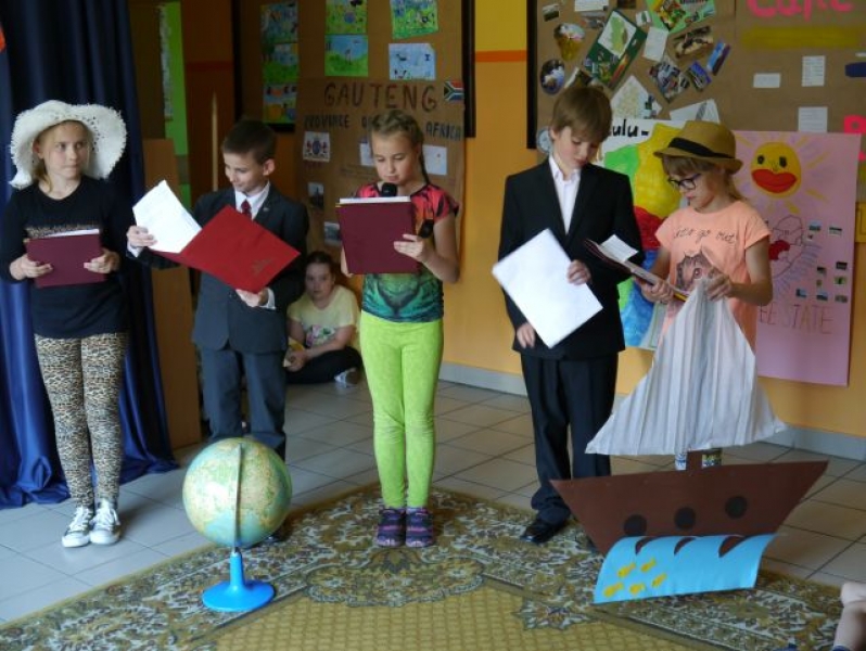 Jak co roku w naszej szkole odbył się Tydzień Angielski, którego głównym celem jest propagowanie nauki języka angielskiego jako najpopularniejszego języka na świecie oraz poznanie kultury krajów anglojęzycznych. W tym roku szkolnym skupiliśmy się na tematyce związanej z Południową Afryką. Podczas zajęć nauczyciele języka angielskiego przybliżyli dzieciom historię i kulturę tego pięknego państwa. Uczniowie klas starszych przygotowali wspaniałe prezentacje multimedialne oraz plakaty przedstawiające interesujące miejsca oraz ciekawostki dotyczące Południowej Afryki. Ponadto odbyły się trzy konkursy z języka angielskiego, tj. Happy Reading dla klas drugich i trzecich, Speaking Competition dla klas czwartych i piątych oraz Powiatowy Konkurs English Poetry Competition. Podczas podsumowania Tygodnia Angielskiego szkolna grupa teatralna Happy Kids wystawiła przedstawienie pt. South Afrika i tym samym miała okazję zaprezentować swoje umiejętności gry aktorskiej. Tydzień ten był doskonałą lekcją wiedzy o Południowej Afryce zarówno dla uczniów, jak i nauczycieli.