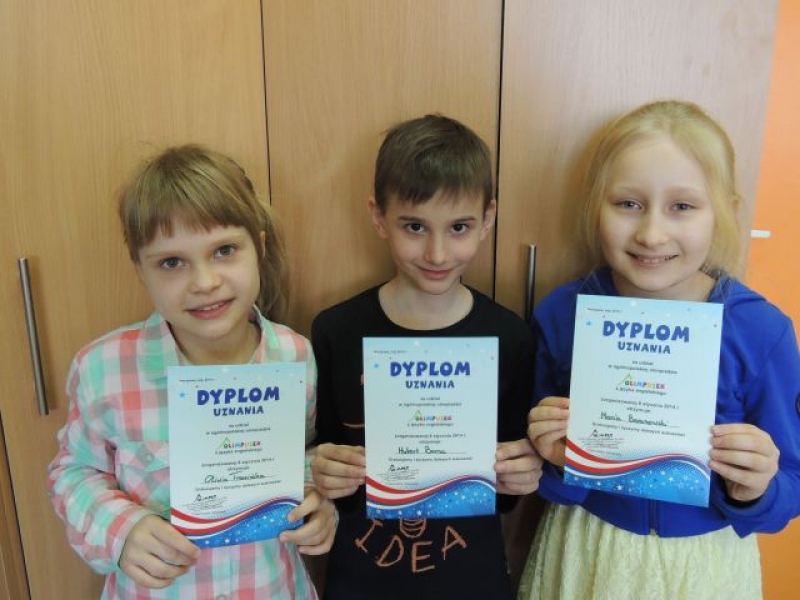 Uczniowie klas I, II i III brali udział w Ogólnopolskiej Olimpiadzie z języka angielskiego OLIMPUSEK, której organizatorem jest firma Olimpus. Tego typu testy stanowią cenne rozszerzenie programów nauczania, są urozmaiceniem programu zajęć, a także stanowią zewnętrzne źródło oceny poziomu wiedzy uczniów. Olimpiada została przygotowana przez doświadczoną i wykwalifikowaną kadrę pedagogiczną. Z ogromną przyjemnością przedstawiamy następujące wyniki: