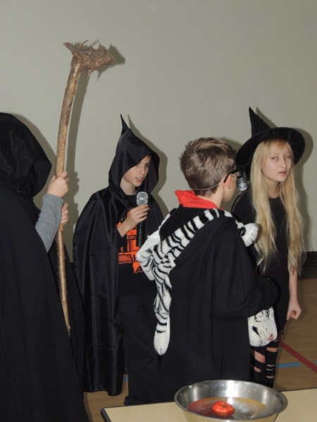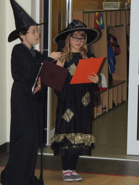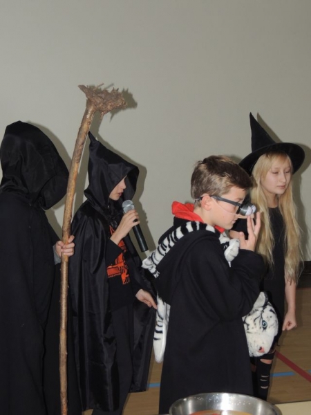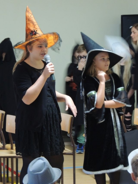 W piątek 30 października uczniowie naszej szkoły mieli okazję obejrzeć dwa przedstawienia szkolnych grup teatralnych Happy Kids oraz Angielskiego Klubu Teatralnego. Nasi młodsi podopieczni wystawili sketch pt. „Ready, steady, go!” opisujący pewną zabawną sytuację w szkolnym autobusie. Starsi uczniowie zaś zajęli się typowo tematyką Halloween, opowiadając o tradycjach i historii tego dnia. Wybrańcy z widowni mieli szansę wystąpić w dwóch konkursach: Bobbing the apple, polegającym na wyciąganiu jabłek z wody bez użycia rąk oraz krótki Quiz związany z głównymi zagadnieniami Halloween. Zwycięzcy zostali nagrodzeni słodkimi nagrodami.