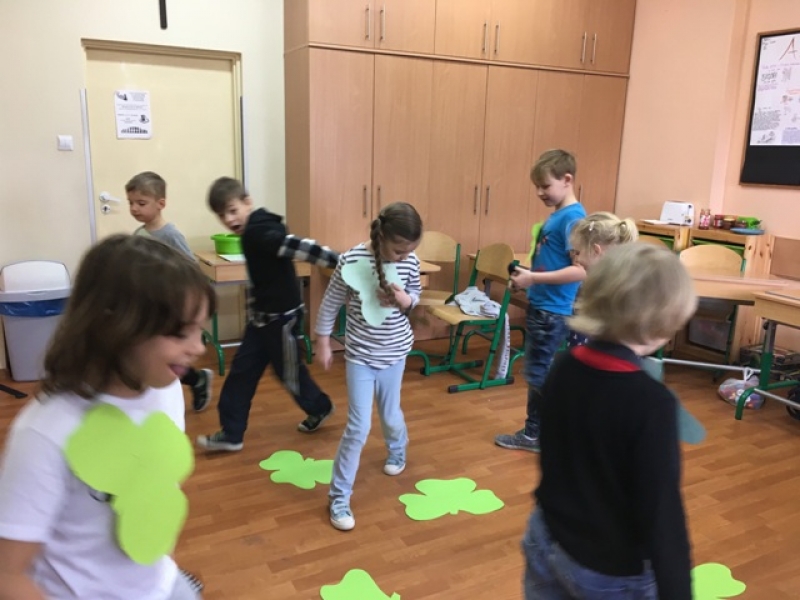 Happy Kids celebrated it last week by playing lots of games connected with St. Patrick's Day, e.g Who's the Leprechan?, Shamrock Scramble or Pot of Gold Relay.