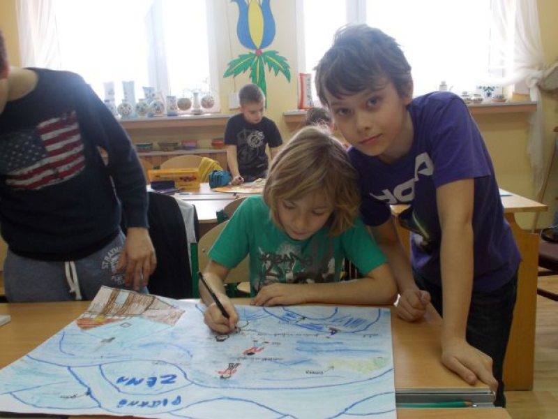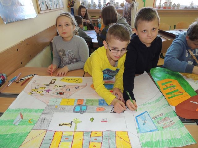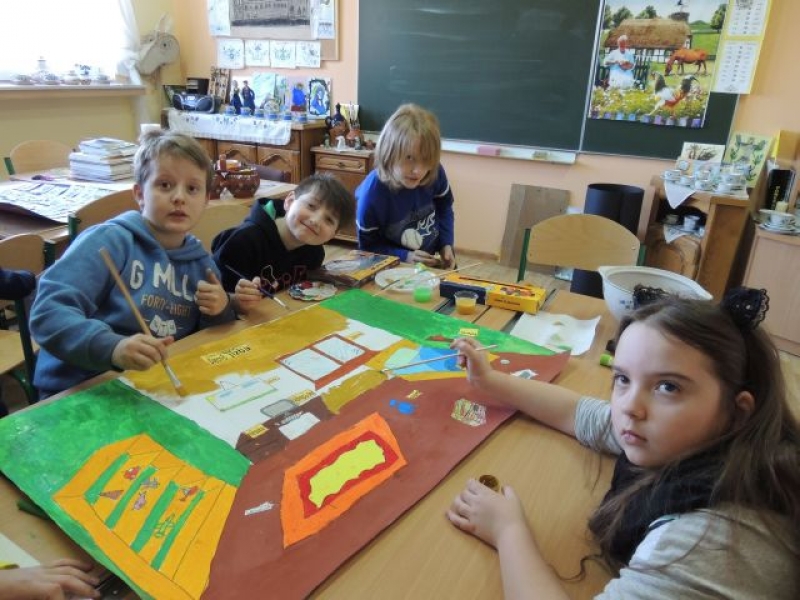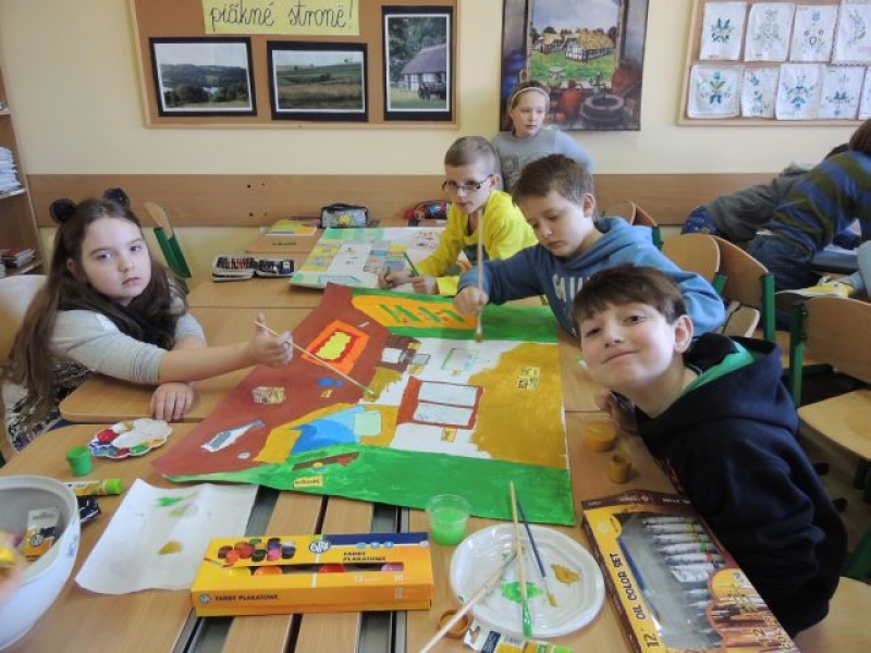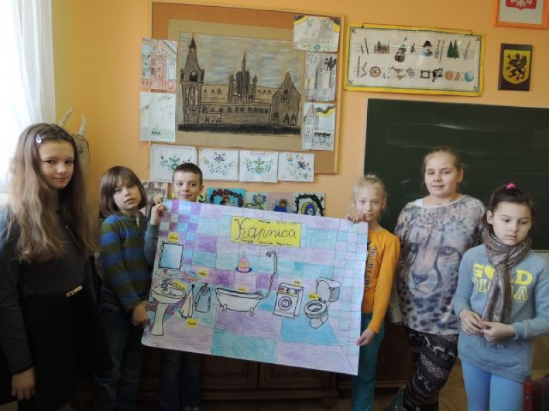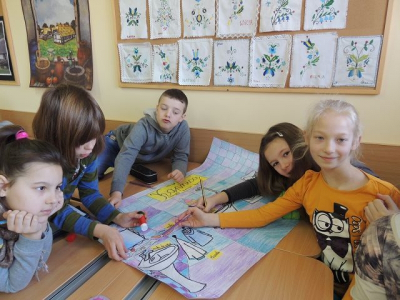 Trzecio- i czwartoklasiści podczas zajęć języka kaszubskiego w lutym pracowali w grupach, aby przygotować plansze tematyczne. W ten sposób utrwalali oni poznane słownictwo. Klasa trzecia wykonała plansze ilustrujące takie pomieszczenia domowe, jak: łazienka - kąpnica, kuchnia - kùchniô i pokój dziecięcy - dzecnô jizba. Natomiast czwarta klasa przedstawiła w ten sposób takie pory roku, jak: zima - zëma, lato - lato, jesień - jeséń czy wiosna - zymk. Ta forma zajęć była nie tylko przydatna w przyswajaniu kaszubskiego słownictwa, ale przyczyniła się do rozwijania umiejętności współpracy w zespole.