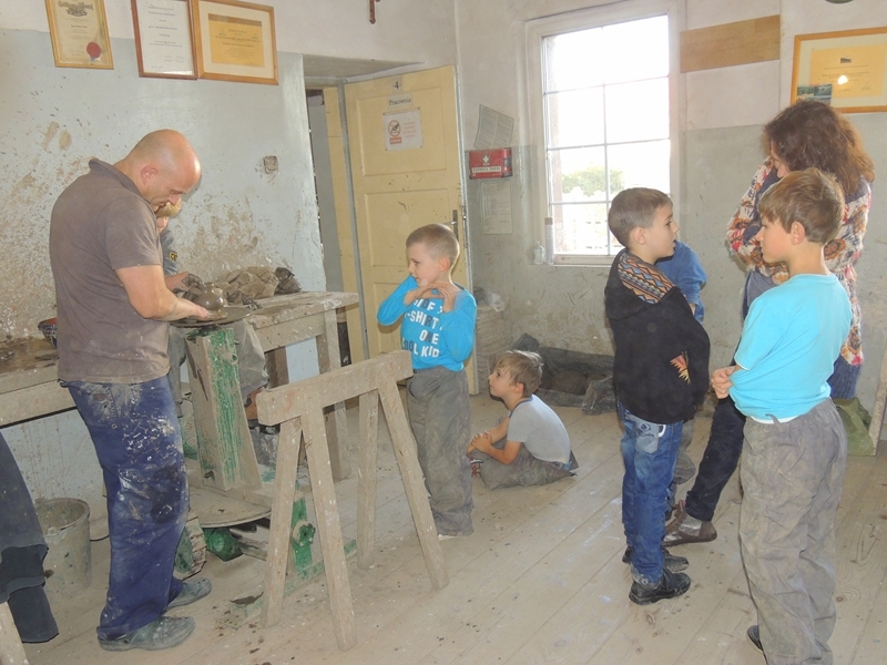 22 listopada 2016 r. uczniowie klasy pierwszej w ramach realizacji tematu ,,Elementy obrzędowości, rzemiosła i kultury kaszubskiej” wybrali się na całodzienną wycieczkę do Kartuz i Chmielna. Dzieci zwiedziły Muzeum Kaszubskie w Kartuzach poznając pod kierunkiem przewodnika jego historię i zasoby. Miały one również okazję uczestniczyć tu w warsztatach ,,Malowanie gęsim piórem”. Następnie pierwszaki pojechały do Chmielna, aby w Muzeum Ceramiki Neclów zapoznać się ze sztuką ludową Kaszub, a mianowicie garncarstwem – ginącym rzemiosłem kaszubskim. Najpierw odbył się tam pokaz toczenia na kole garncarskim z objaśnieniem procesu wyrobu naczyń ceramicznych. Następnie dzieci z zapałem uczestniczyły w warsztatach garncarskich. Nie zabrakło okazji do zakupienia pamiątek, co było doskonałym podsumowaniem wycieczki.
