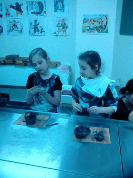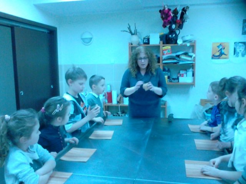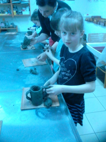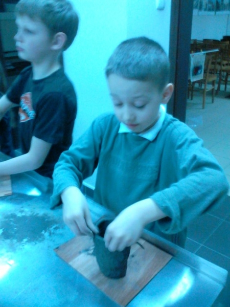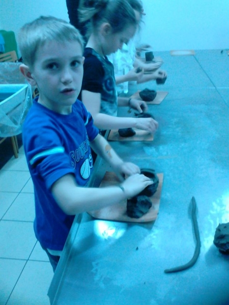 Dzieci miały też okazję wcielić się w rolę małego rzeźbiarza biorąc udział w zajęciach warsztatowych pt. Lepienie w glinie.