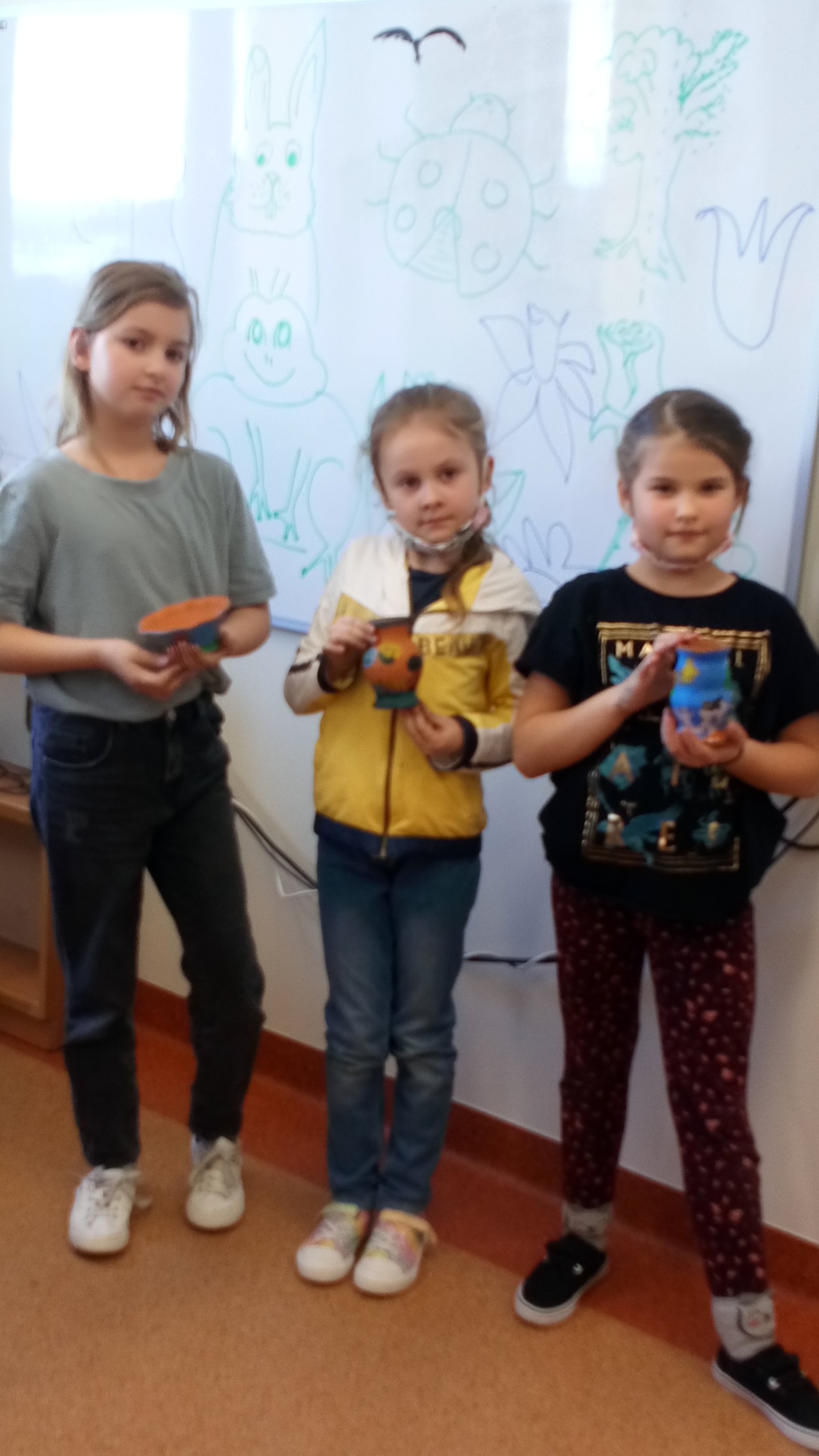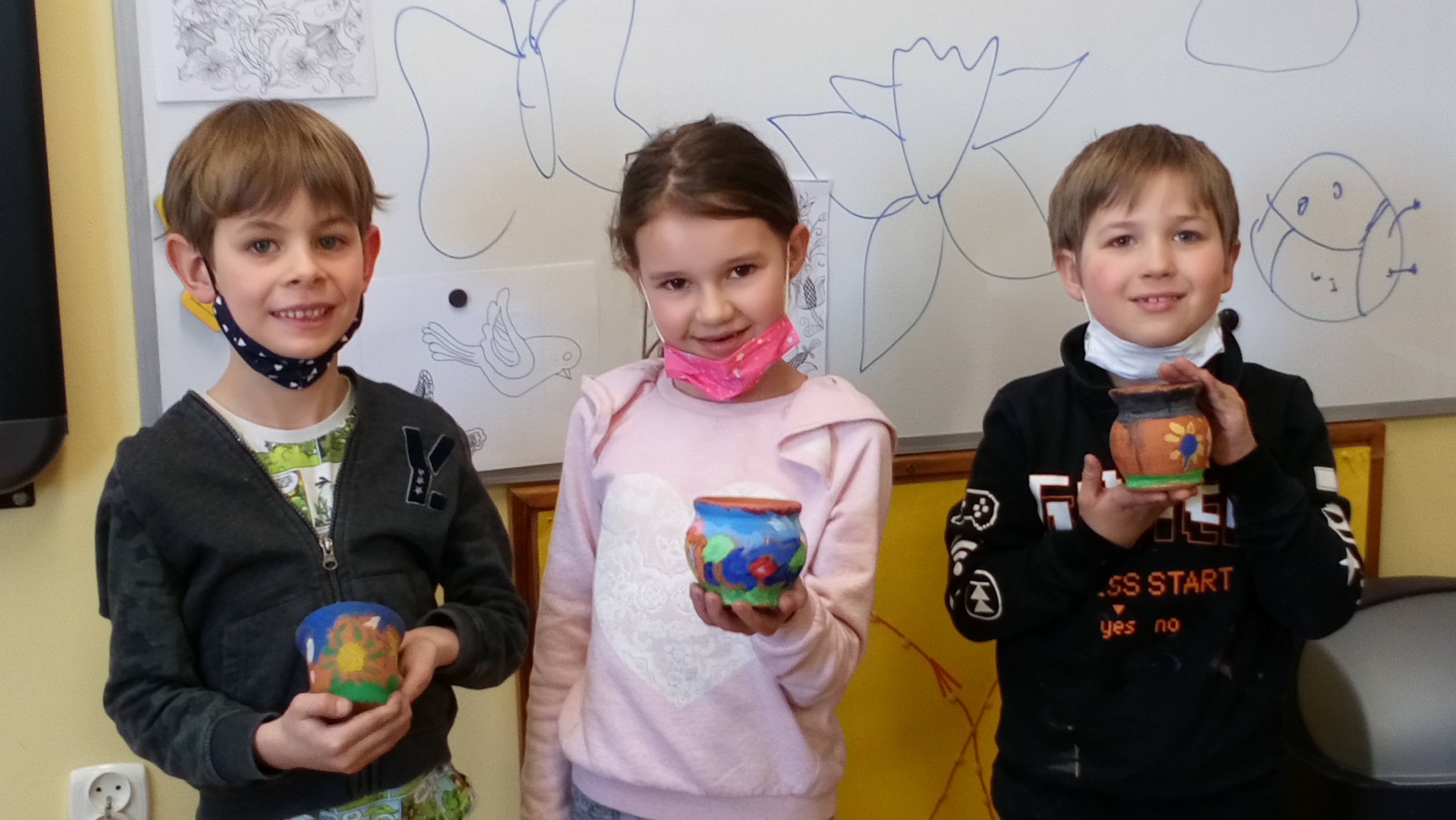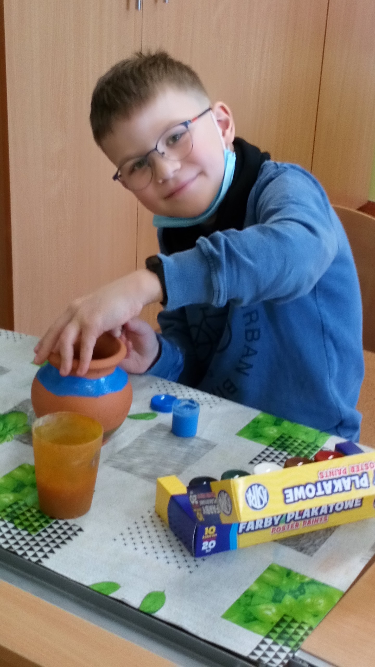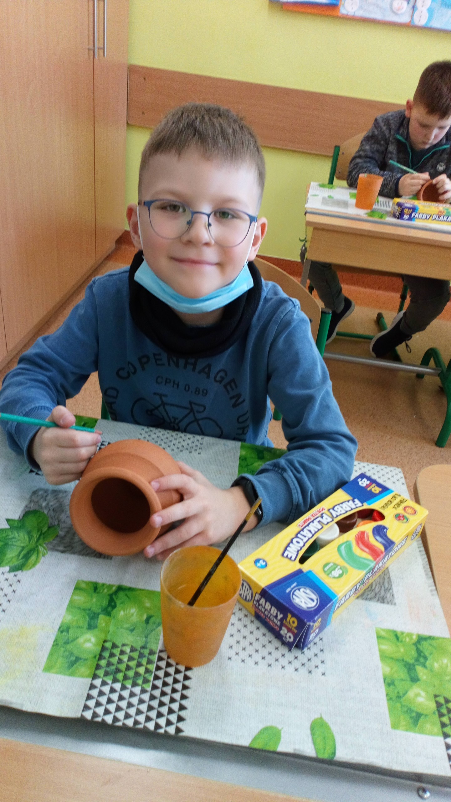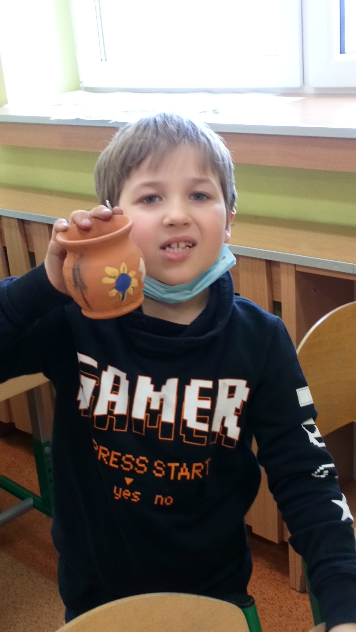 19 marca 2021 r. odbyły się warsztaty kaszubskie dla klas pierwszych, realizowane w ramach nauki języka kaszubskiego. Podczas tych zajęć dzieci ozdabiały wyroby z gliny, wykonane jesienią podczas warsztatów garncarskich. Inspiracją dla pierwszoklasistów były motywy wiosenne. Uczniowie pomalowali przepięknie swoje wazoniki i miseczki. Udział w warsztatach sprawił im ogromna radość.