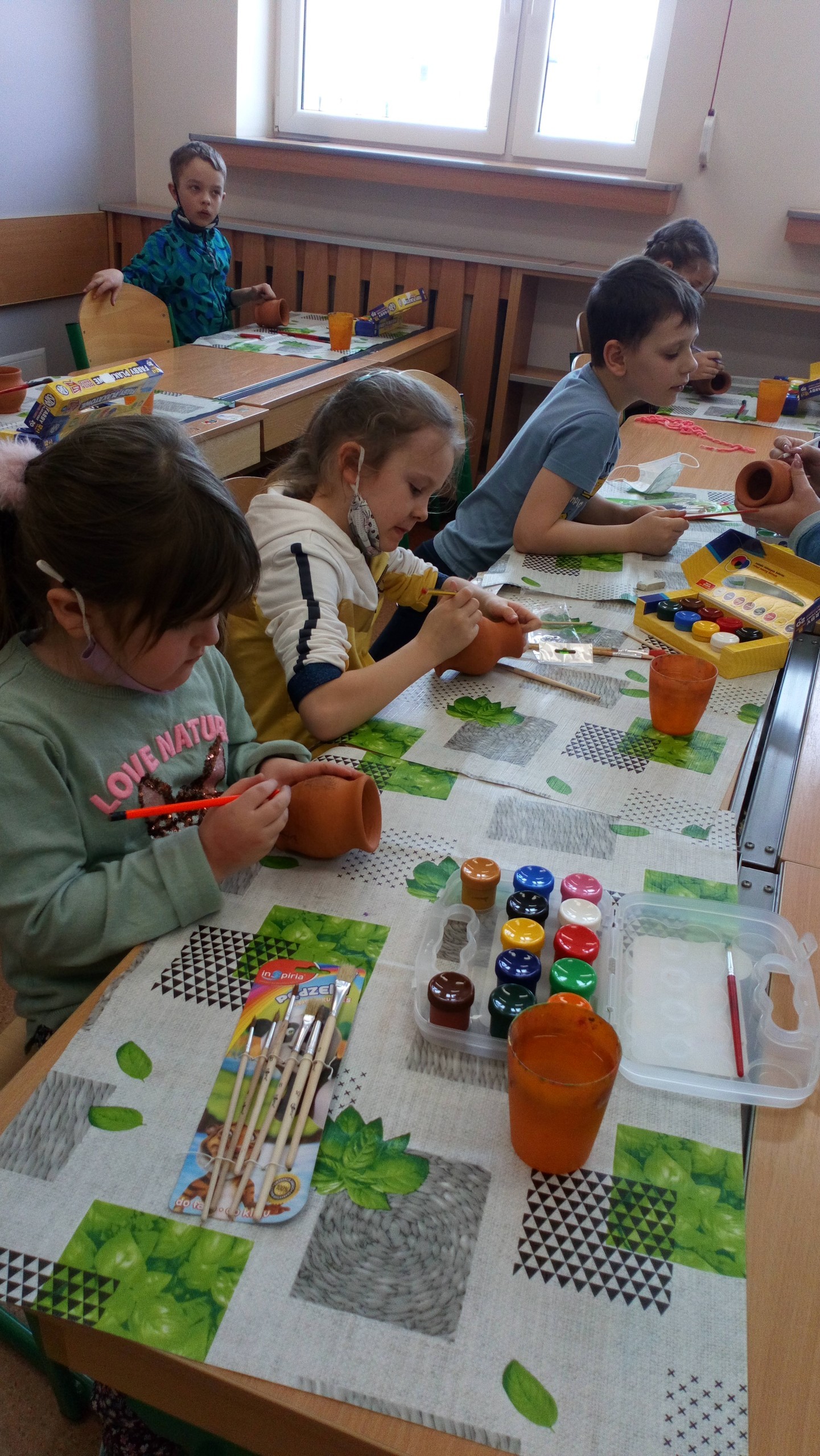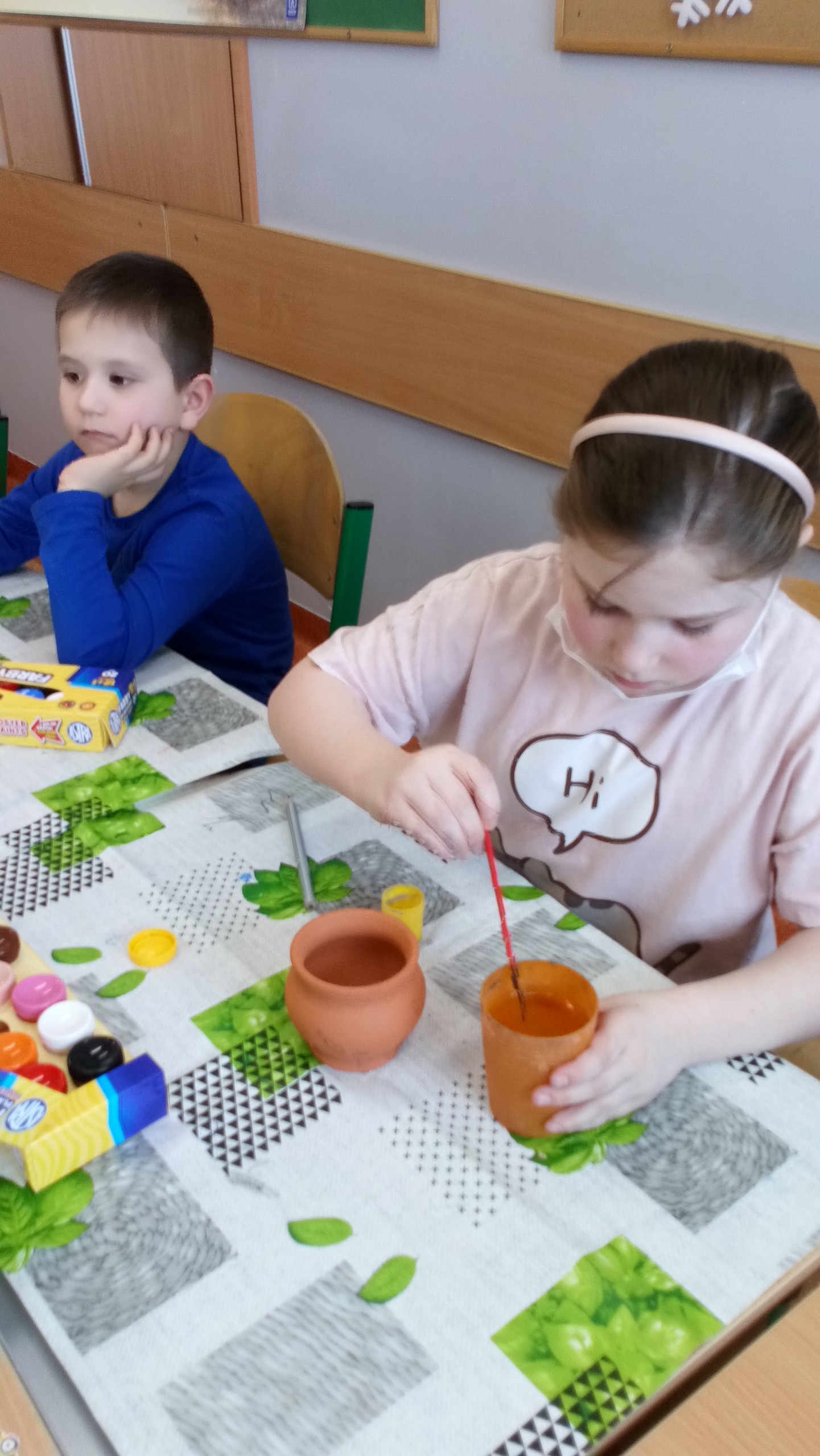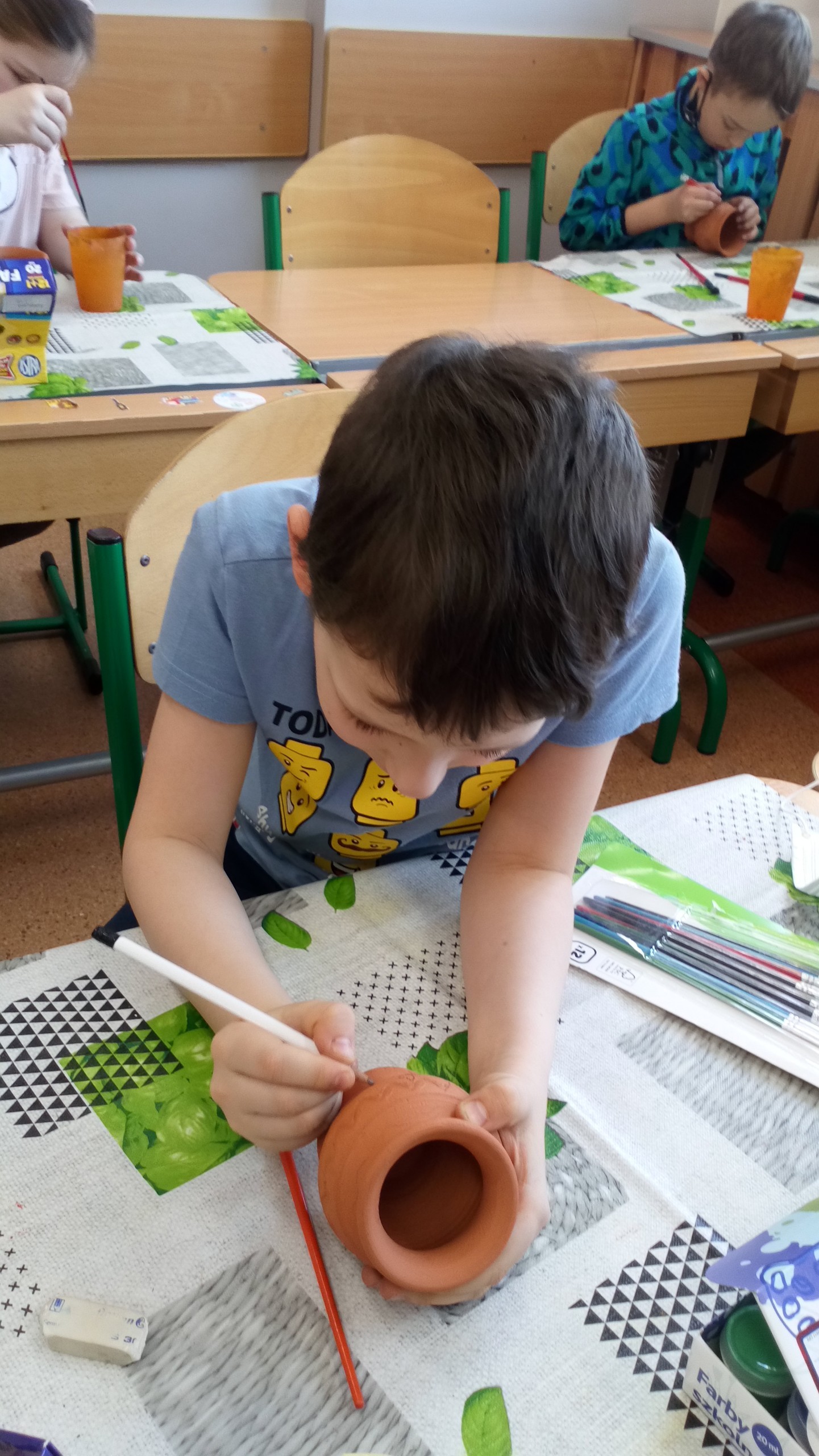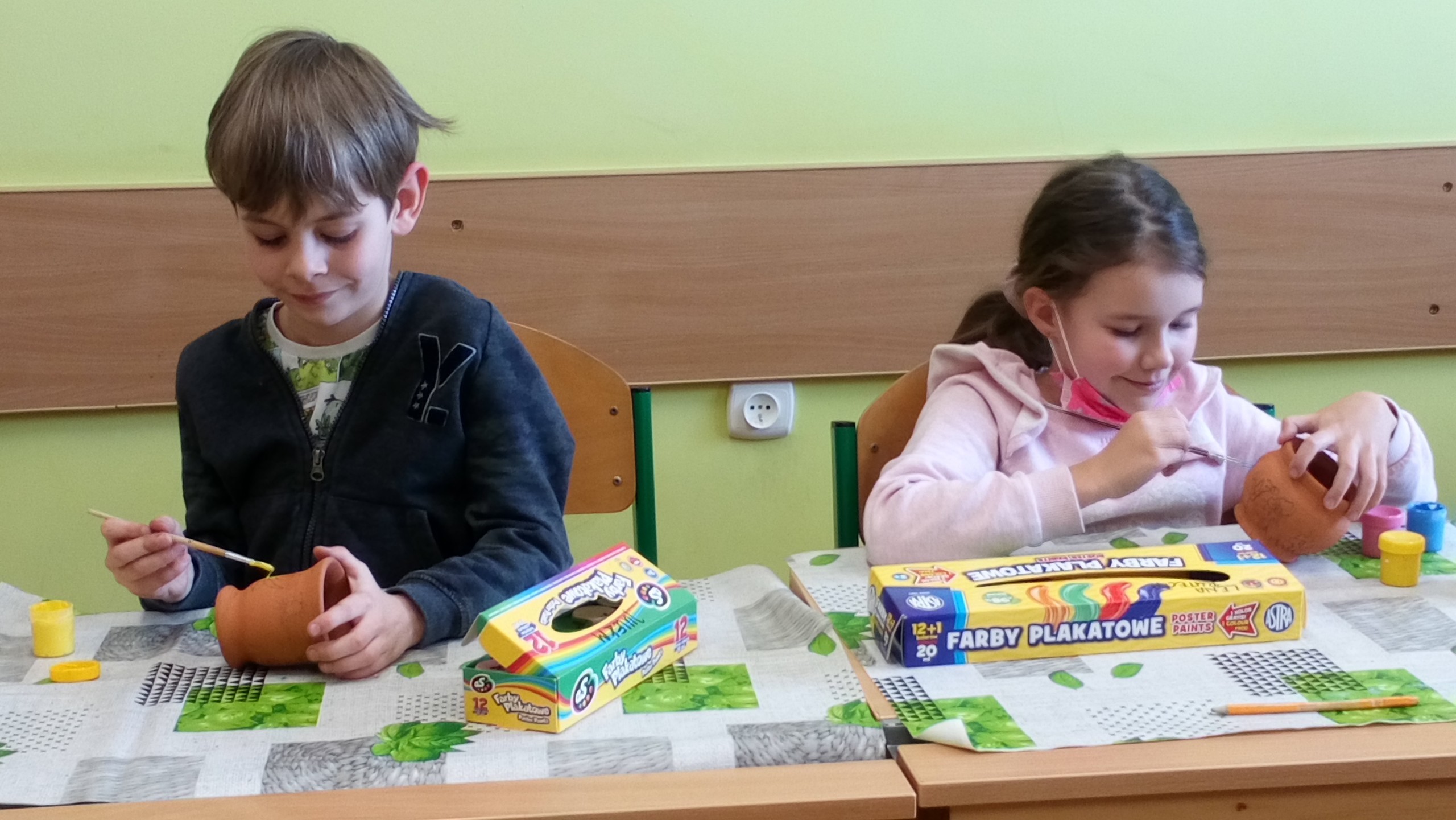 19 marca 2021 r. odbyły się warsztaty kaszubskie dla klas pierwszych, realizowane w ramach nauki języka kaszubskiego. Podczas tych zajęć dzieci ozdabiały wyroby z gliny, wykonane jesienią podczas warsztatów garncarskich. Inspiracją dla pierwszoklasistów były motywy wiosenne. Uczniowie pomalowali przepięknie swoje wazoniki i miseczki. Udział w warsztatach sprawił im ogromna radość.