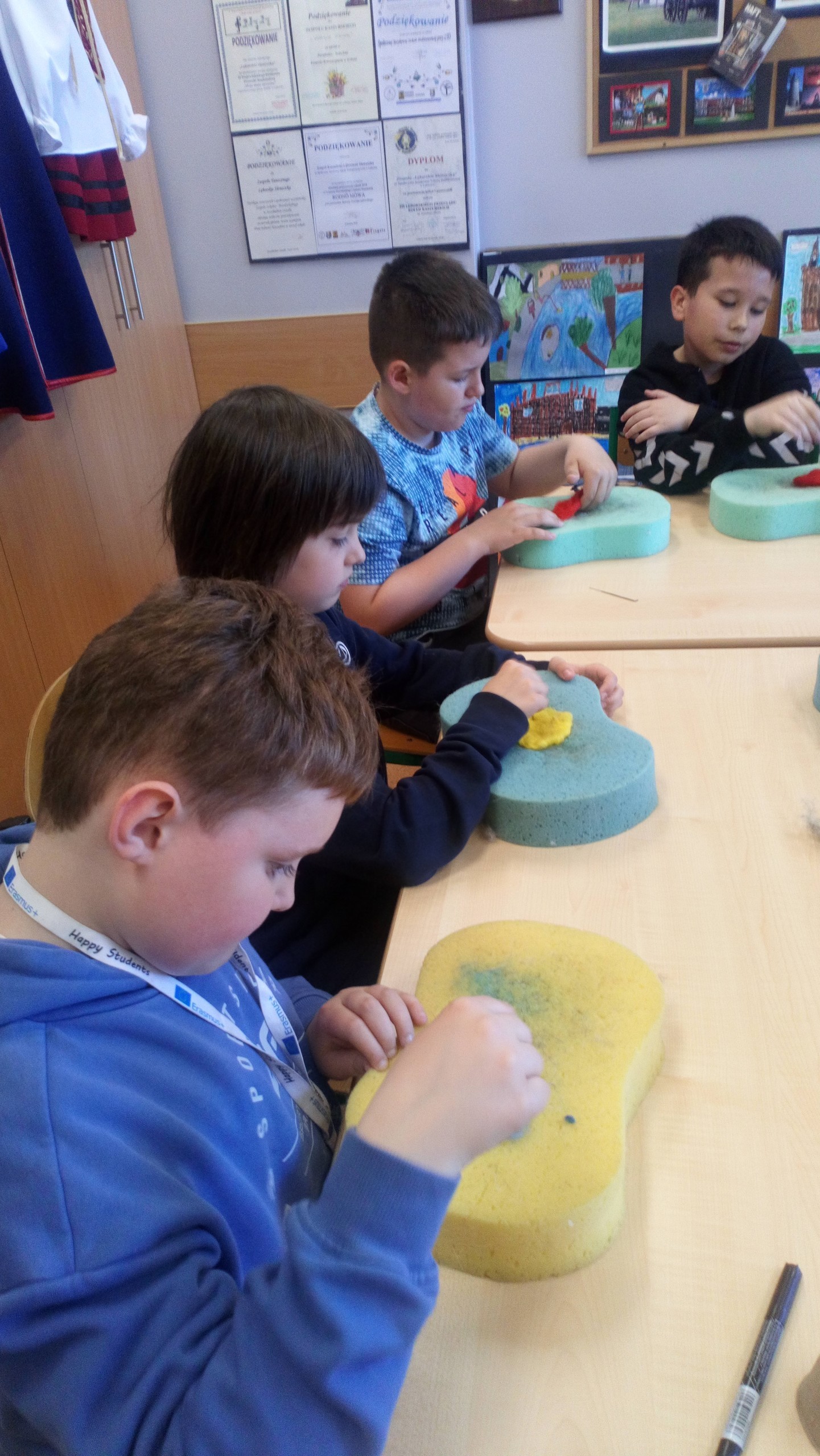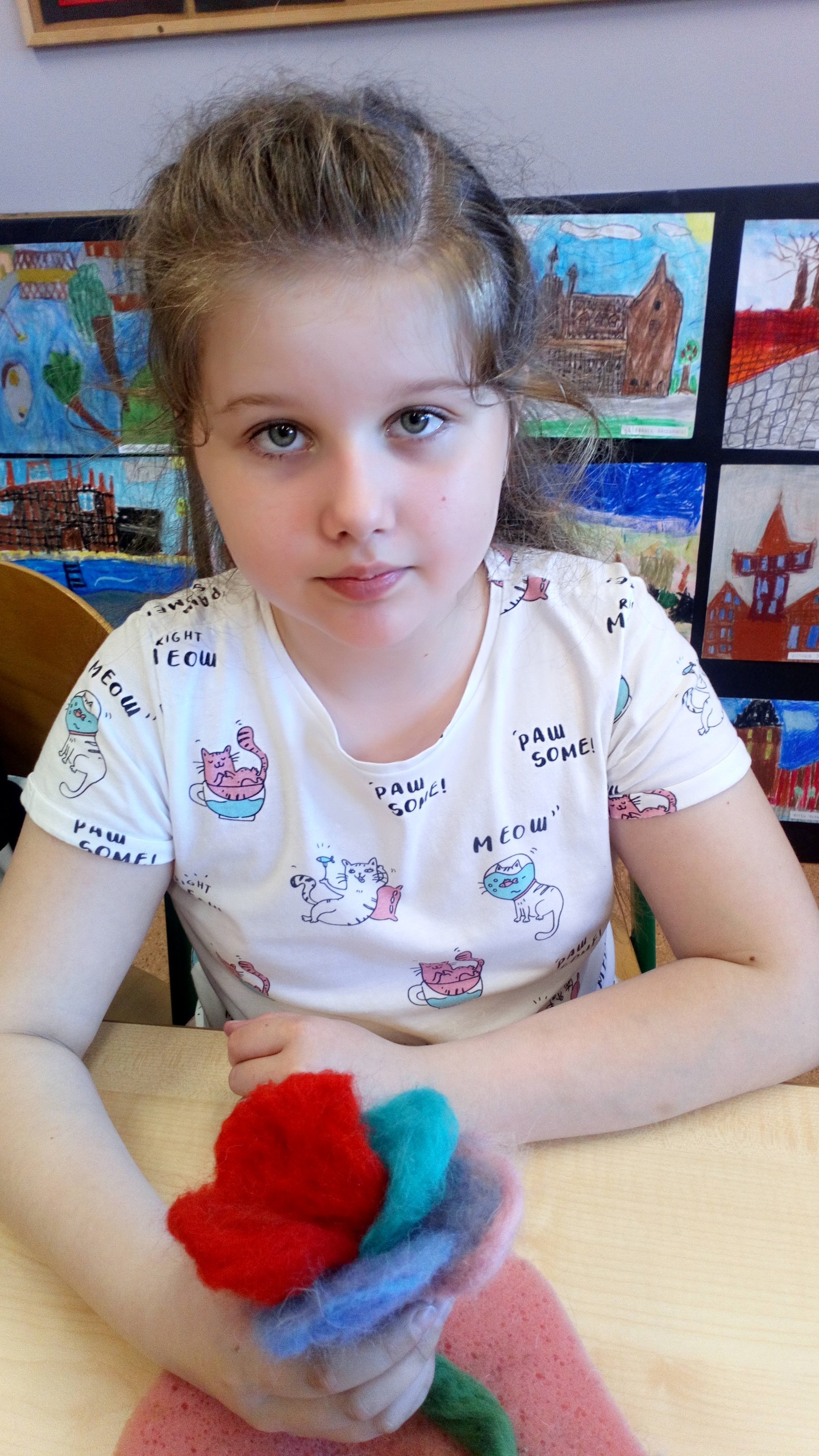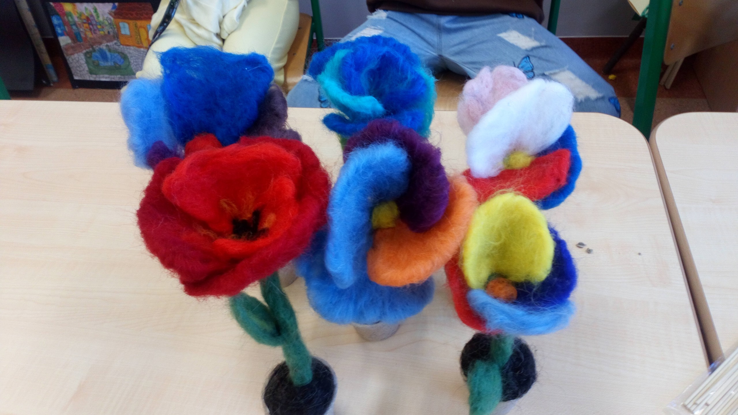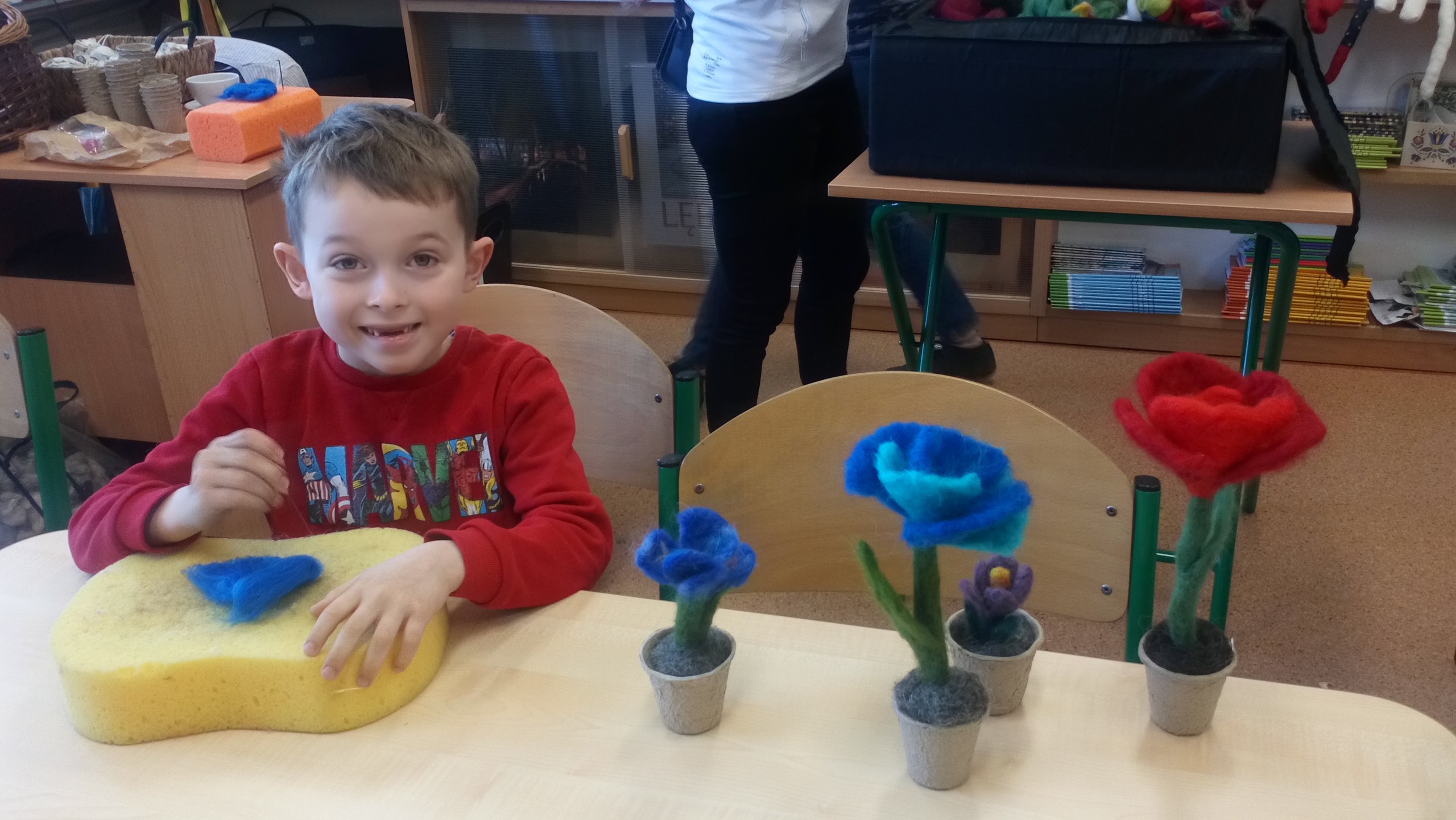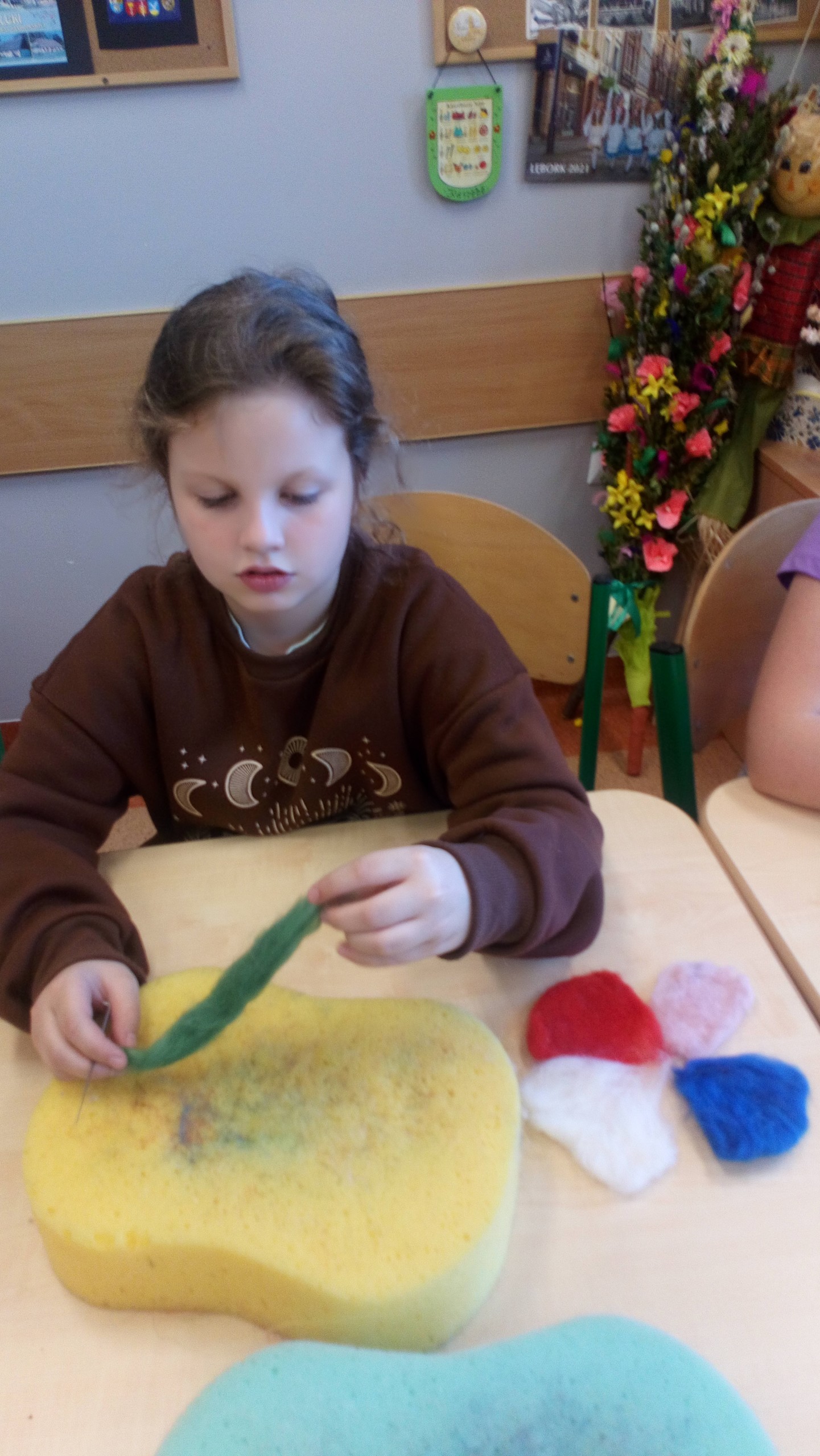 Uczniowie klas I – III , w ramach realizacji języka kaszubskiego, uczestniczyli w maju w warsztatach rękodzieła – filcowanie na sucho. Warsztaty poprowadziła p.Tatiana Słojka ze Słupska. Dzieci miały okazję wykonać kwiatki przestrzenne z filcu. Zajęcia bardzo się dzieciom podobały, a wytwory ich pracy były przepiękne.