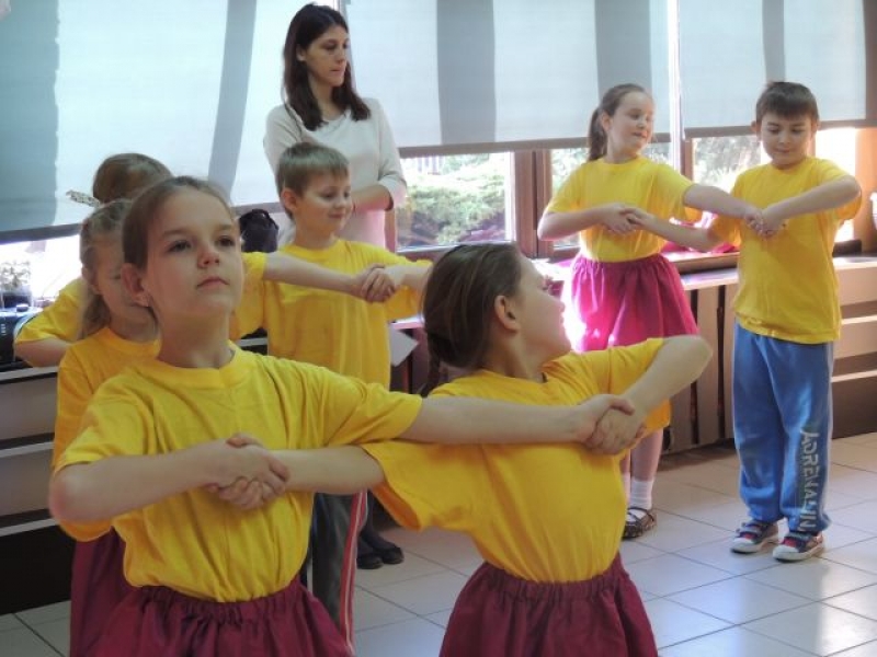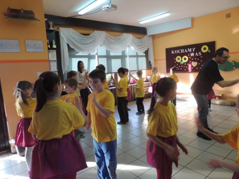 21 lutego 2015 roku, w sobotnie przedpołudnie, członkowie szkolnego zespołu tanecznego „Lęborskie słoneczka” mieli okazję poćwiczyć tańce pod czujnym okiem znanego choreografa, p. Marka Czarnowskiego. Tancerze bardzo pilnie słuchali poleceń prowadzącego, no i starali się dokładnie je wykonywać. Zajęcia poświęcone były przygotowaniu ciekawego układu tanecznego na występ zespołu podczas Przeglądu Zespołów Regionalnych, który odbędzie się na przełomie maja i czerwca w Wierzchucinie. Pan Marek zaproponował też dzieciom kilka znanych zabaw muzyczno - ruchowych, jak np. „Gąski, gąski do domu” czy „Rolnik sam w dolinie”. Dzieci miały także okazję popisać się znajomością kaszubskich piosenek, takich jak: „Tata i koza”, „Kaszubskie nuty” czy „Wele, wele, Wetka”. Całość zajęć przebiegała pracowicie, ale w bardzo radosnej atmosferze.