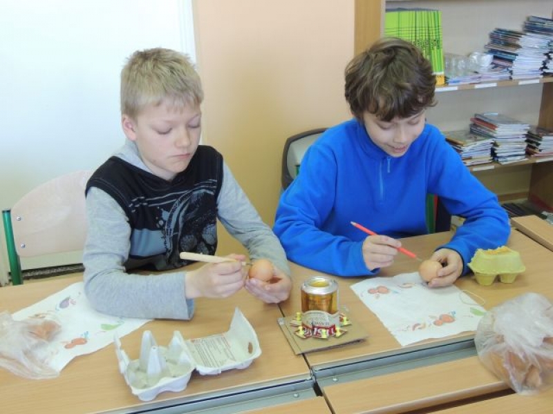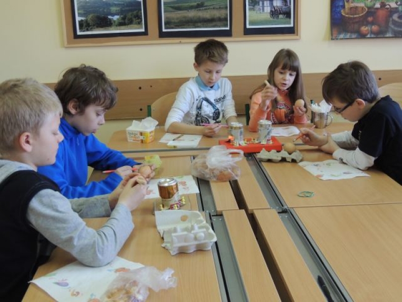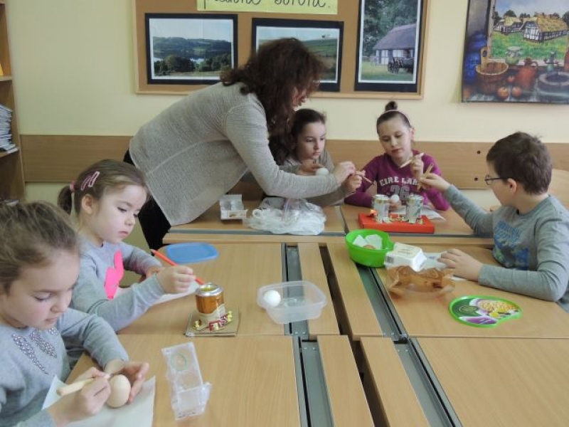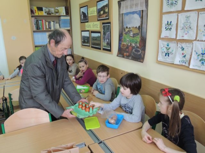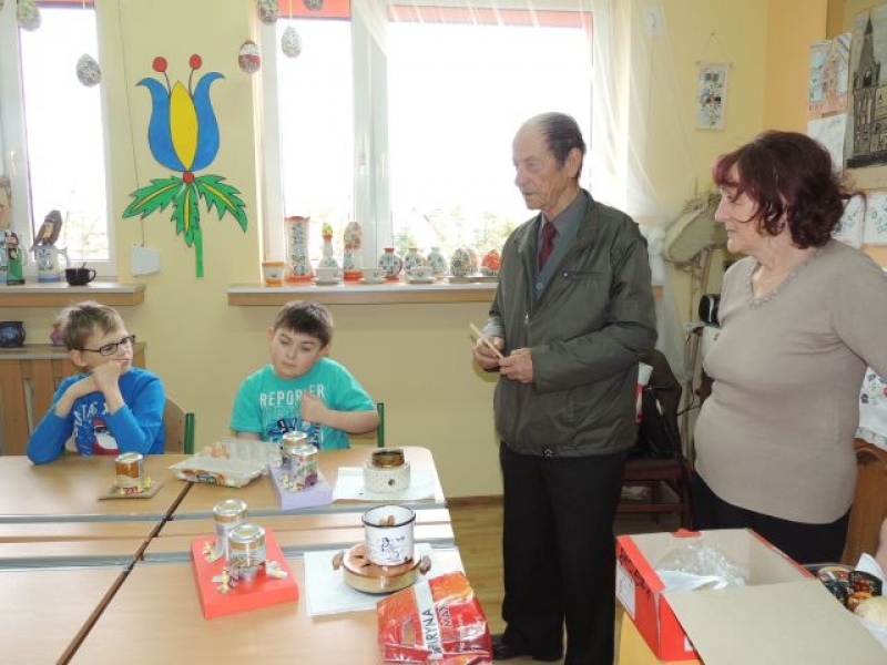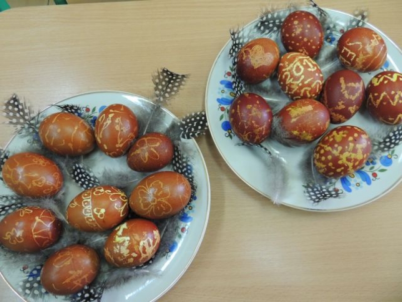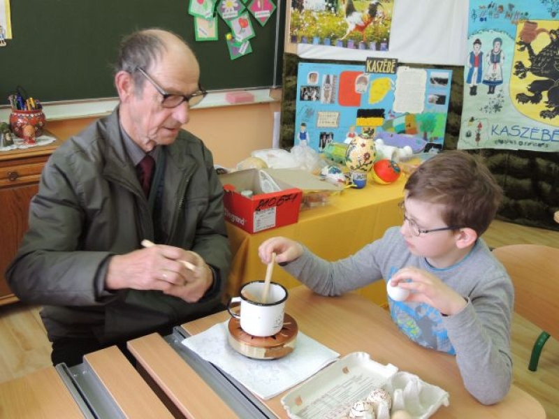 We wtorek naszą szkołę odwiedzili państwo Gabriela i Czesław Drozdowie z Rozłazina, którzy pokazali uczniom tradycyjny - a zarazem ekologiczny- sposób zdobienia wielkanocnych kraszanek. Polegał on na wykonaniu na jajkach wzorów przy użyciu wosku pszczelego i zafarbowaniu tak ozdobionego jajka za pomocą barwnika zawartego w łuskach cebuli. Uczniom bardzo spodobała się ta tradycja, więc wykonywali swoje pisanki z wielkim zaangażowaniem i rozmachem plastycznym. Zajęcia warsztatowe odbywały się w ramach lekcji języka kaszubskiego z inicjatywy p. Patrycji Markowskiej, mamy jednego z czwartoklasistów. Nauczyciel przedmiotu składa szczere podziękowanie za tak osobiste zaangażowanie ze strony pani Markowskiej.