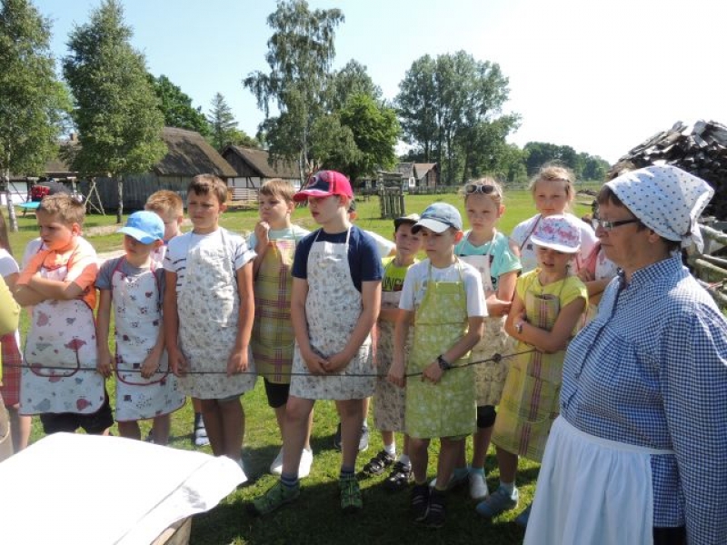 W piątek, 3 czerwca 2016 r., uczniowie klas trzecich wybrali się do Muzeum Wsi Słowińskiej w Klukach, aby wziąć udział w lekcji muzealnej dotyczącej elementów jadła na wsi słowińskiej i kaszubskiej z przełomu XIX i XX wieku. Początkowe zajęcia odbywały się przy piecu chlebowym. Tu dzieci obserwowały przygotowanie pieca do wypieku i słuchały historii zmian zachodzących w składzie ciasta na chleb słowiński. Po włożeniu bochnów do pieca uczestnicy przeszli do zagrody edukacyjnej w celu przygotowania ciasta na wafle wg receptury spisanej z pokrywy oryginalnej żeliwnej wafelnicy, ubijania masła w kierzance i wyrabiania go, obierania i krojenia warzyw i ziemniaków na zupę – kartoflankę. Później trzecioklasiści zwiedzali zabytkowe wnętrza ze szczególnym zwróceniem uwagi na pomieszczenia kuchenne. Po powrocie nastąpiła degustacja wspólnie przygotowanych potraw. Dzieci z apetytem spożywały chleb z masłem, zupę kartoflaną i wafle z cukrem pudrem. To była „pyszna” wycieczka!
