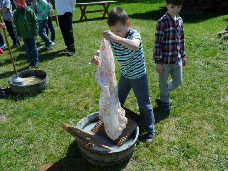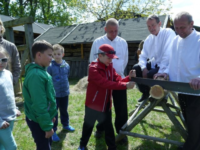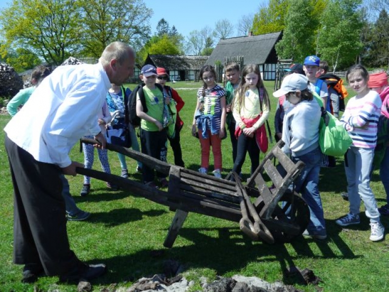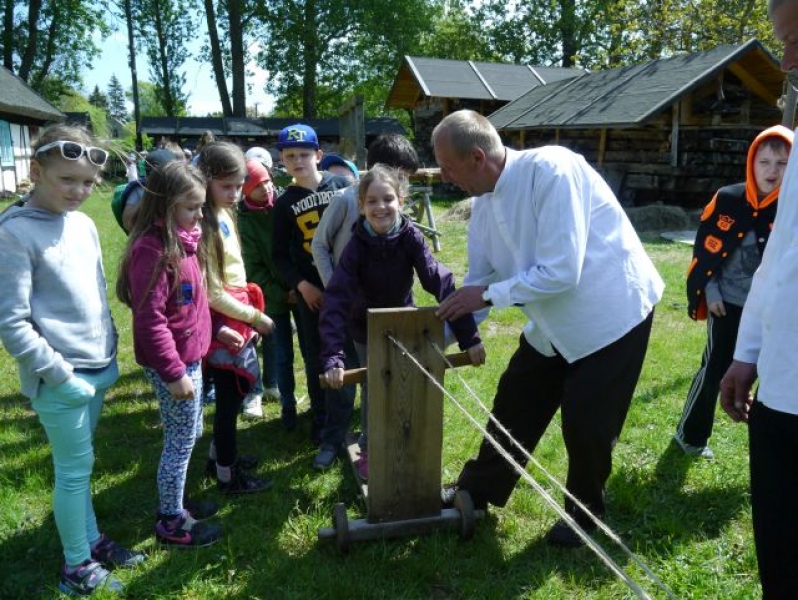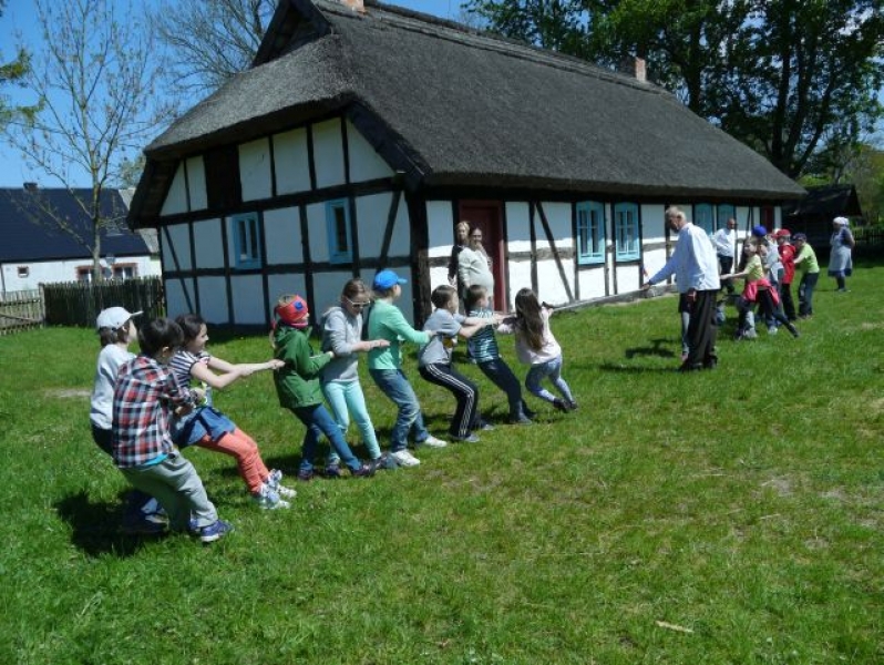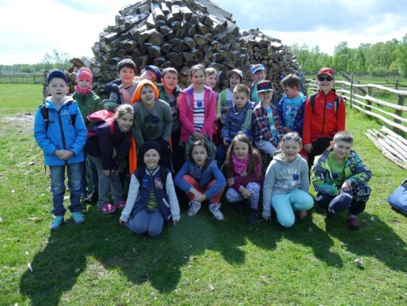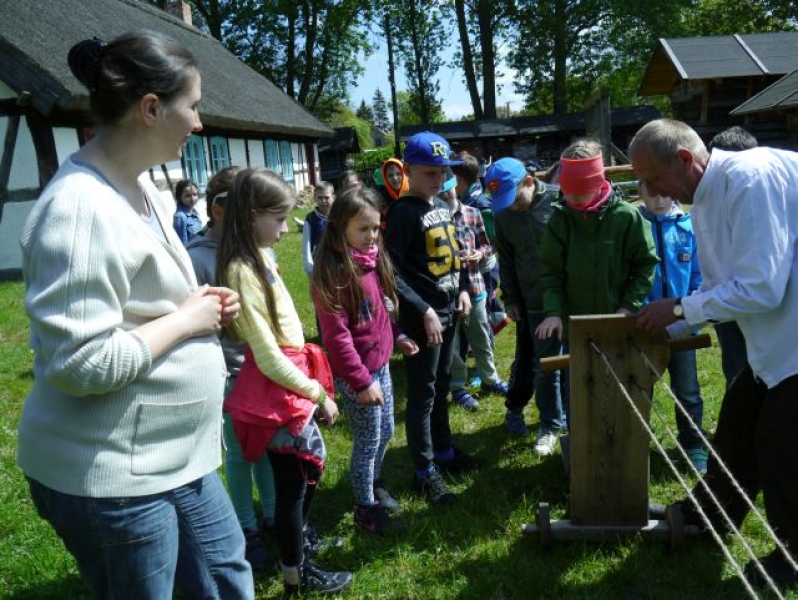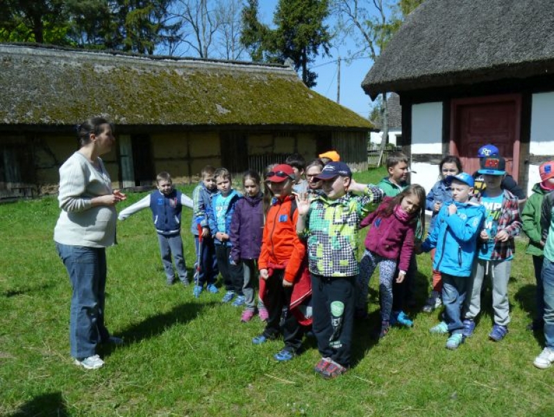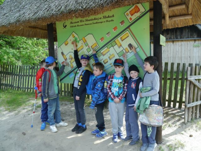 Uczniowie klas drugich, w piątek 22 maja 2015r., wybrali się po raz kolejny do Muzeum Wsi Słowińskiej w Klukach. W tym roku tematem zajęć były: „Dawne zajęcia Słowińców, czyli jak warunki naturalne zdeterminowały życie na wsi”. Zajęcia odbywały się w zagrodzie edukacyjnej. Celem tych zajęć było praktyczne wykorzystanie wiedzy zdobytej na temat codziennych zajęć Słowińców. Uczniowie posługując się kopiami tradycyjnych narzędzi i sprzętów wykonywali prace, które niegdyś wykonywali mieszkańcy wsi słowińskich: kopanie torfu, piłowanie drewna, kręcenie powrozów, pranie tarą i dzwonem, wypełnianie ścianki szachulcowej. Dodatkowym atutem wycieczki była słoneczna pogoda, co pozwoliło dzieciom spędzić dużo czasu na świeżym powietrzu .