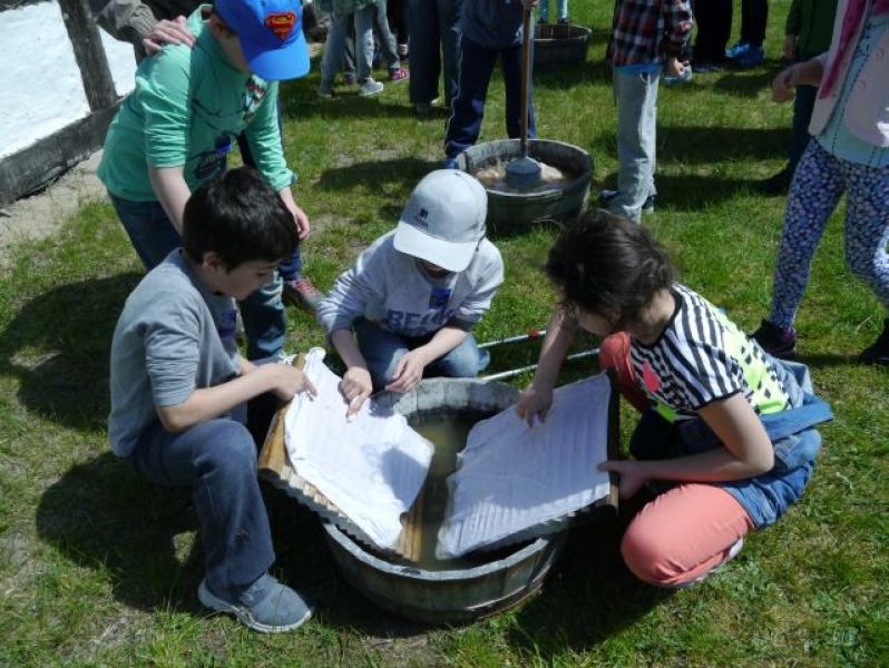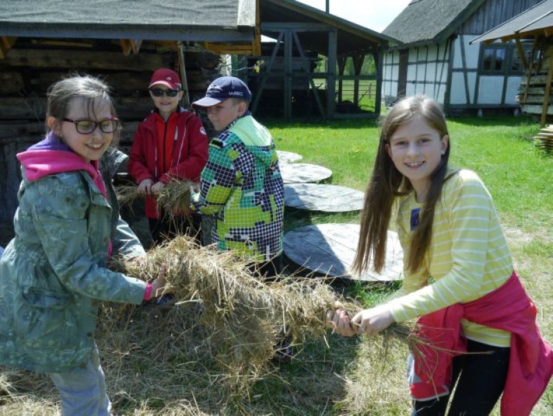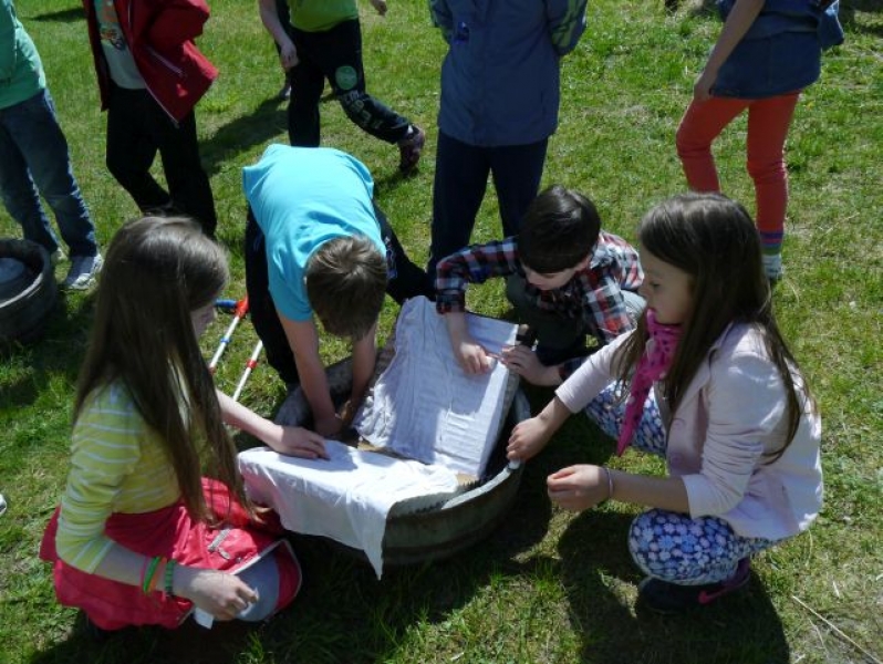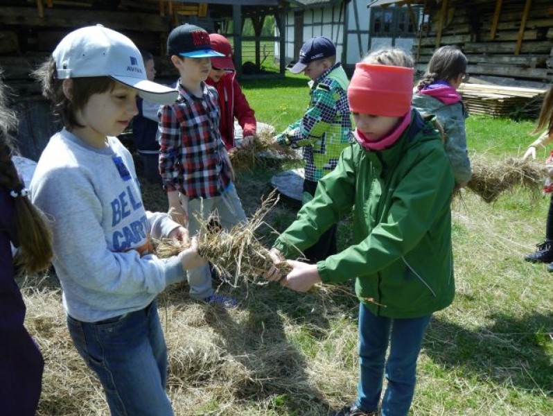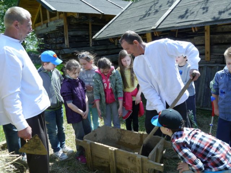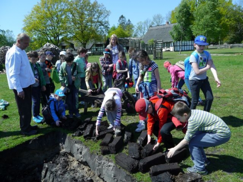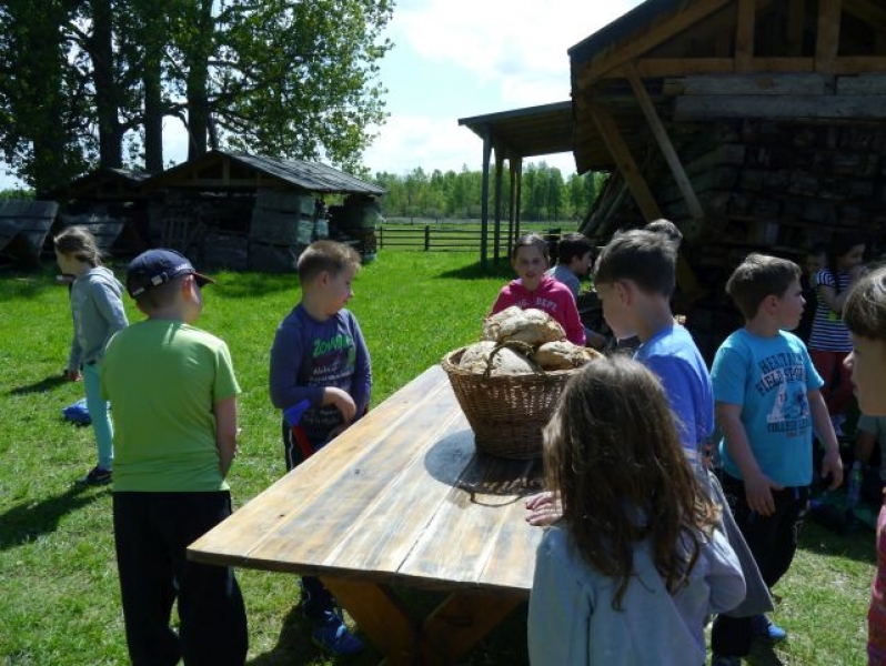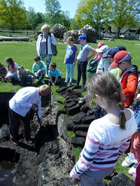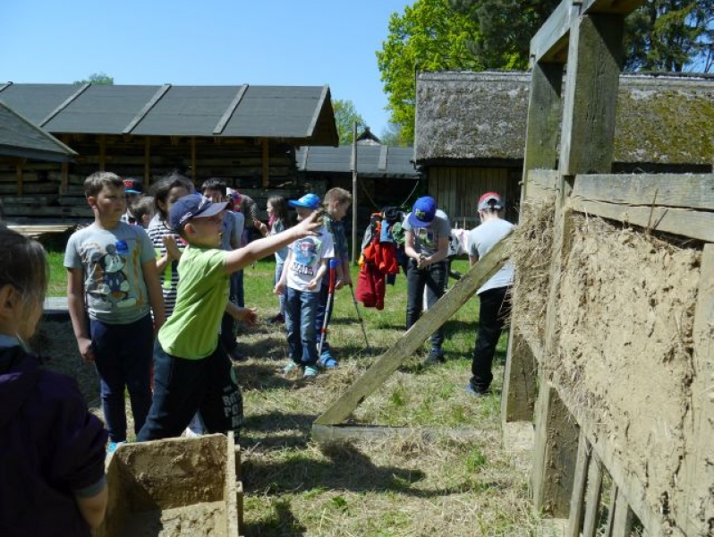 Uczniowie klas drugich, w piątek 22 maja 2015r., wybrali się po raz kolejny do Muzeum Wsi Słowińskiej w Klukach. W tym roku tematem zajęć były: „Dawne zajęcia Słowińców, czyli jak warunki naturalne zdeterminowały życie na wsi”. Zajęcia odbywały się w zagrodzie edukacyjnej. Celem tych zajęć było praktyczne wykorzystanie wiedzy zdobytej na temat codziennych zajęć Słowińców. Uczniowie posługując się kopiami tradycyjnych narzędzi i sprzętów wykonywali prace, które niegdyś wykonywali mieszkańcy wsi słowińskich: kopanie torfu, piłowanie drewna, kręcenie powrozów, pranie tarą i dzwonem, wypełnianie ścianki szachulcowej. Dodatkowym atutem wycieczki była słoneczna pogoda, co pozwoliło dzieciom spędzić dużo czasu na świeżym powietrzu .