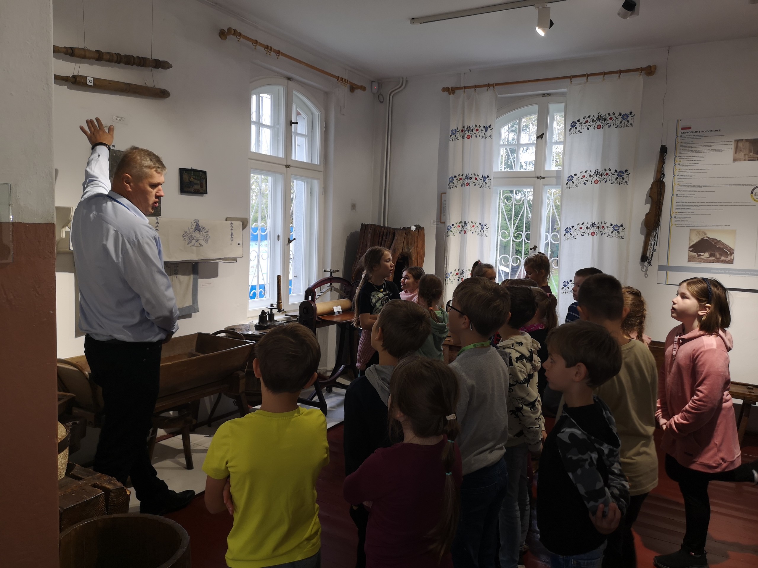 Drugoklasiści, w ramach realizacji języka kaszubskiego, wybrali się do Muzeum Kaszubskiego w Kartuzach. Po zakończonym zwiedzaniu, z wielką radością i zaangażowaniem, uczestniczyli w warsztatach "Haftu kaszubskiego". Następnie, zgodnie z programem wycieczki, obejrzały Kolegiatę - kościół klasztorny z dachem w kształcie trumny. W drodze powrotnej uczniowie zatrzymali się przy Ołtarzu Papieskim w Sierakowicach. Cała wycieczka dostarczyła uczniom wielu wrażeń.