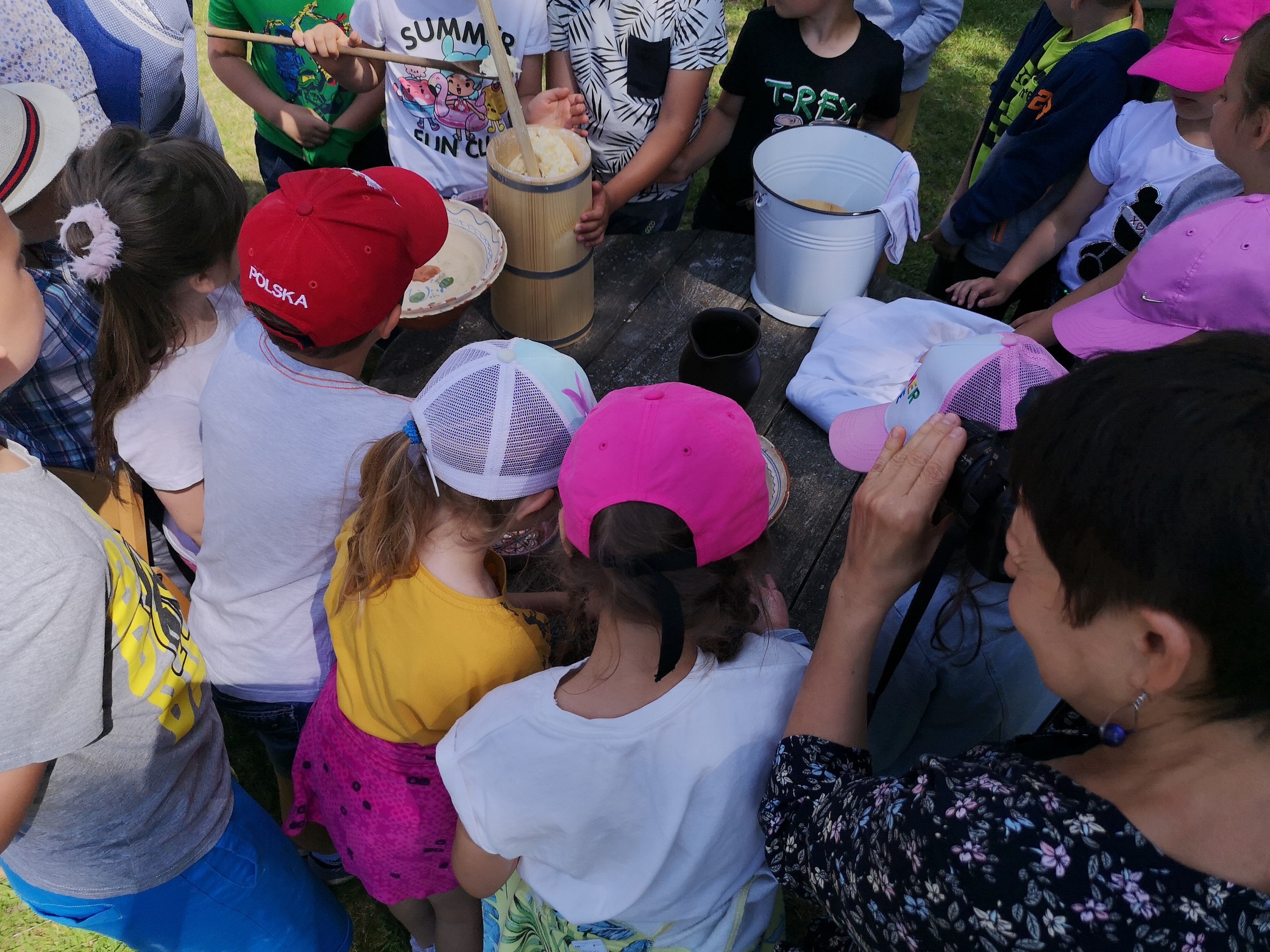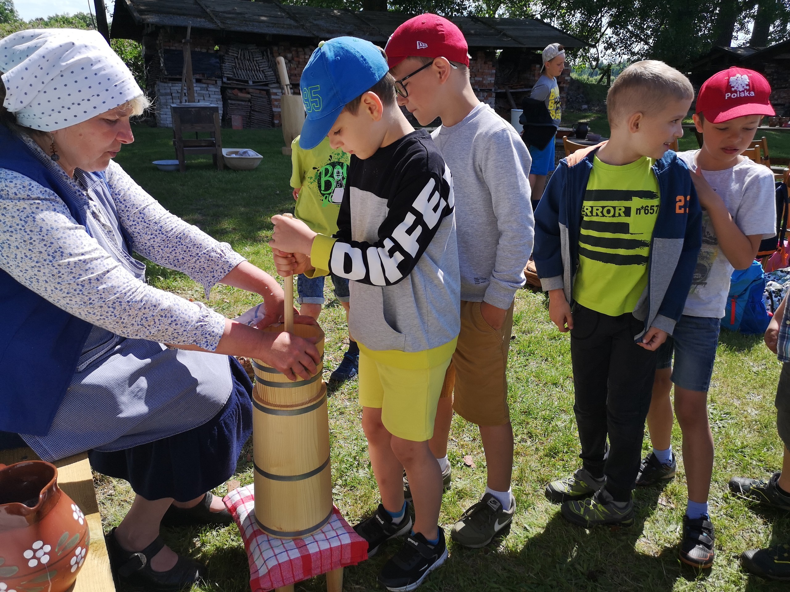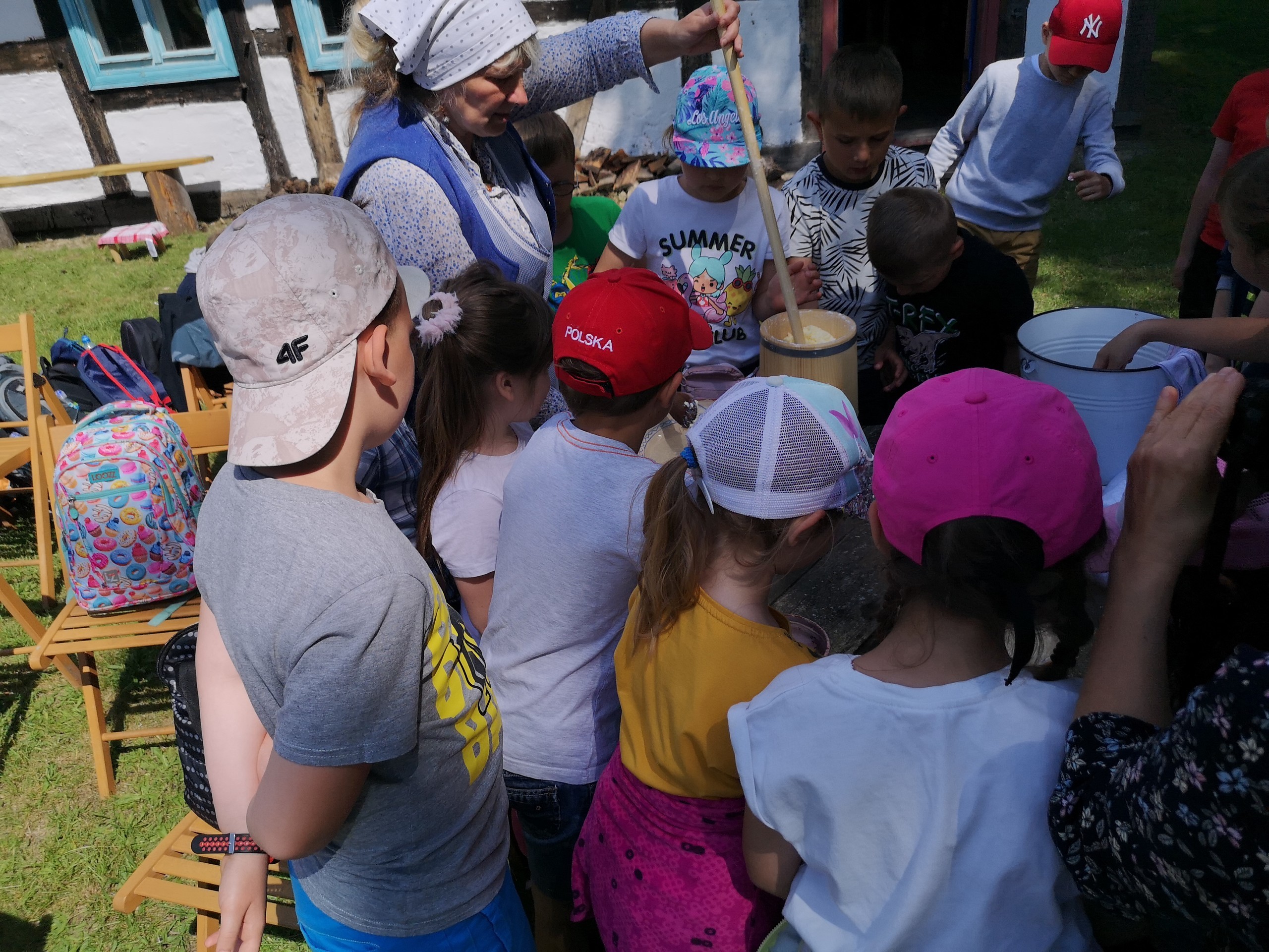 Wycieczka kaszubska klas pierwszych do Kluk grafika