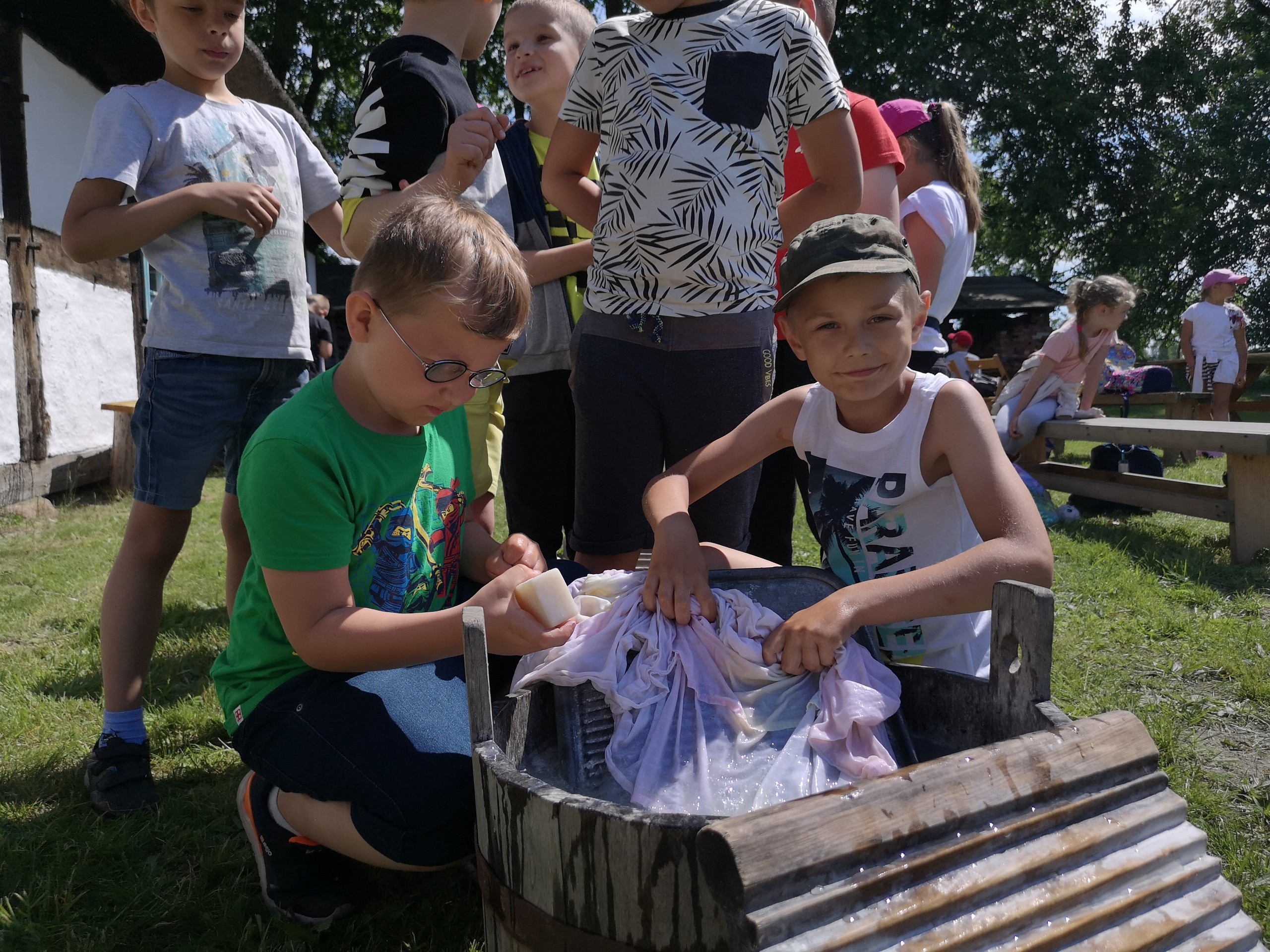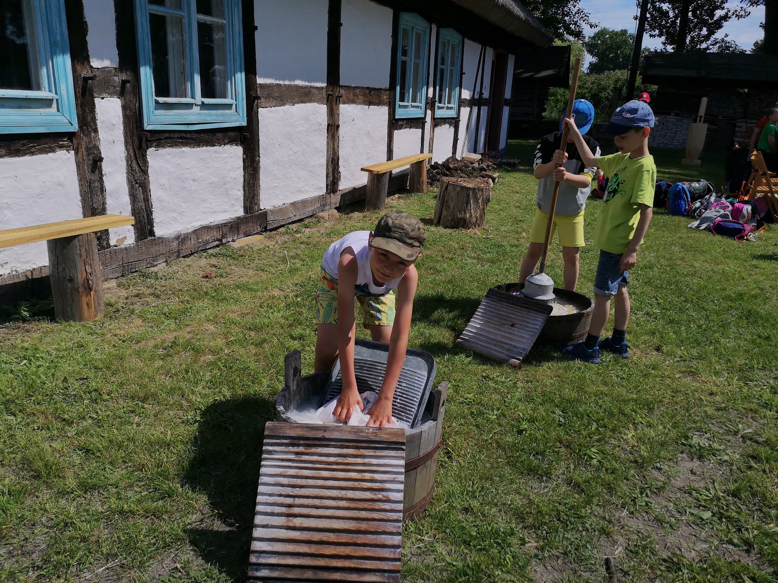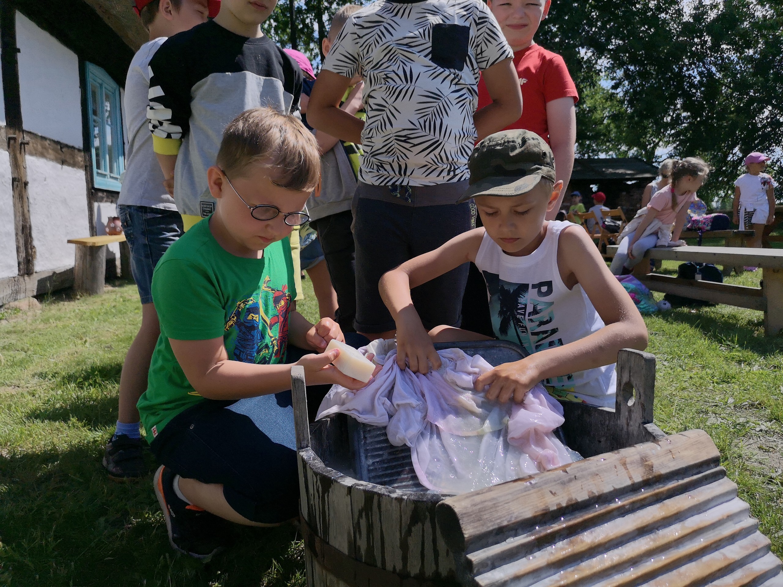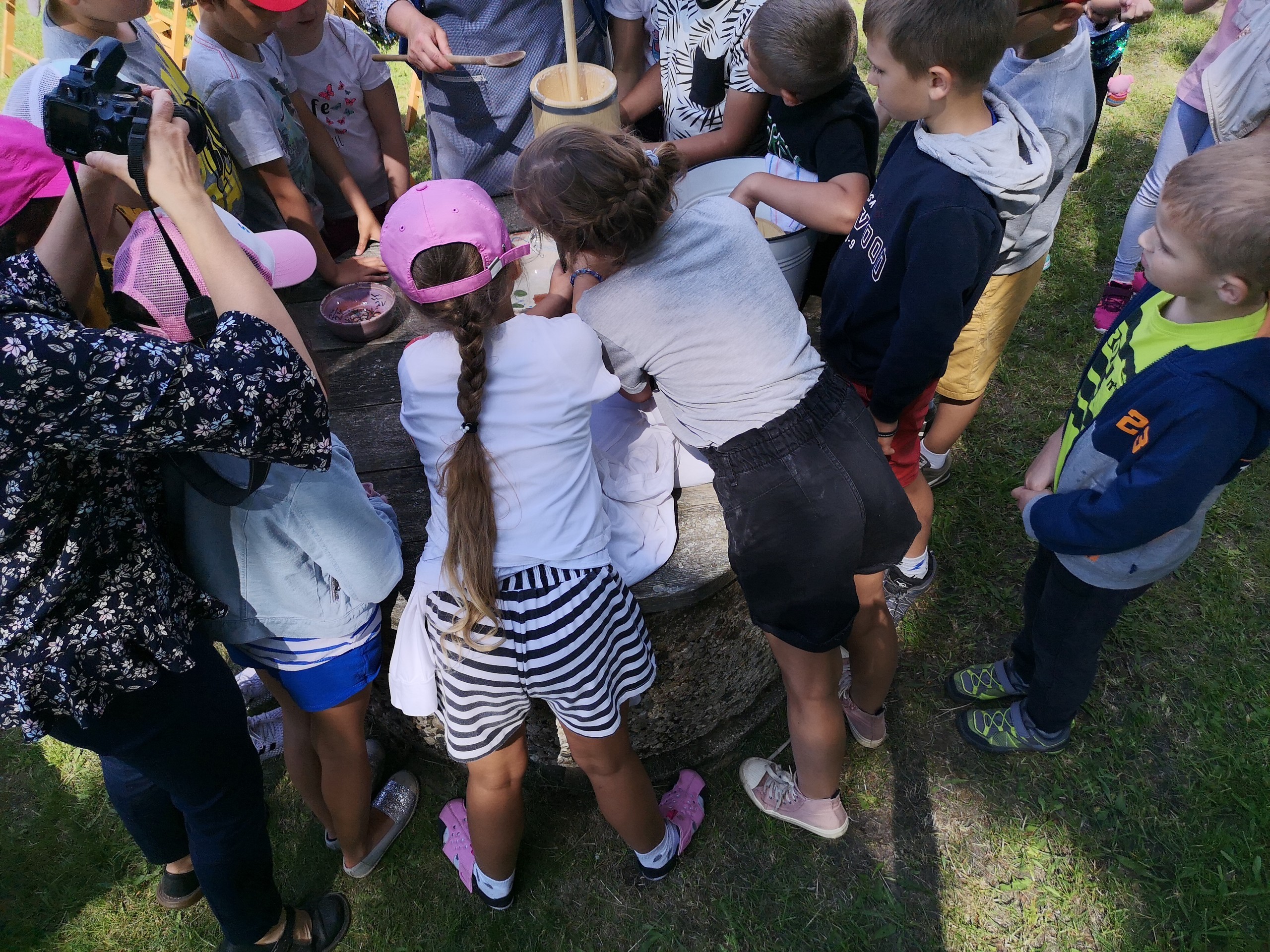 Wycieczka kaszubska klas pierwszych do Kluk grafika