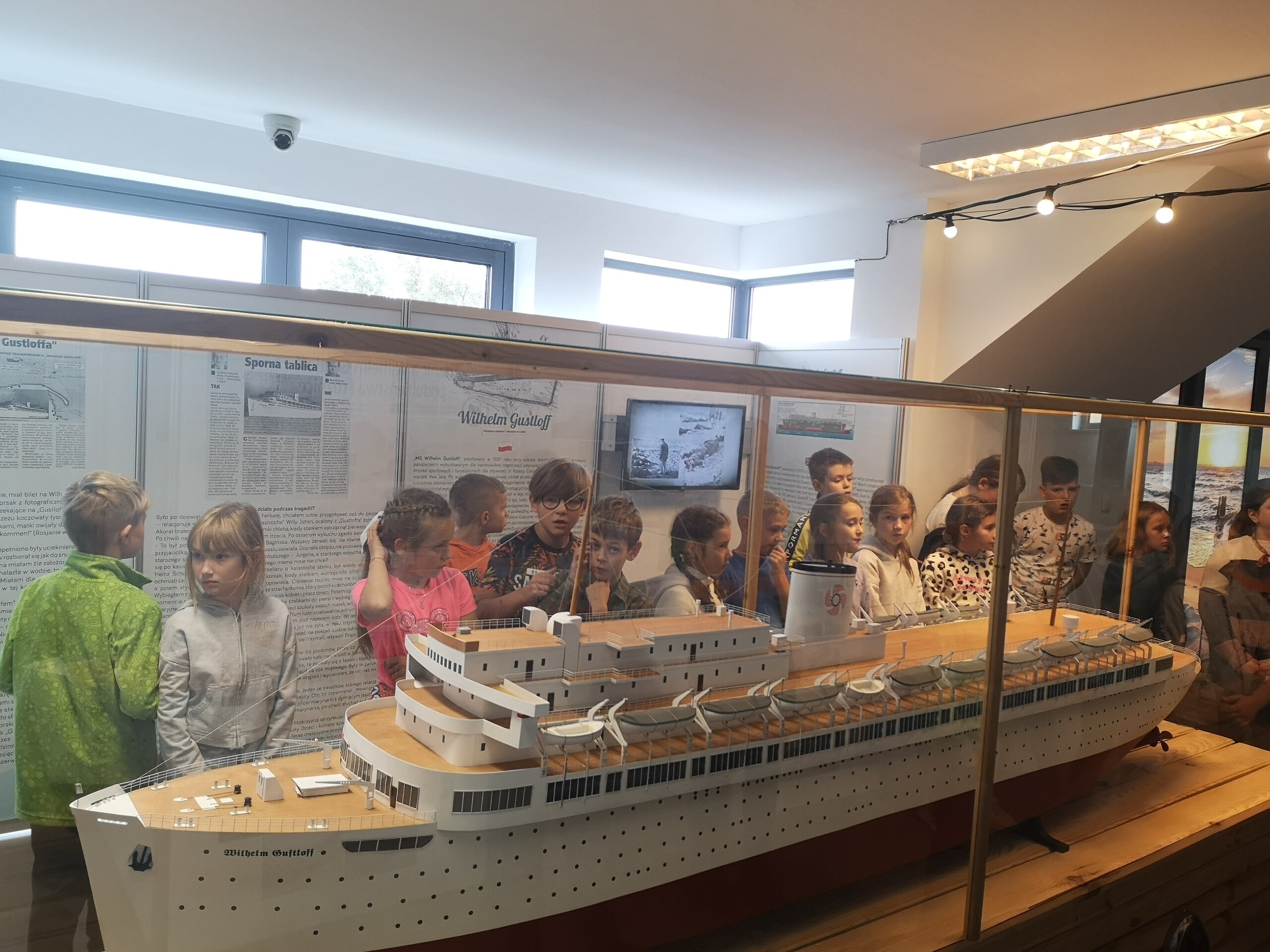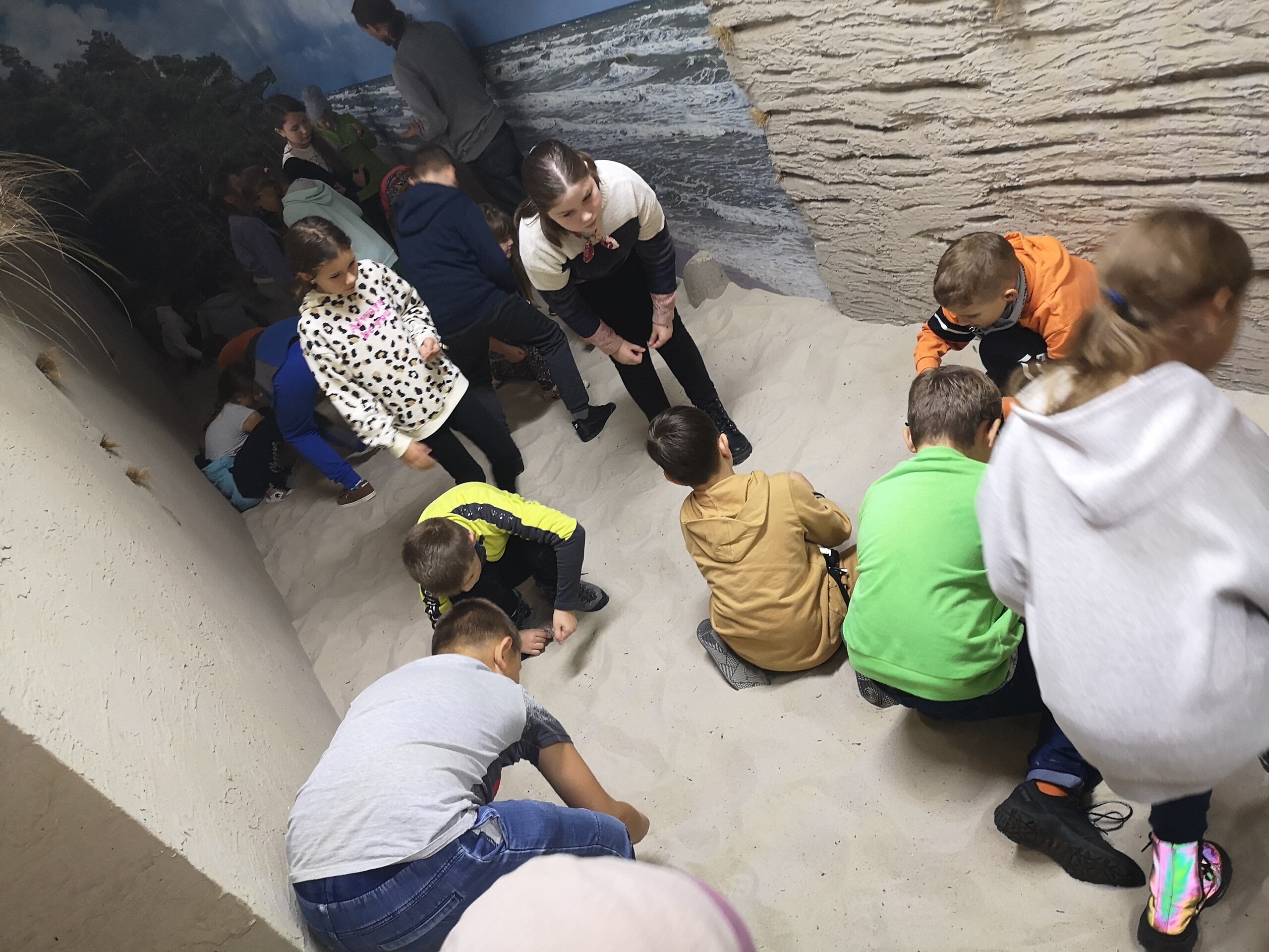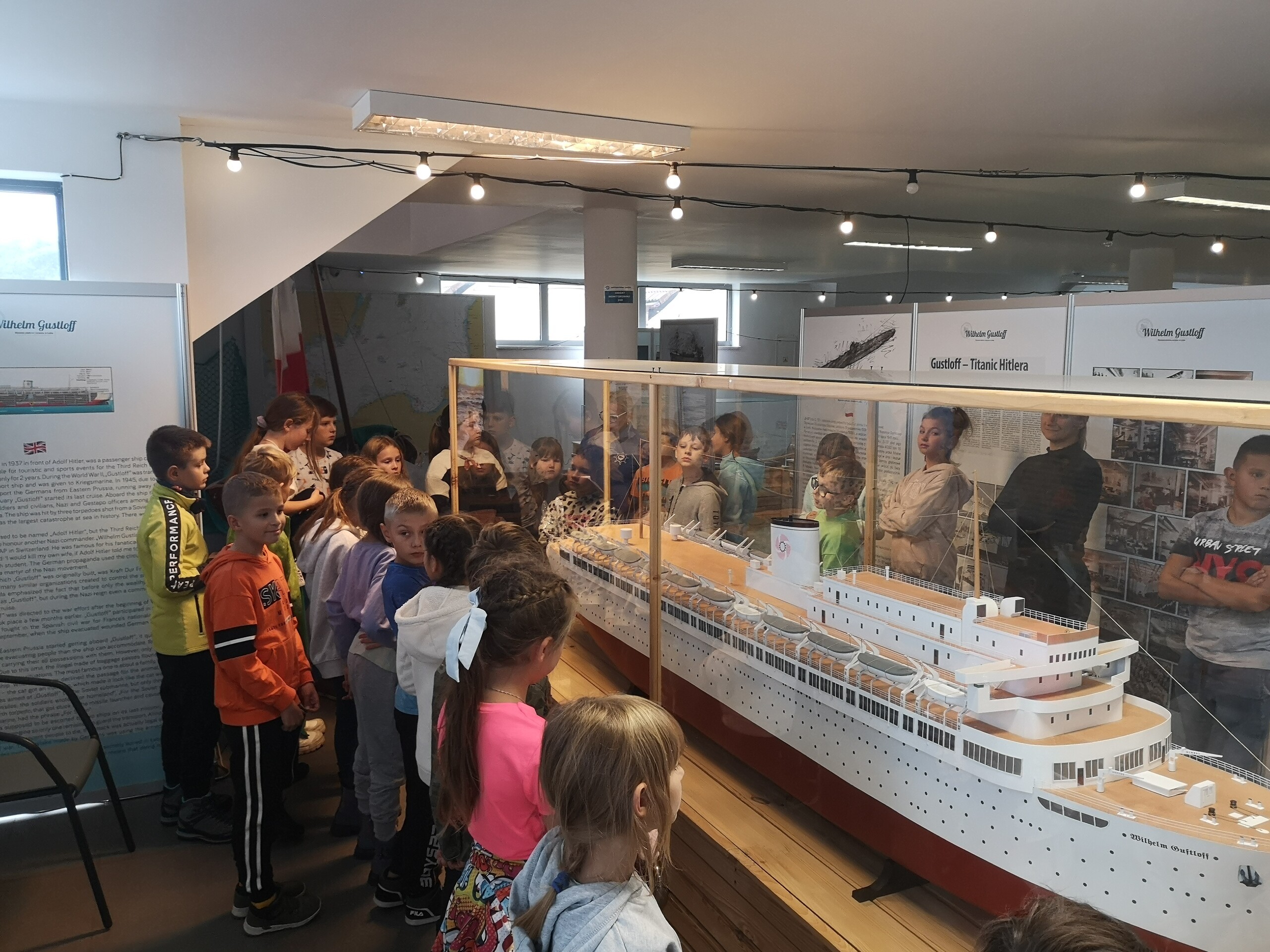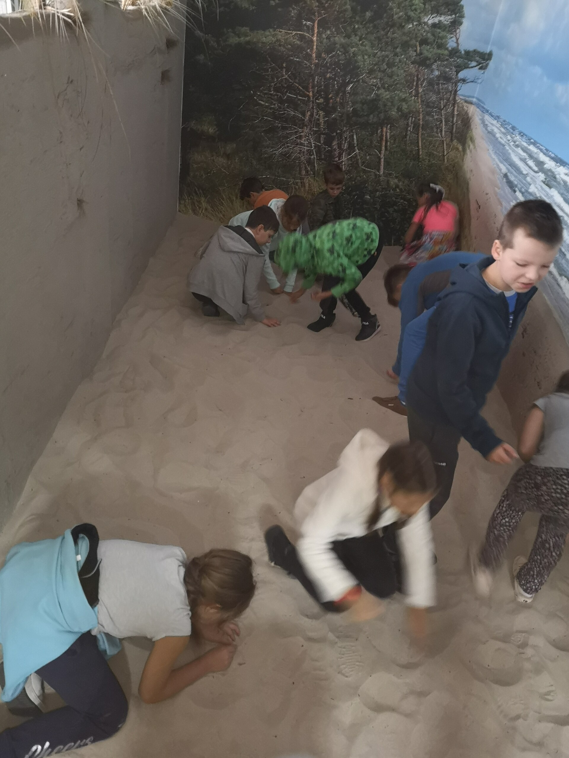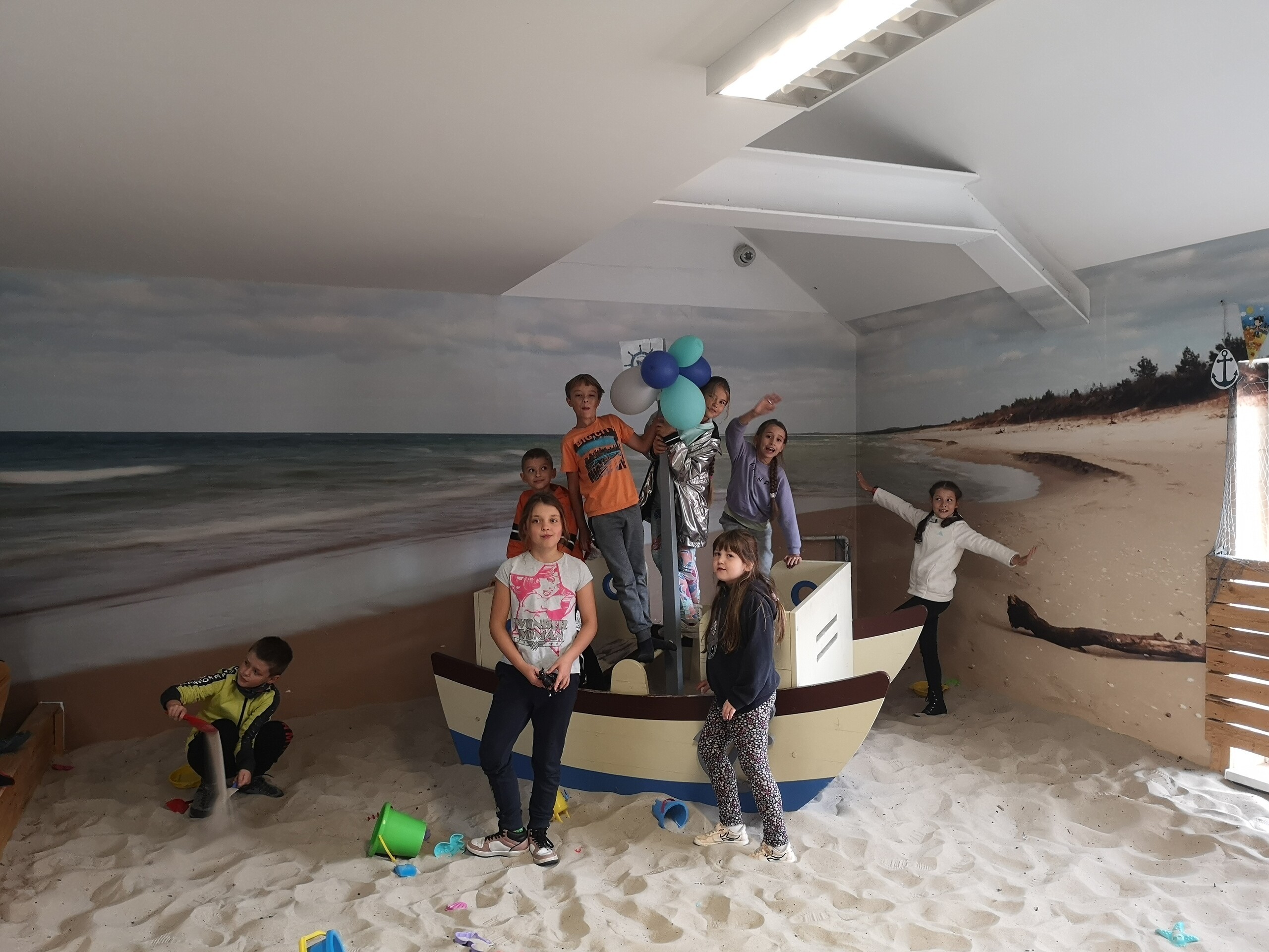 W środę, 28 września, uczniowie klas 2-3 w ramach nauki języka kaszubskiego wybrali się na wycieczkę do Łeby. Zwiedzili z przewodnikiem Krainę Smoków i Muzeum Bursztynu, gdzie pod koniec uczestniczyli w warsztatach "Zbierania bursztynu" i to co sami znaleźli w piasku mogli zabrać na pamiątkę do domu. Następnie dzieci udały się do Muzeum Statków i Okrętów, gdzie po zwiedzaniu klasy trzecie i drugie zmierzyły się w grze "Statki". Następnie uczniowie brali udział w warsztatach "Spotkanie z Morzem Bałtyckim". Na zakończenie każdy miał możliwość sterować łódkami lub też przebrać się i bawić na plaży. Wycieczka była bardzo udana.