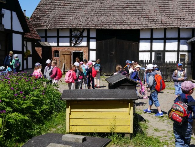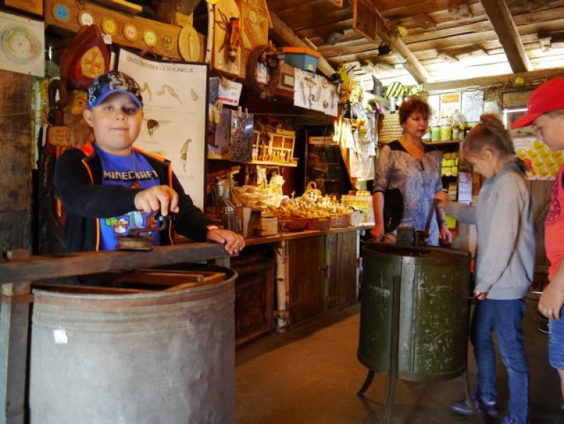 6 czerwca 2016r. uczniowie klas pierwszych i drugich wybrali się na wycieczkę do Krzemienicy, która jest, zaraz po Swołowie jedną z najciekawszych i najlepiej zachowanych szachulcowych wsi w regionie słupskim. Gospodarstwo, w którego sadzie znajduje się pasieka „Wędrowna Barć”, istnieje od 1848 roku. Główną atrakcją gospodarstwa była „Sala Pszczelarska”, gdzie dzieci zobaczyły szklany ul, w którym widać było, jak pracowały pszczoły. W Sali znajdowała się ekspozycja dawniej używanego sprzętu pasiecznego. Uczniowie wysłuchali prelekcji o pszczelarstwie, obserwowali pszczelą rodzinę, poznali ich zwyczaje oraz degustowali różnego rodzaju miody. Wycieczka dostarczyła również uczniom wielu informacji o pracy pszczelarza.