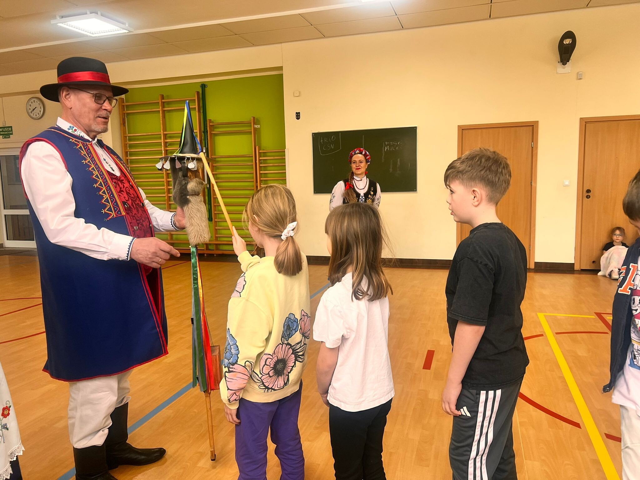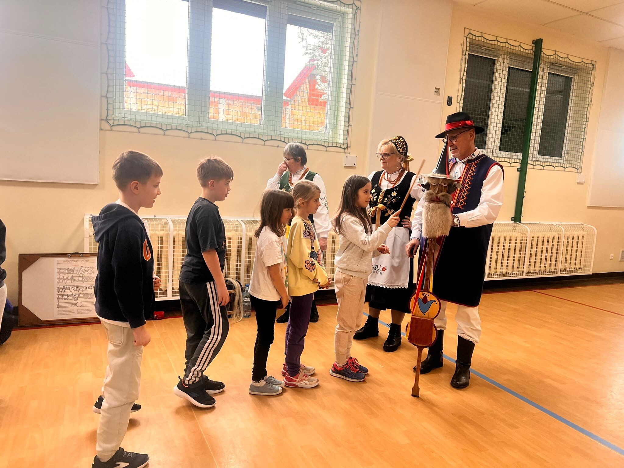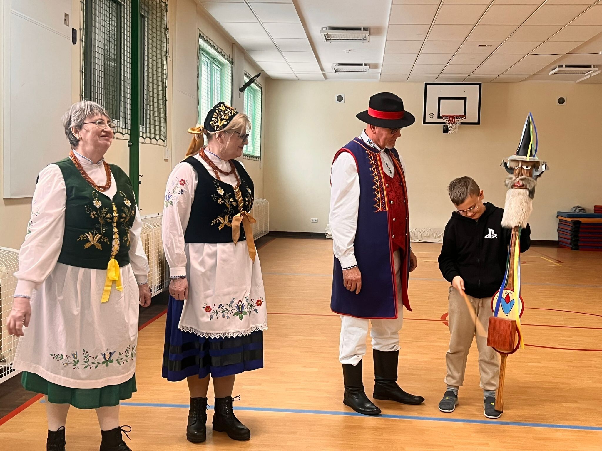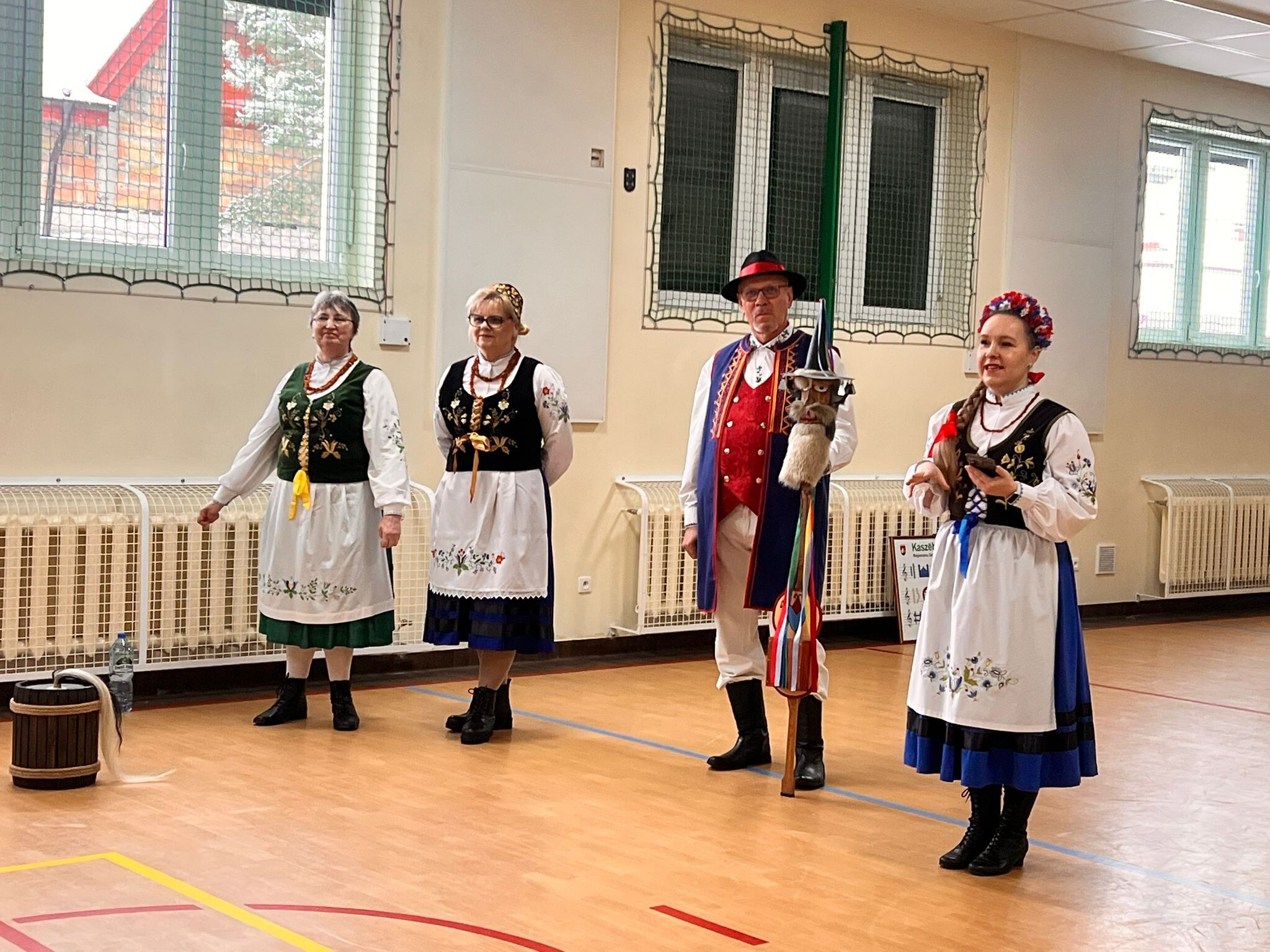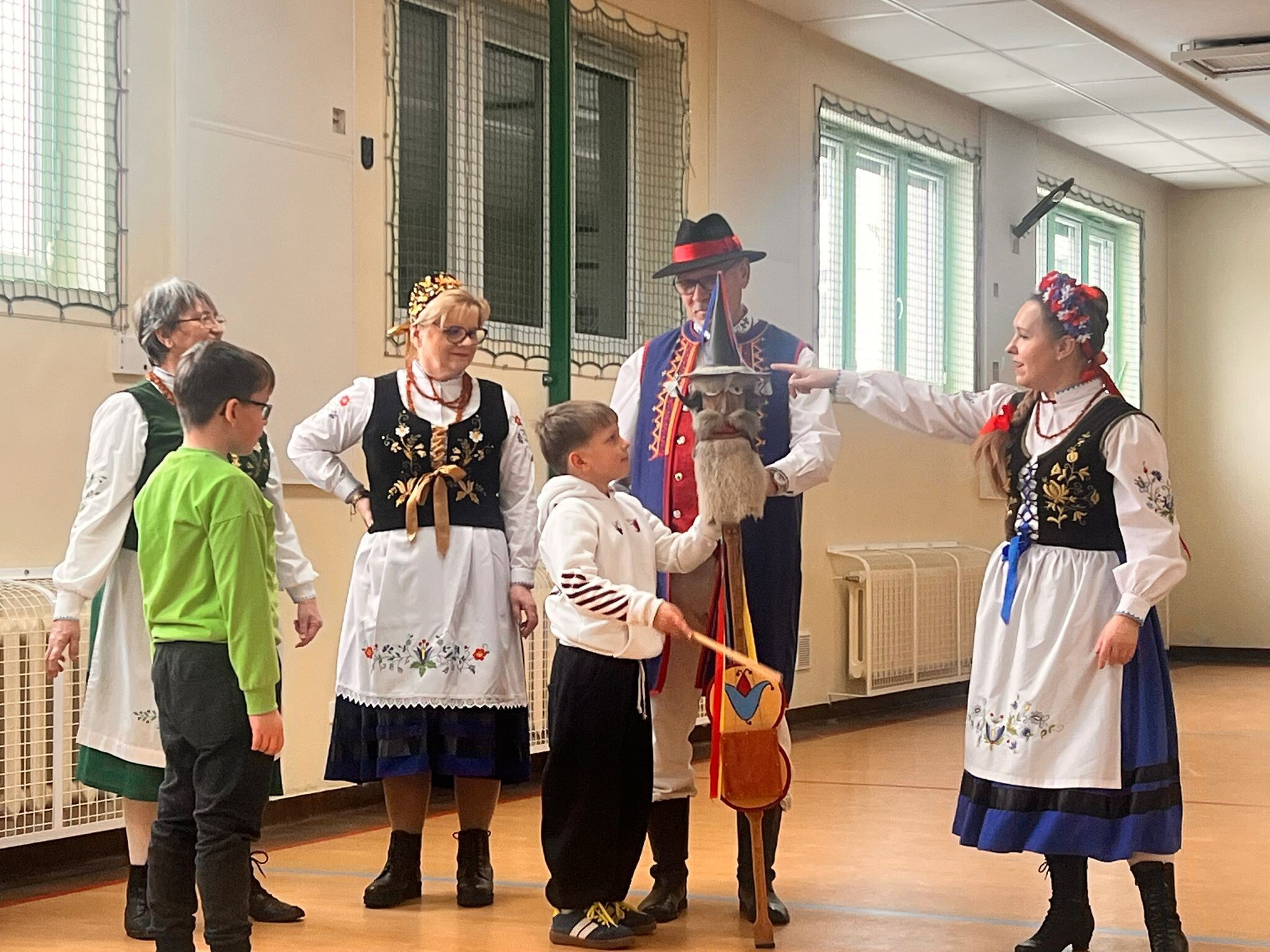 pozytywnych emocji – tańczy się po owocnym dniu pracy, podczas wesel i zabaw karnawałowych. Zapoznali nas z kaszubskimi instrumentami m.in. diabelskimi skrzypcami i burczybasem. Zaprosili nas również do wspólnej zabawy i nauki tańca "Klepôcz".