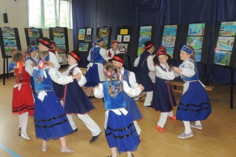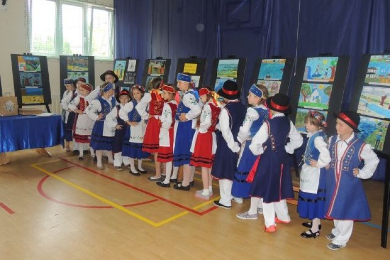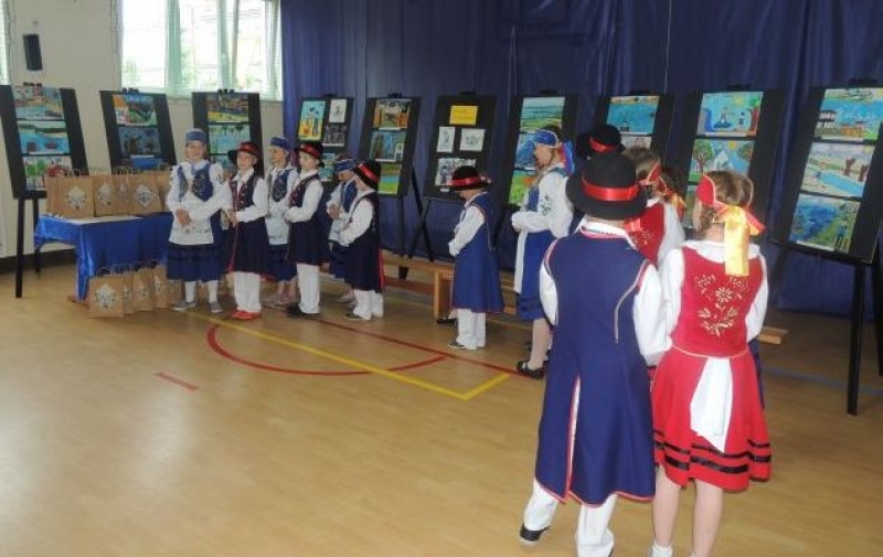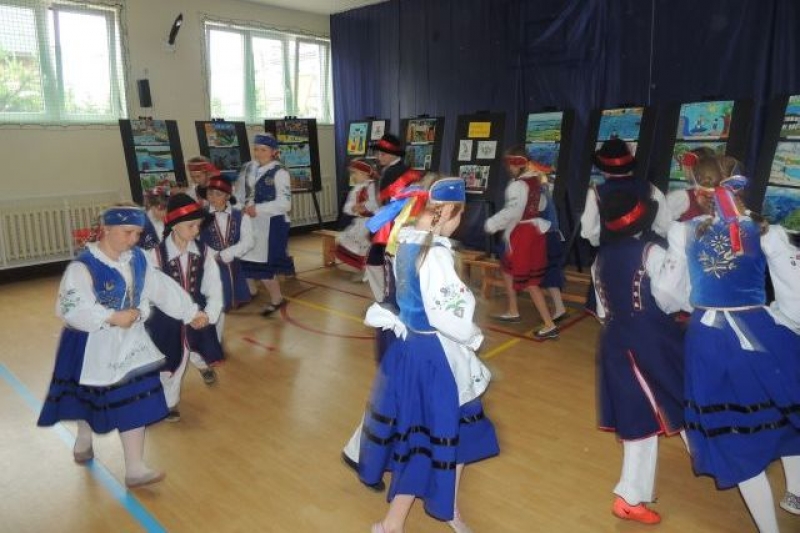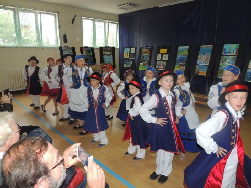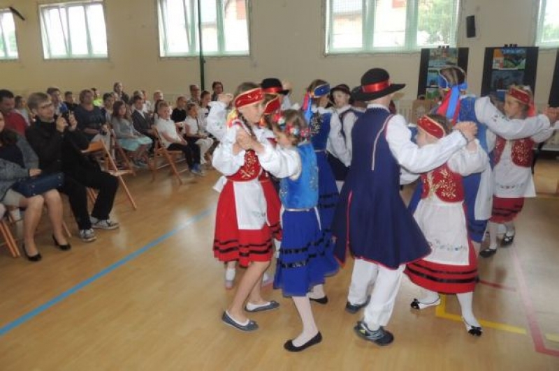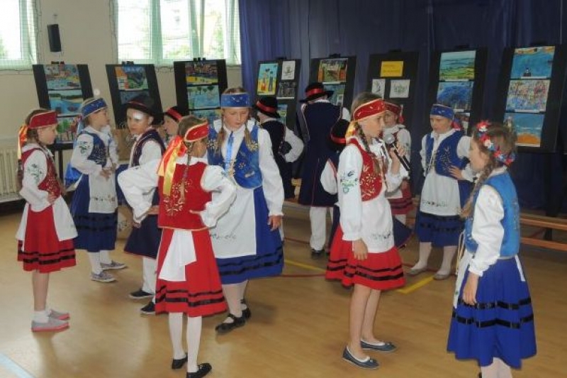 Uroczystość rozstrzygnięcia w naszej szkole IV Powiatowego Konkursu Plastycznego ,,Kaszuby jak malowane” była okazją do zaprezentowania montażu wokalno – tanecznego przez nasz szkolny zespół taneczny ,,Lęborskie Słoneczka”,specjalizujący się w tańcach kaszubskich. Tancerze wspaniale zatańczyli i zaśpiewali przygotowany układ. Ponadto wiedli prym podczas wspólnego śpiewania piosenki kaszubskiej ,,Kaszuby wołają nas”. Szczerze dziękujemy dzieciom za zapał do tańca i stałą gotowość do prezentowania swoich umiejętności artystycznych.