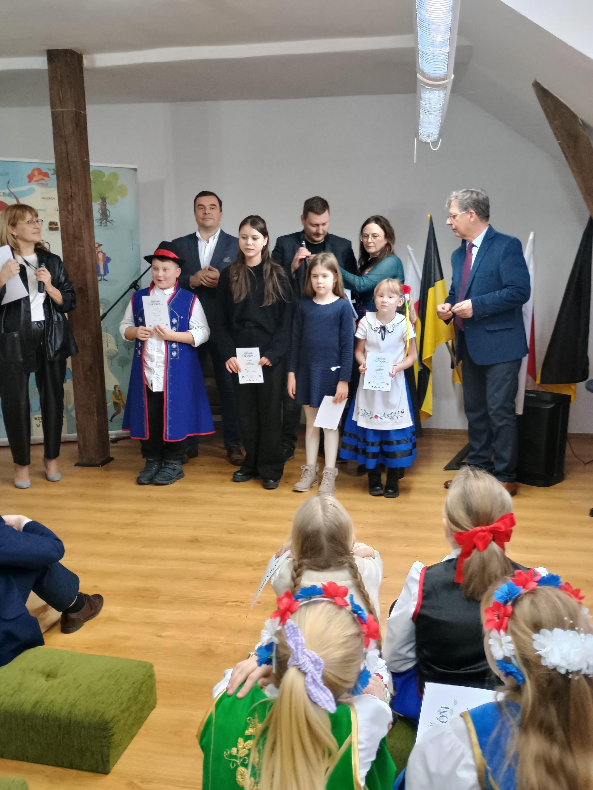 Karolina Fijałkowska z klasy 3A SJSP przeczytała fragment opowiadania "Zelony pùjk" Danuty Stanulewicz i otrzymała podziękowanie za bardzo dobre przygotowanie i udział w kategorii uczniów kl. 3-4.