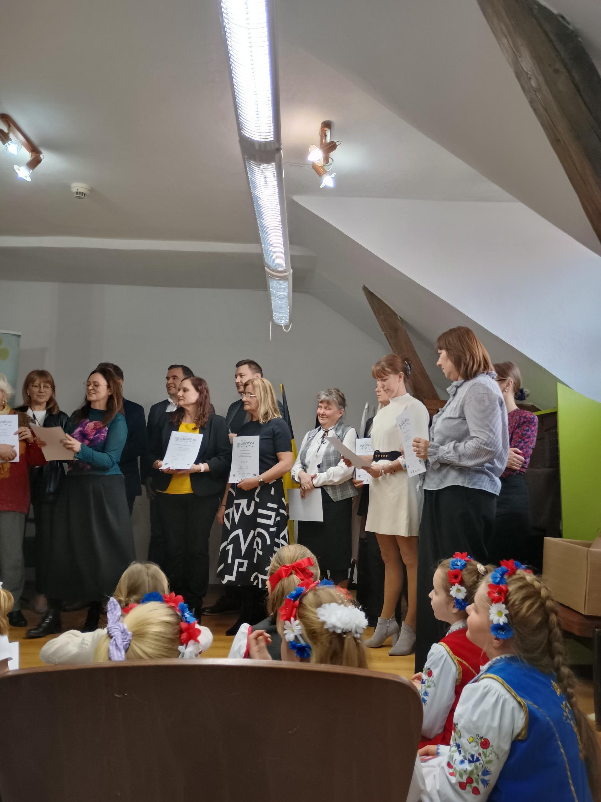 Hanna Pawłowska z klasy 2 SJSP zaprezentowała wiersz "Jeséń" Jana Trepczyka i uzyskała wyróżnienie w kategorii uczniów kl. 1-2.