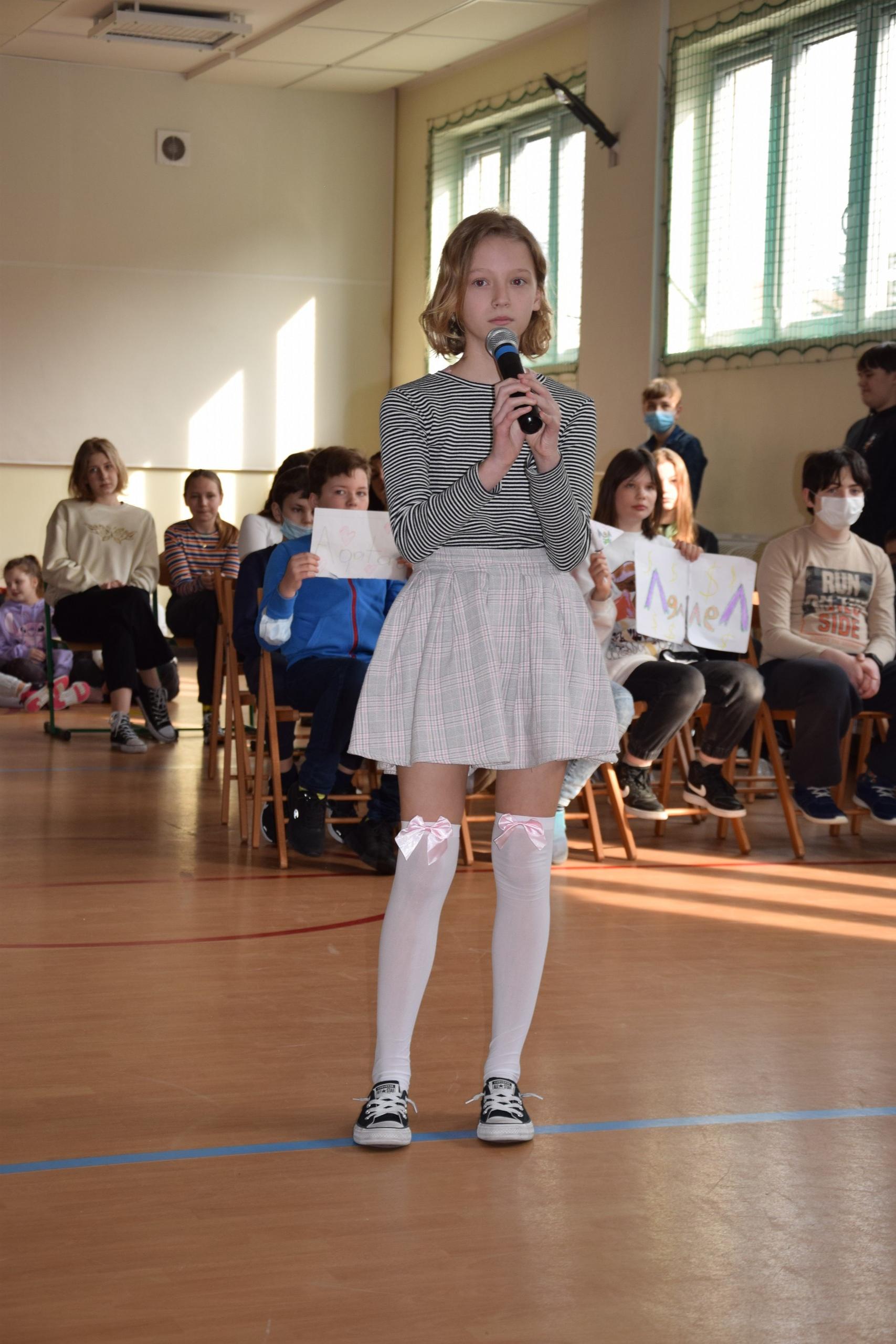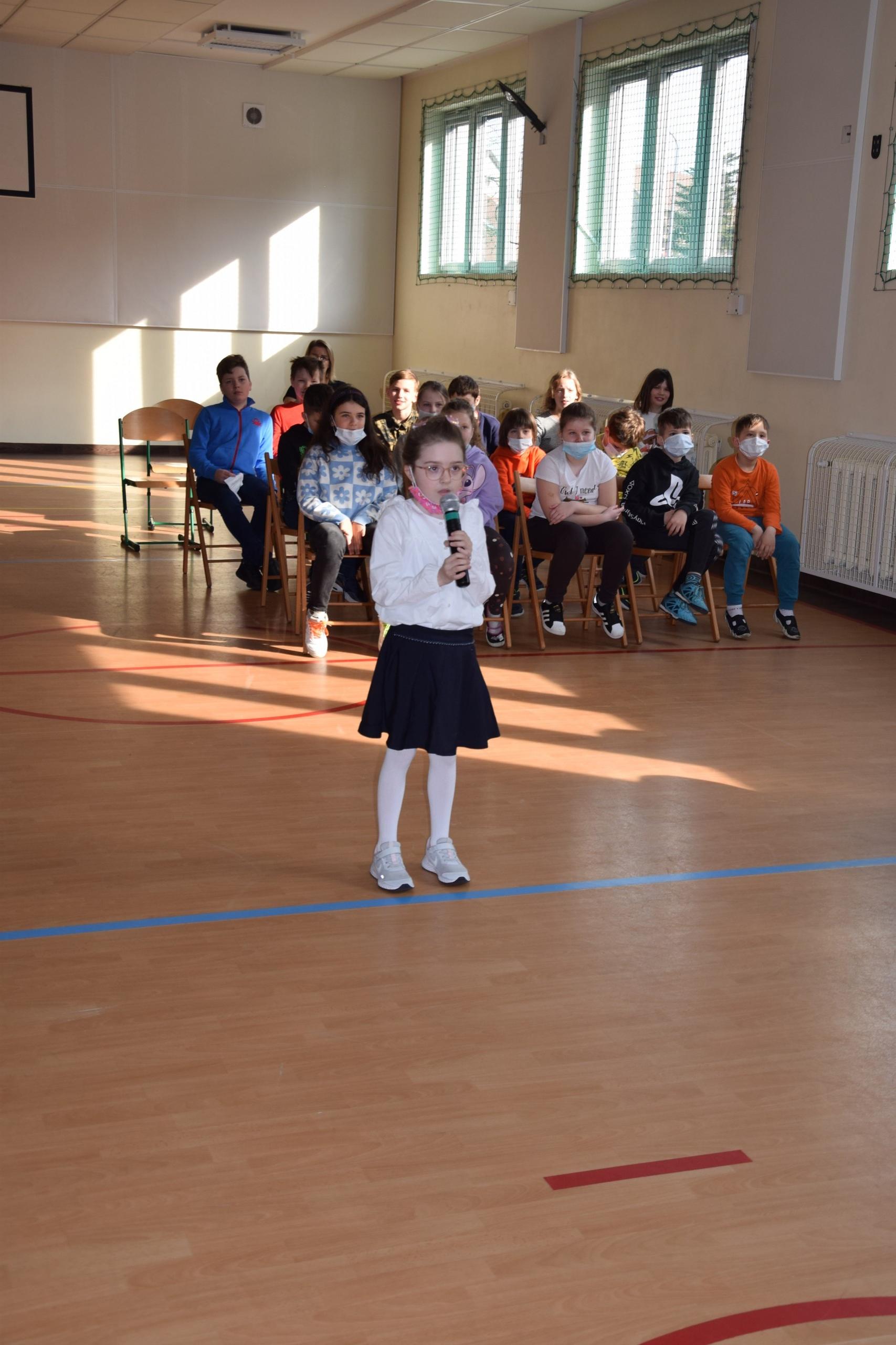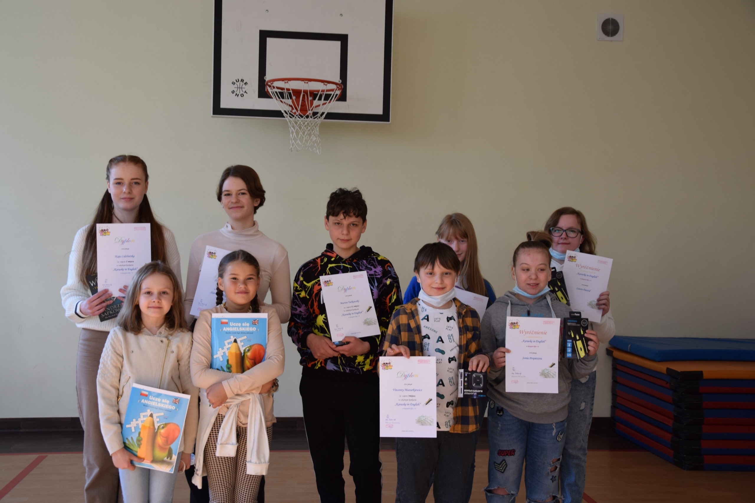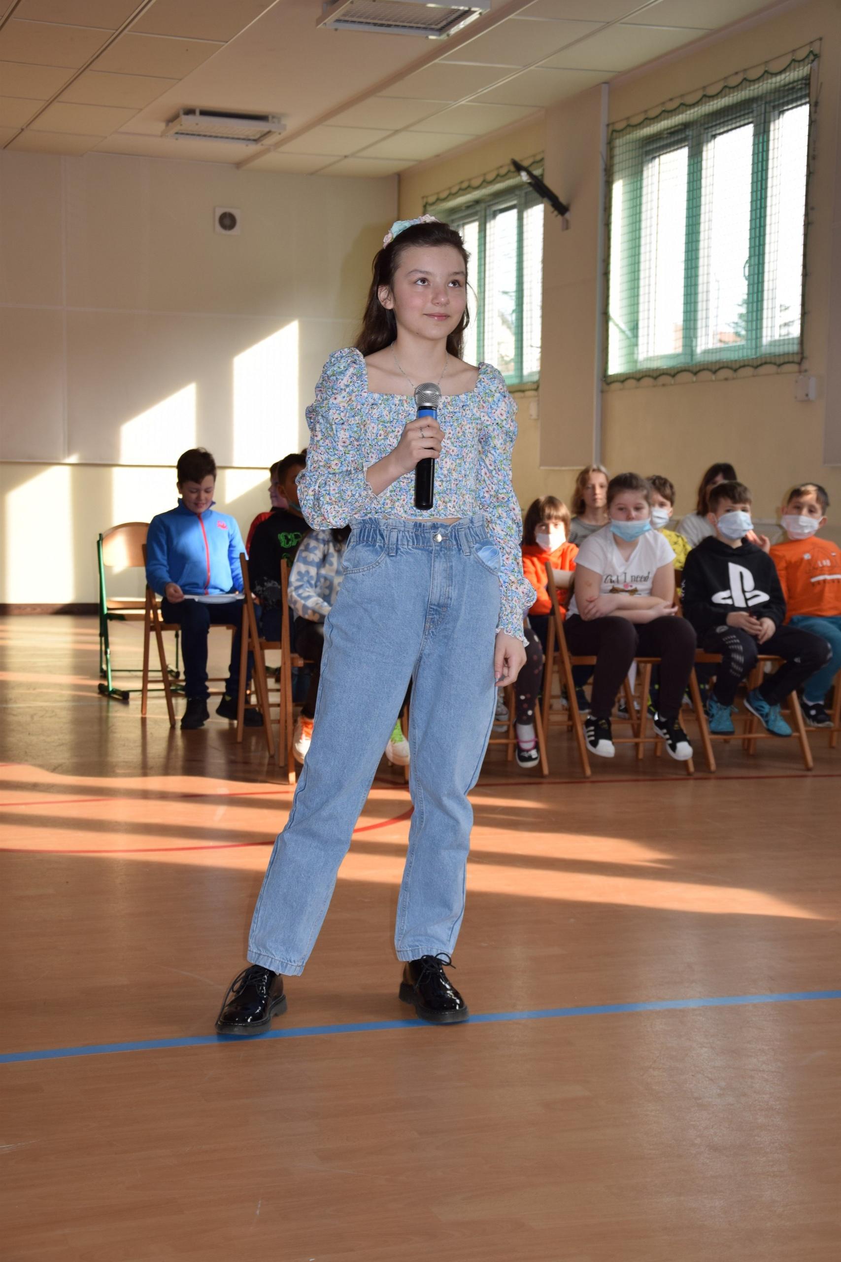 Dnia 18. 03. 2022 r. w naszej szkole odbył się Szkolny Konkurs Karaoke in English w dwóch kategoriach : klasy 1-4 oraz 5-8. Uczestnicy prezentowali przed publicznością piosenki w języku angielskim. Jury w składzie Pani Anna Mielewczyk, P. Dorota Richert, P. Adrianna Barańska oraz Pan Donald Robson oceniali  znajomość utworu, wymowę w języku angielskim oraz ogólne wrażenie artystyczne. Oto wyniki konkursu: