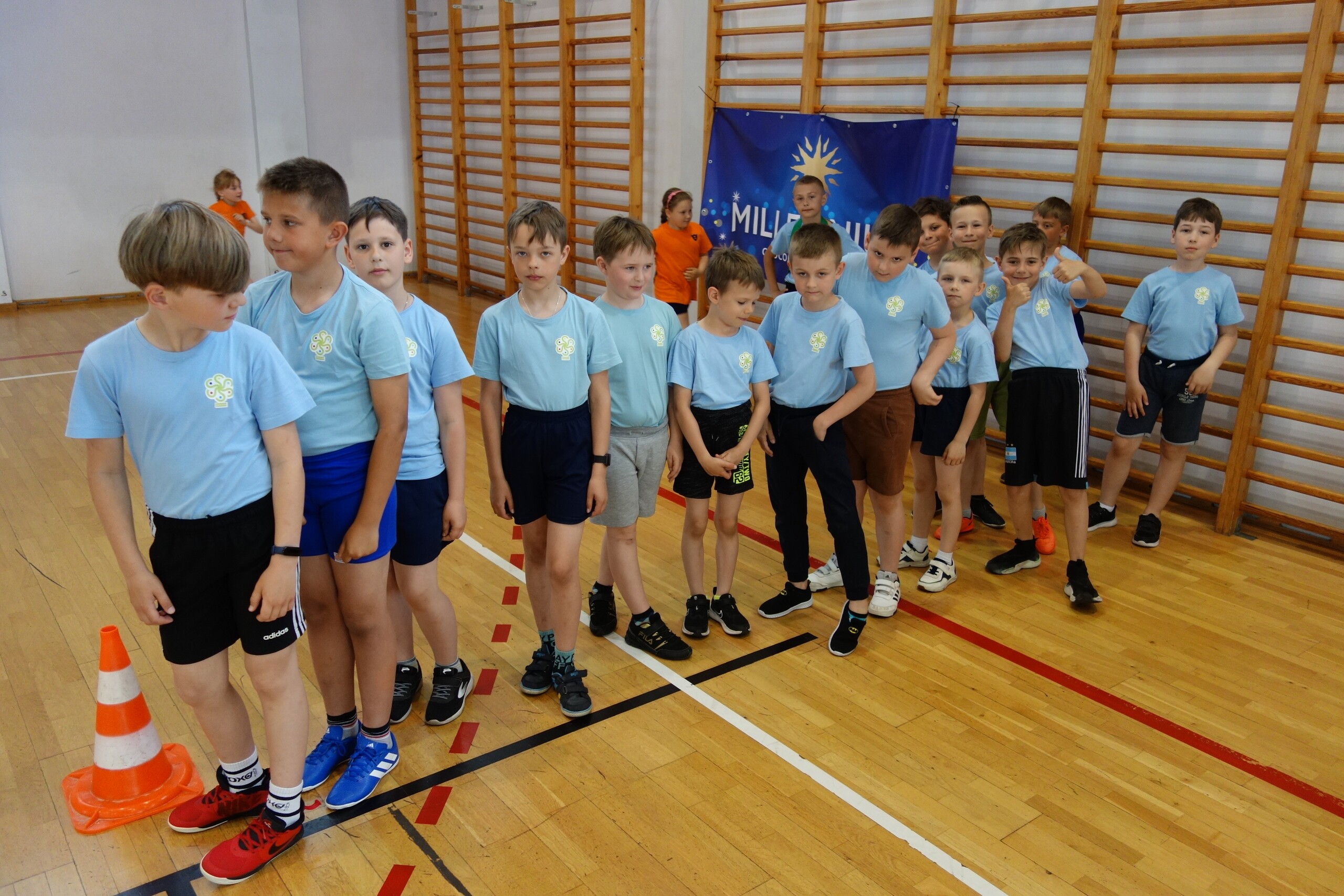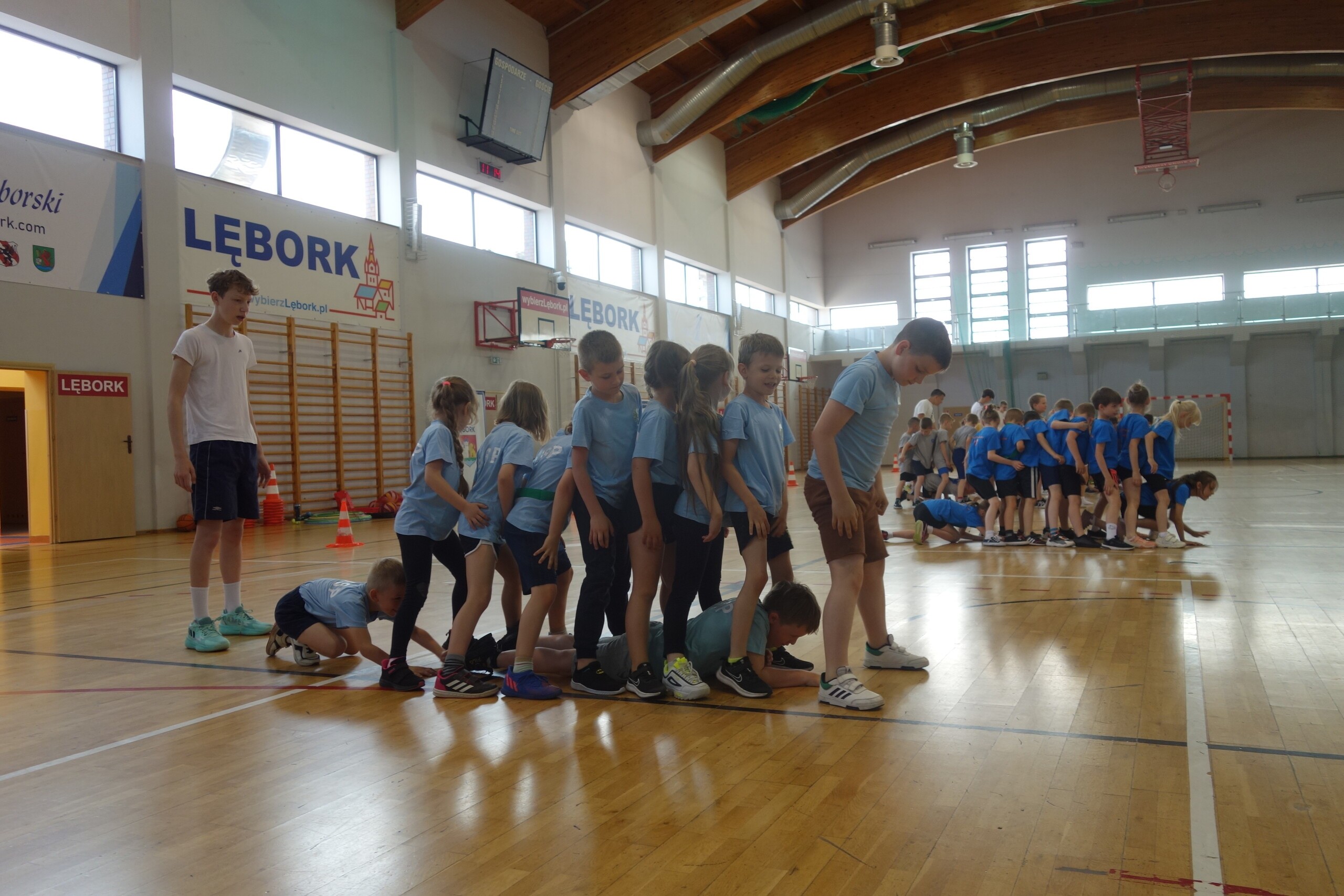 W piątek 26 maja nasi najmłodsi sportowcy z klas I, II i III wzięli udział w Konkursie Sportowym dla Szkół Podstawowych pod hasłem „Kto z nas lepiej i prędzej”. Rywalizowali oni w różnych konkurencjach sportowo-zabawowych ze wszystkimi szkołami podstawowymi z Lęborka. Reprezentacja każdej szkoły składała się z 30 uczniów od klasy I do III. Mali sportowcy starli się jak najlepiej wykonać wyznaczone zadanie, które poznawali dopiero tuż przez startem. Kilkukrotnie zajmowaliśmy II i III miejsca w poszczególnych konkurencjach, ale w ostatecznej klasyfikacji nie było wygranych, ani przegranych. Wszystkie szkoły zajęły pierwsze miejsce, bo przecież najważniejsza była dobra zabawa w duchu sportowej rywalizacji. Szkoły otrzymały pamiątkowe statuetki i dyplom, a uczniowie piękne medale.