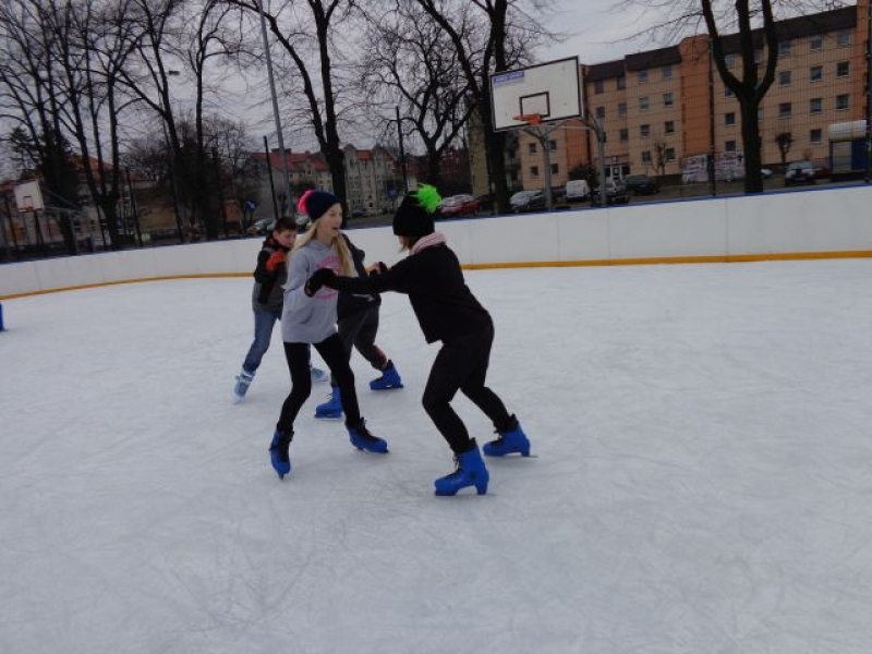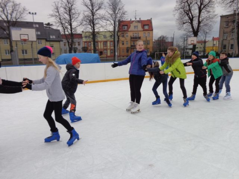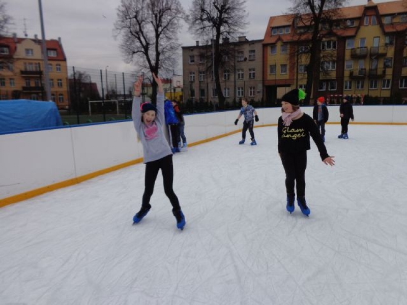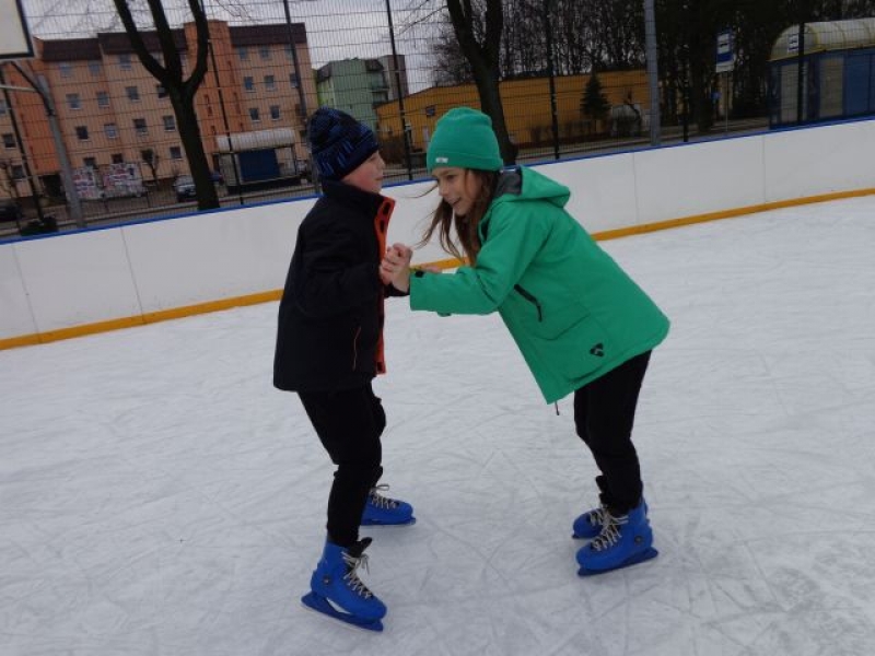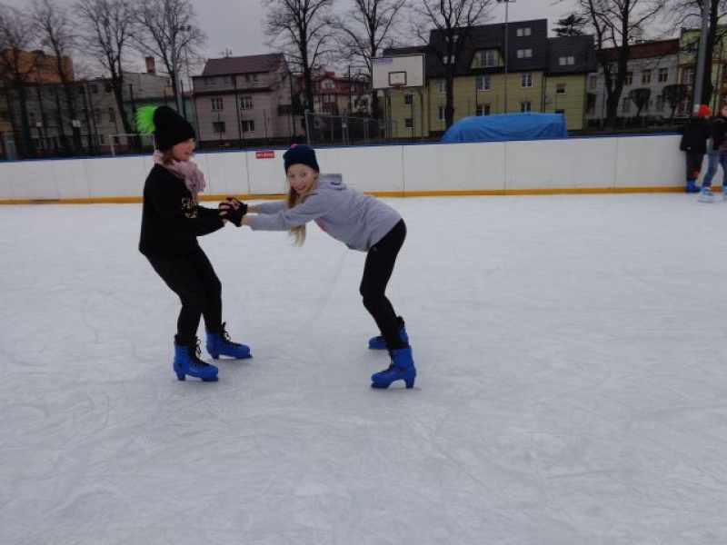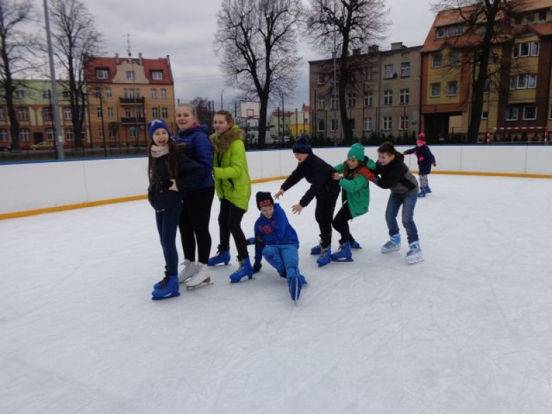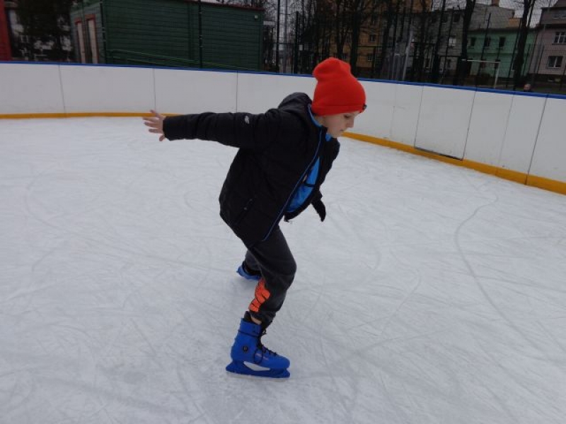 Już po raz drugi klasa V czwartkową lekcję wf-u spędziła na lodowisku, doskonaląc jazdę na łyżwach. Niektórzy radzą sobie z tą trudną sztuką doskonale i próbują coraz trudniejszych elementów jazdy, takich jak przekładanka przodem, jazda tyłem czy proste piruety.
