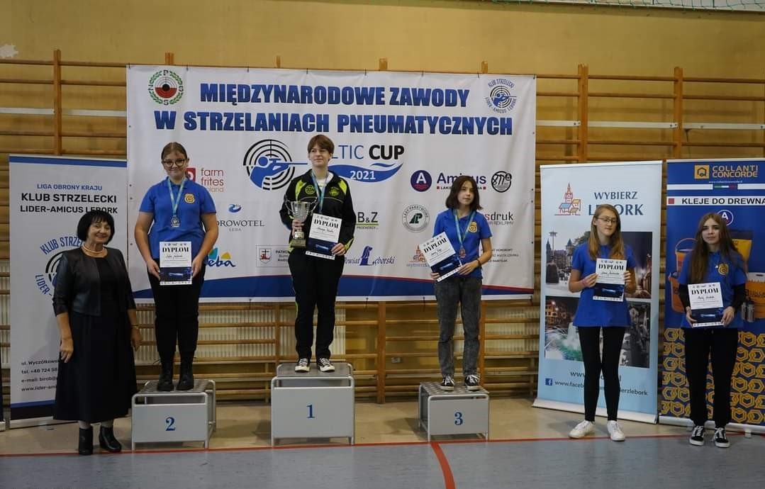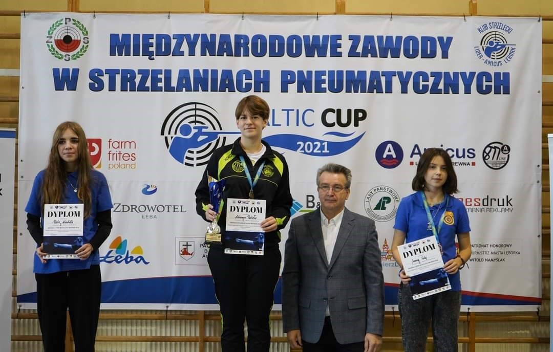 Bardzo wysoką formę potwierdziła nasza uczennica Adrianna Pakieła, która dwukrotnie stawała na najwyższym stopniu podium, zdobywając w pistolecie pneumatycznym młodziczek Puchar Bałtyku wynikiem 367 pkt. i Puchar Amicusa wynikiem 365 pkt.