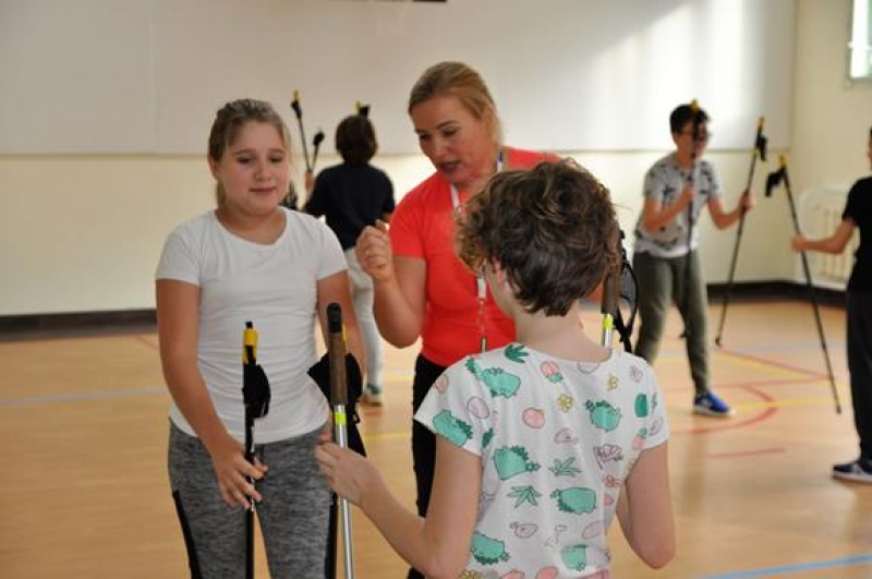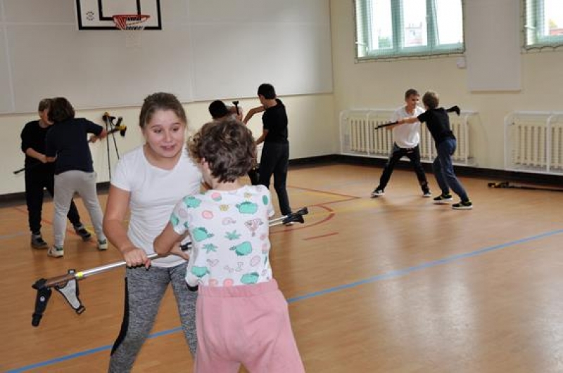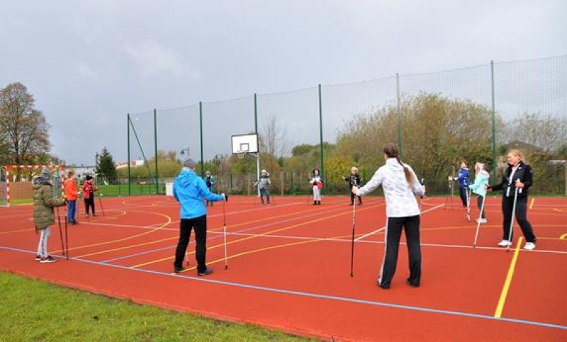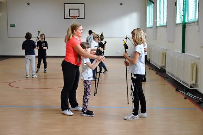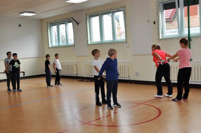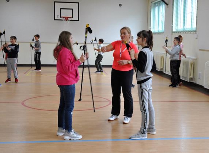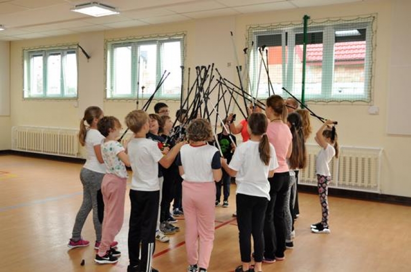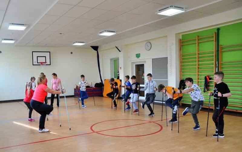 28 października odbyło się w naszej szkole spotkanie z panią Aleksandrą Czeczott-Szymańską, Prezes Stowarzyszenia Nordic Walking „Orły” Wicko. Uczniowie klas 5a i 5b wzięli udział w przygotowanym i przeprowadzonym przez naszego Gościa profesjonalnym treningu. Po kilku słowach wstępu dotyczących historii, tego coraz bardziej popularnego w naszym kraju sportu, wywodzącego się z Finlandii, nastąpiło prawdziwe przywitanie nordic walkerów i rozgrzewka, która w zabawny sposób oswoiła naszych uczniów z kijkami. Uczestnicy treningu z pełnym zaangażowaniem wykonywali kolejne ćwiczenia. Spotkanie zakończono drobnym słodkim poczęstunkiem oraz niespodzianką przygotowaną przez panią Olę – 2 uczniów wylosowanych z każdej z klas 5 otrzymało zestaw kijków do Nordic Walking! W podziękowaniu za trening, dzieci wręczyły prowadzącej plakat przygotowany na lekcji języka angielskiego. Okazało się, że zgodnie z hasłem dzisiejszego spotkania: „A sound mind in a sound body!” (czyli „W zdrowym ciele, zdrowy duch!”), sport i nauka języka angielskiego rzeczywiście mogą iść w parze!