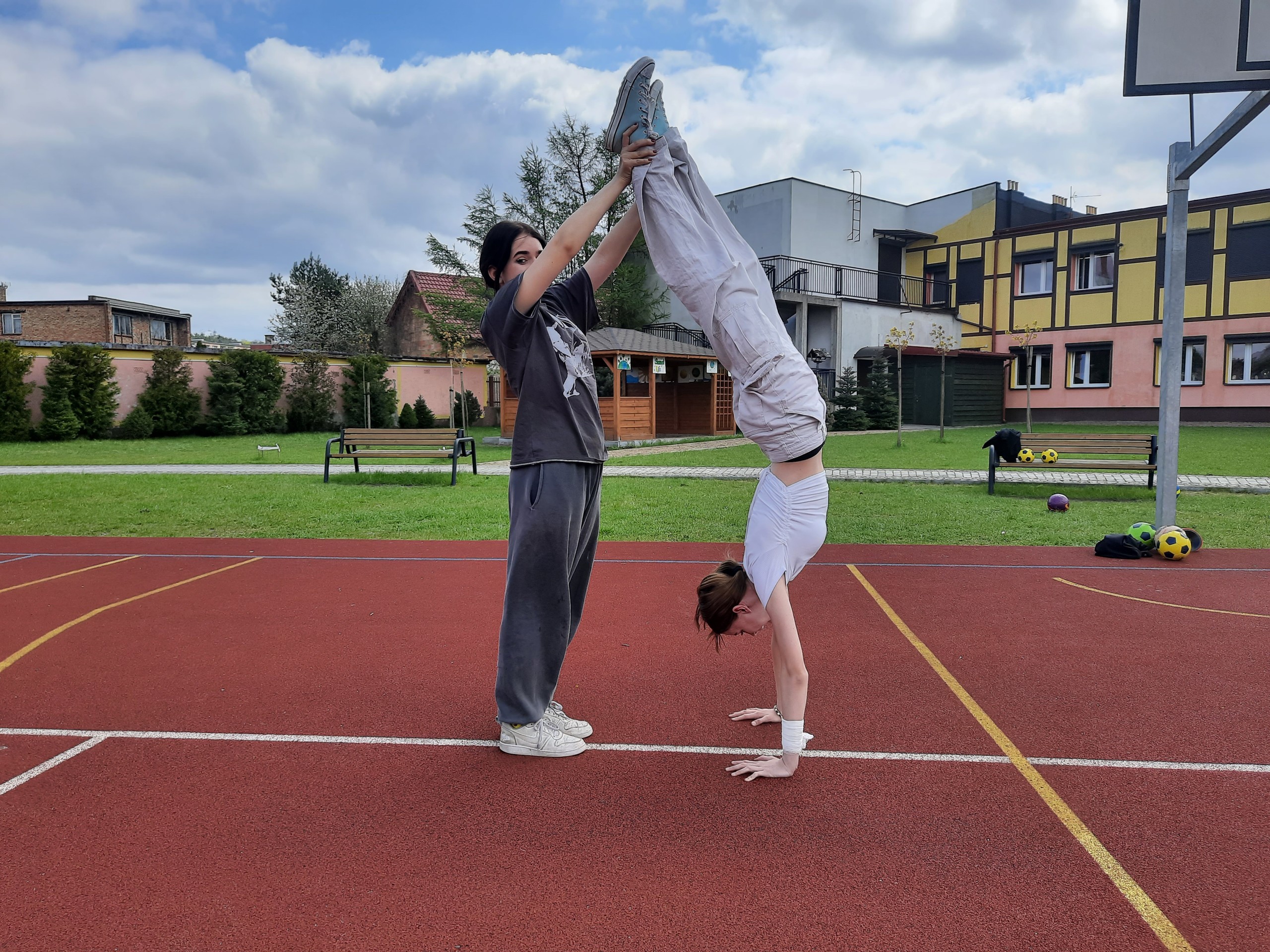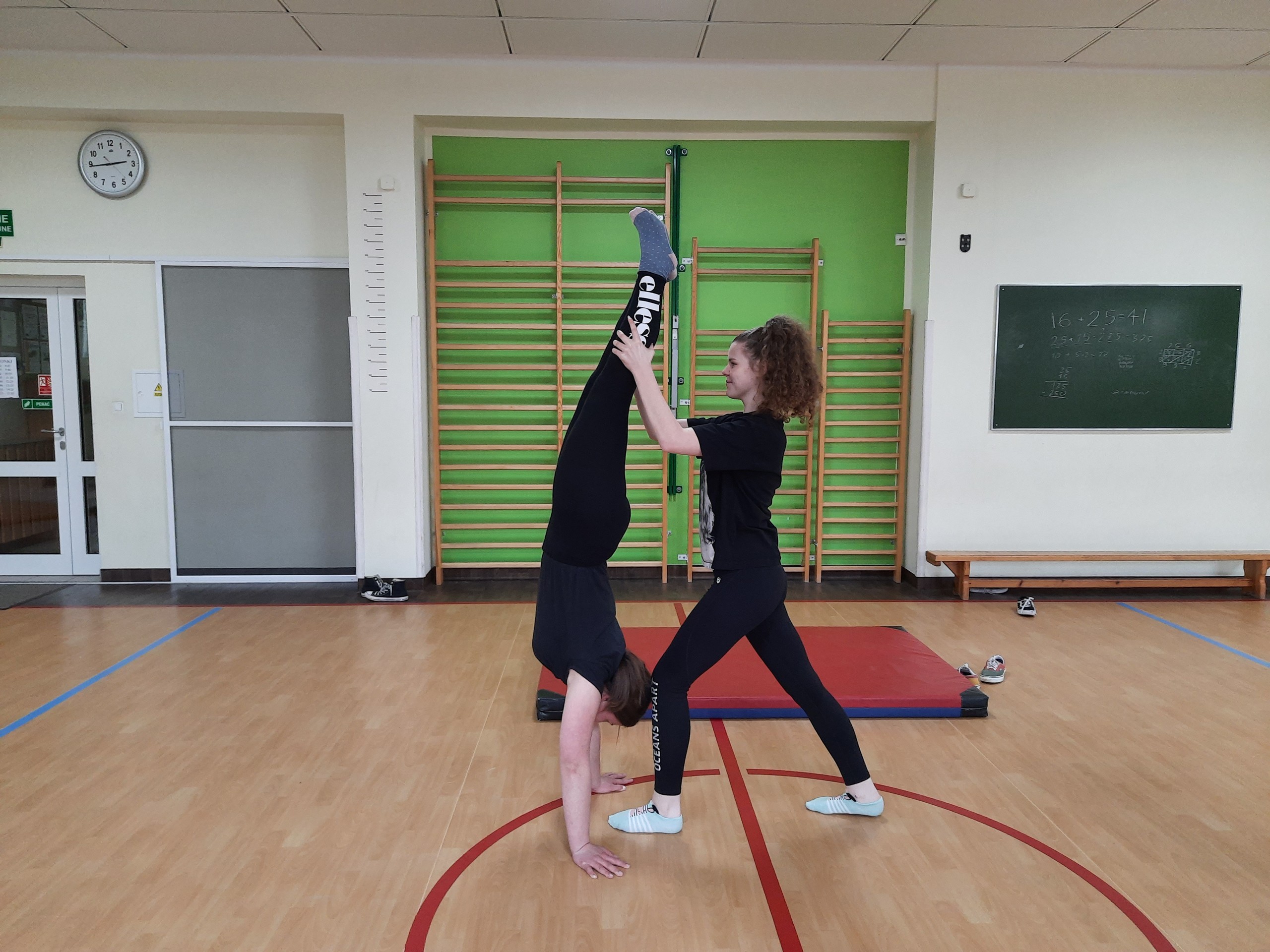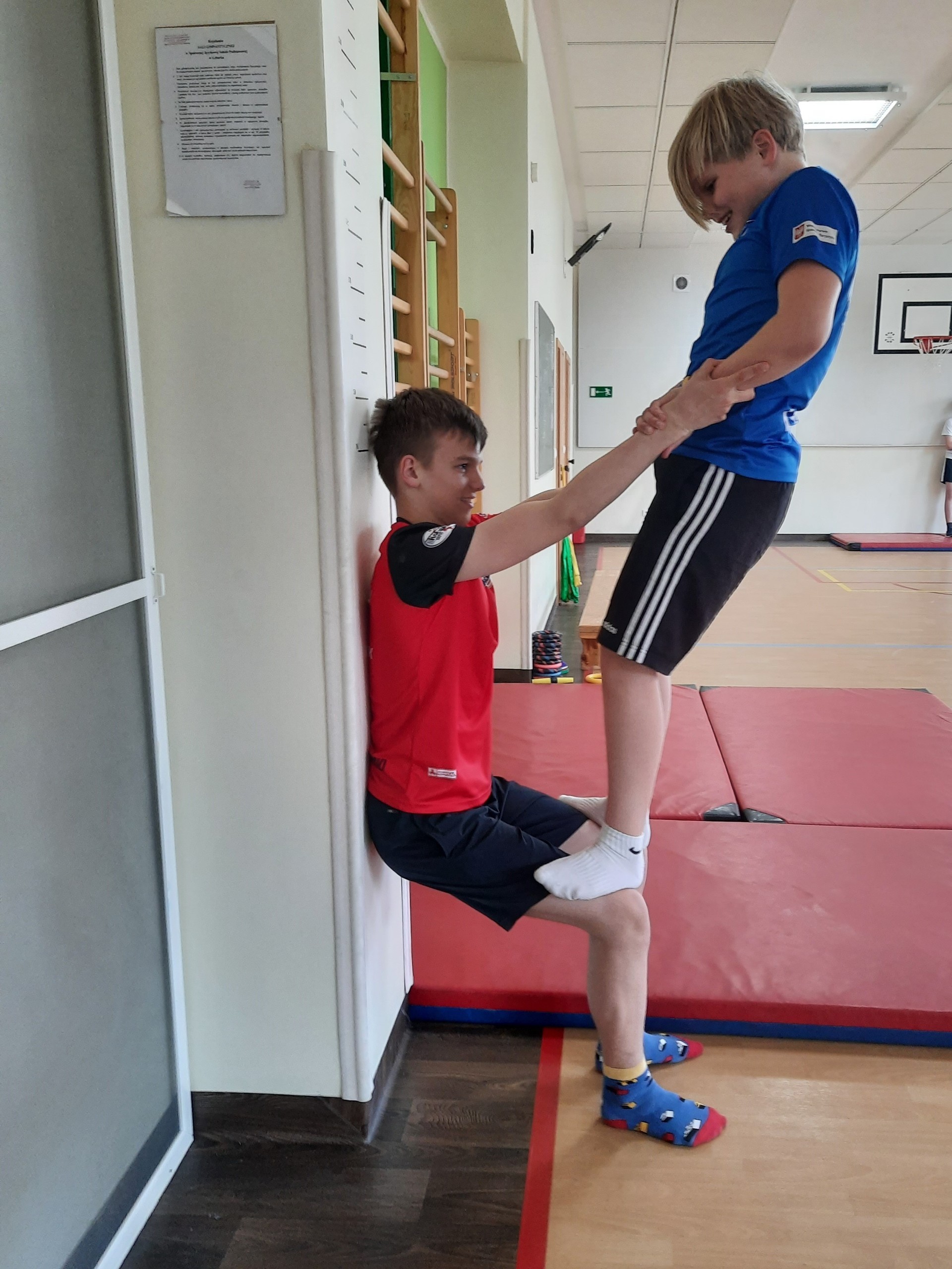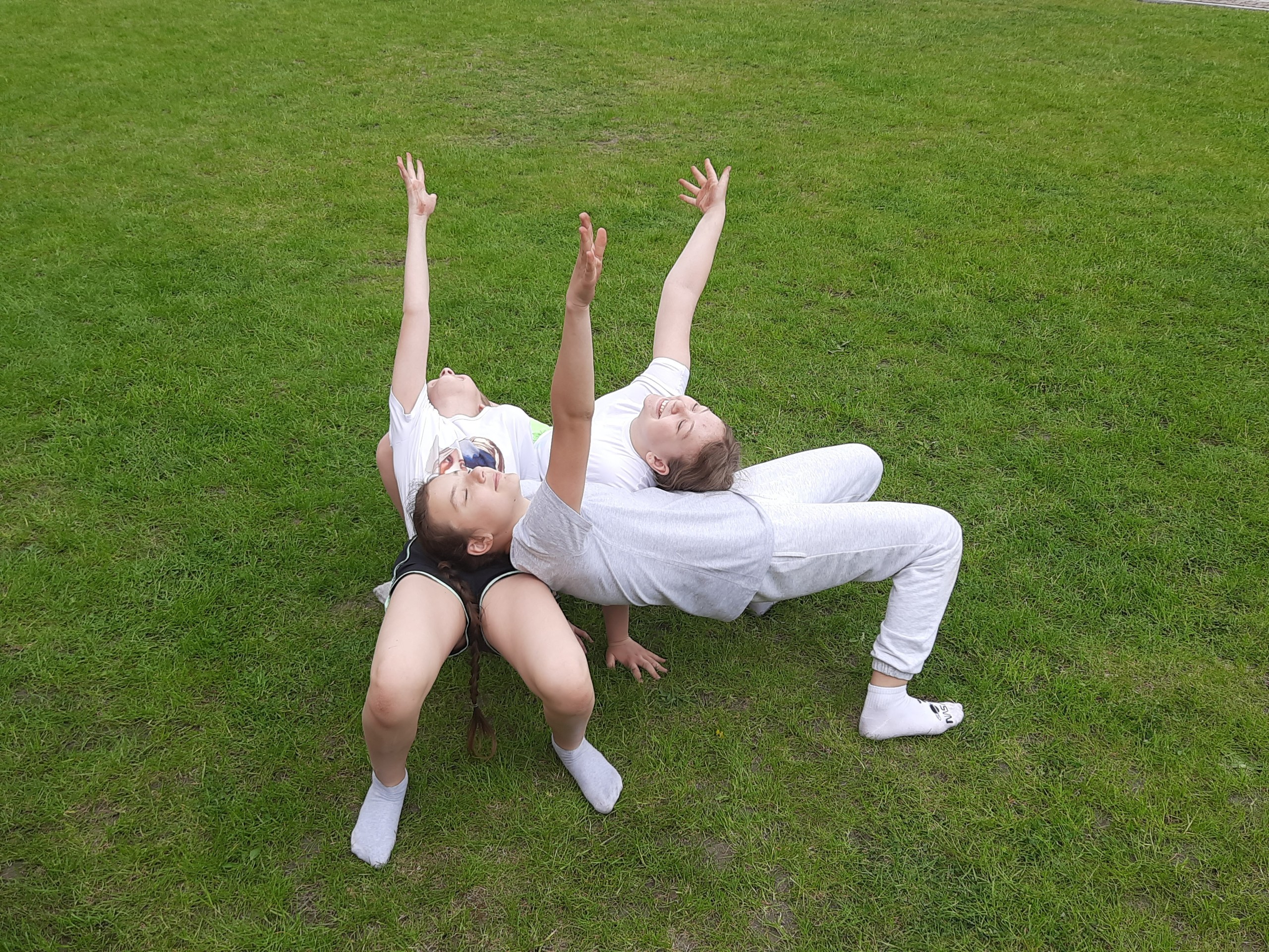 Na lekcjach wychowania fizycznego uczniowie klas 4 - 8 tworzyli różne piramidy gimnastyczne, te prostsze dwu i trzyosobowe, a także próbowali swoich sił w trudniejszych układach – piramidach wieloosobowych. Podczas takich zajęć trzeba wykazać się pomysłowością, aktywnością i kreatywnością. Działając w grupie uczniowie uczą się współpracować, polegać na sobie, wzajemnie się asekurować i wspierać, aby stworzyć wspaniały gimnastyczny pokaz. Jednocześnie  lekcje przynoszą wszystkim mnóstwo dobrej zabawy i śmiechu.