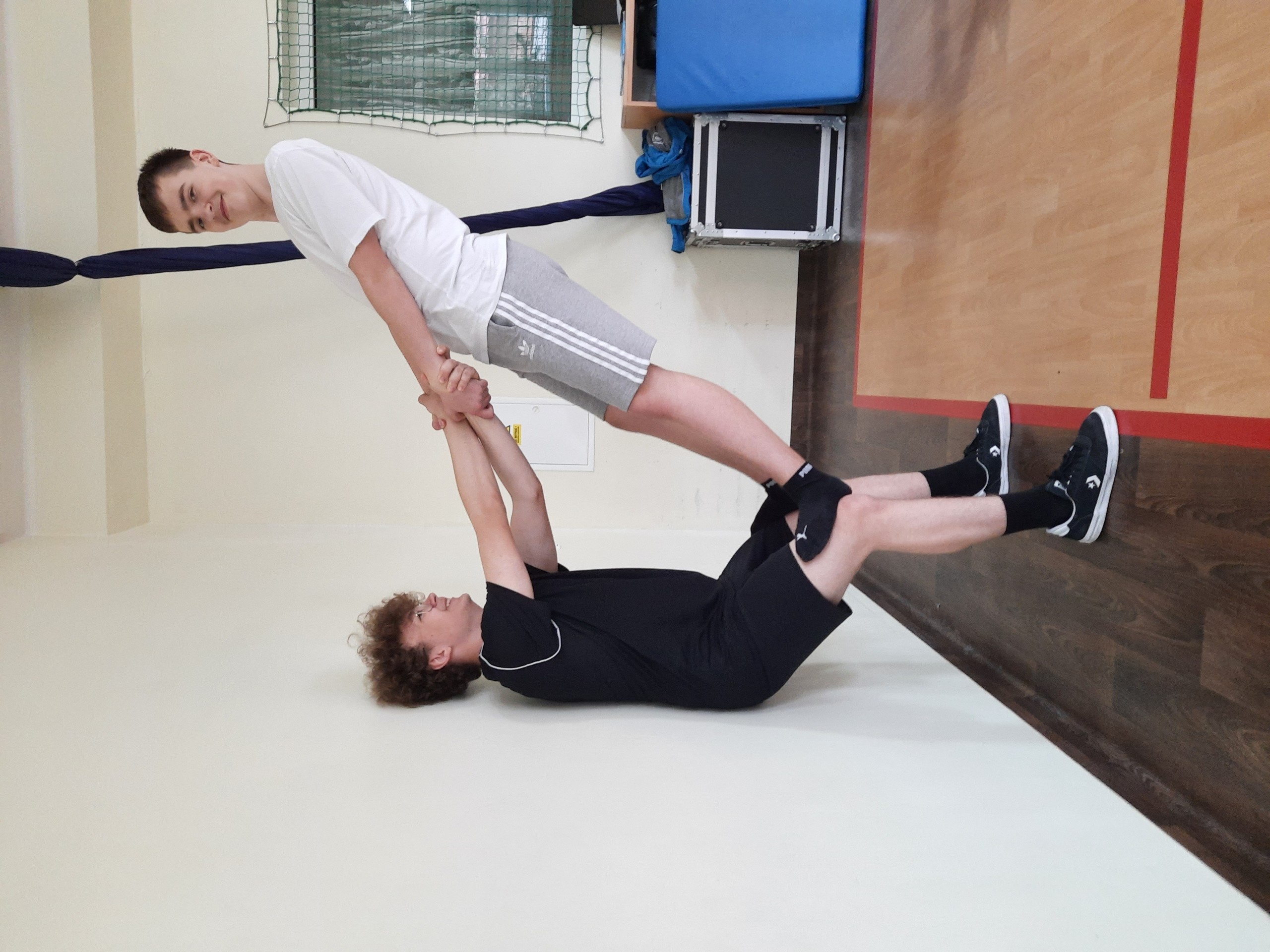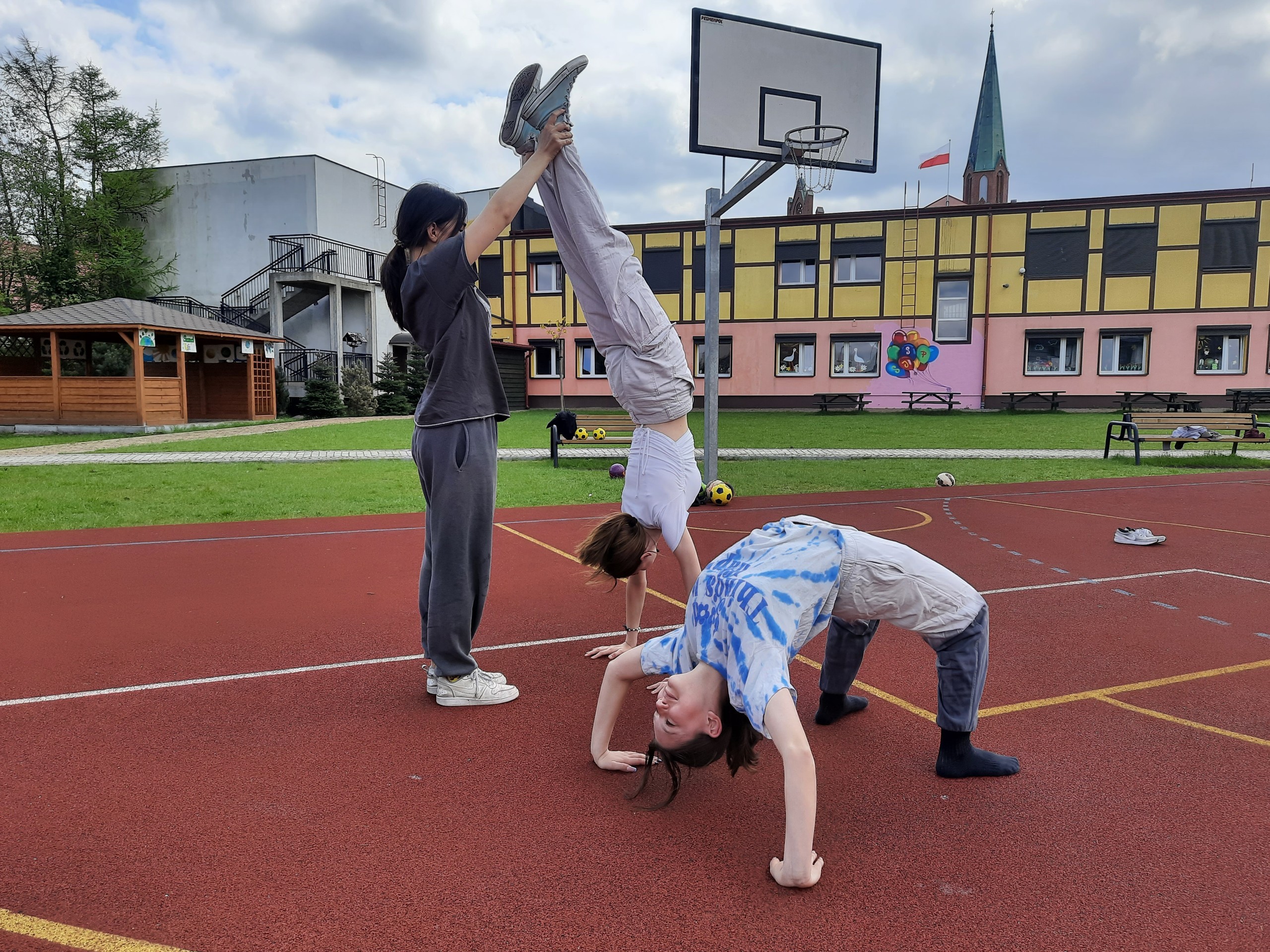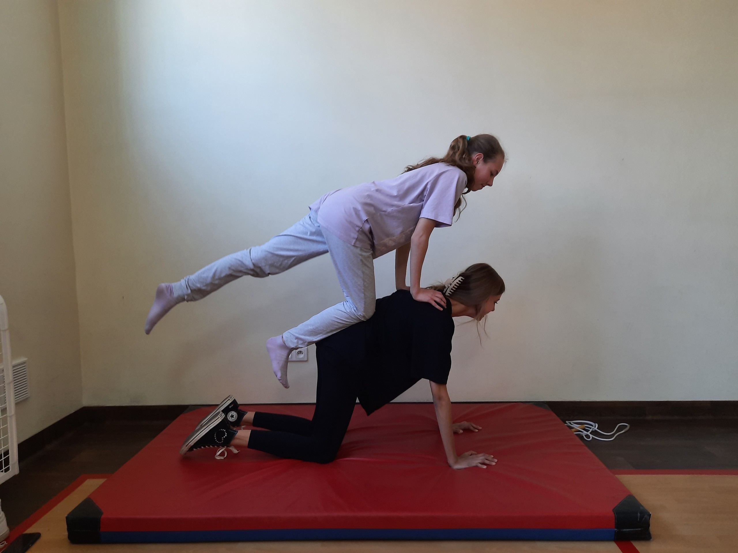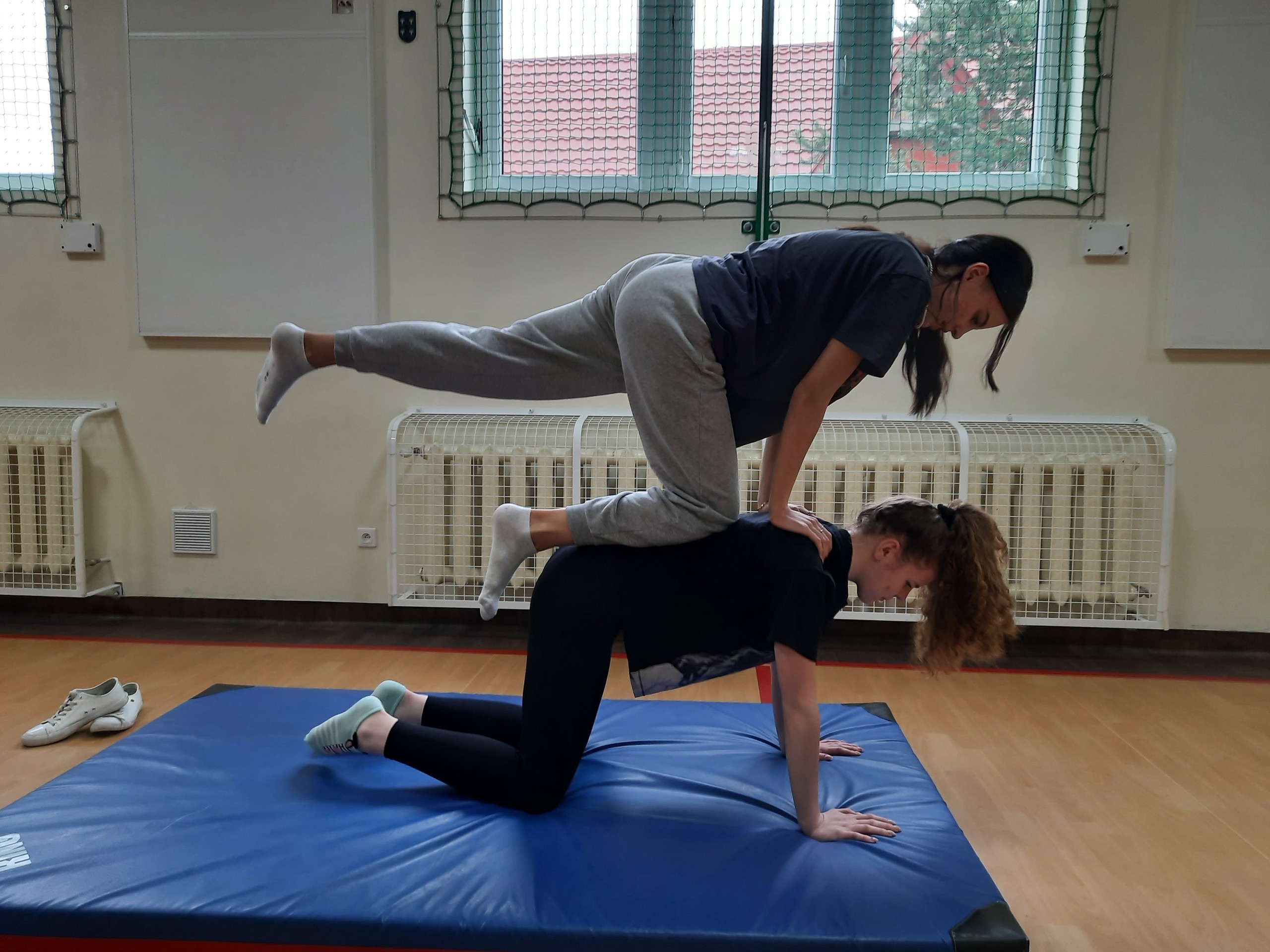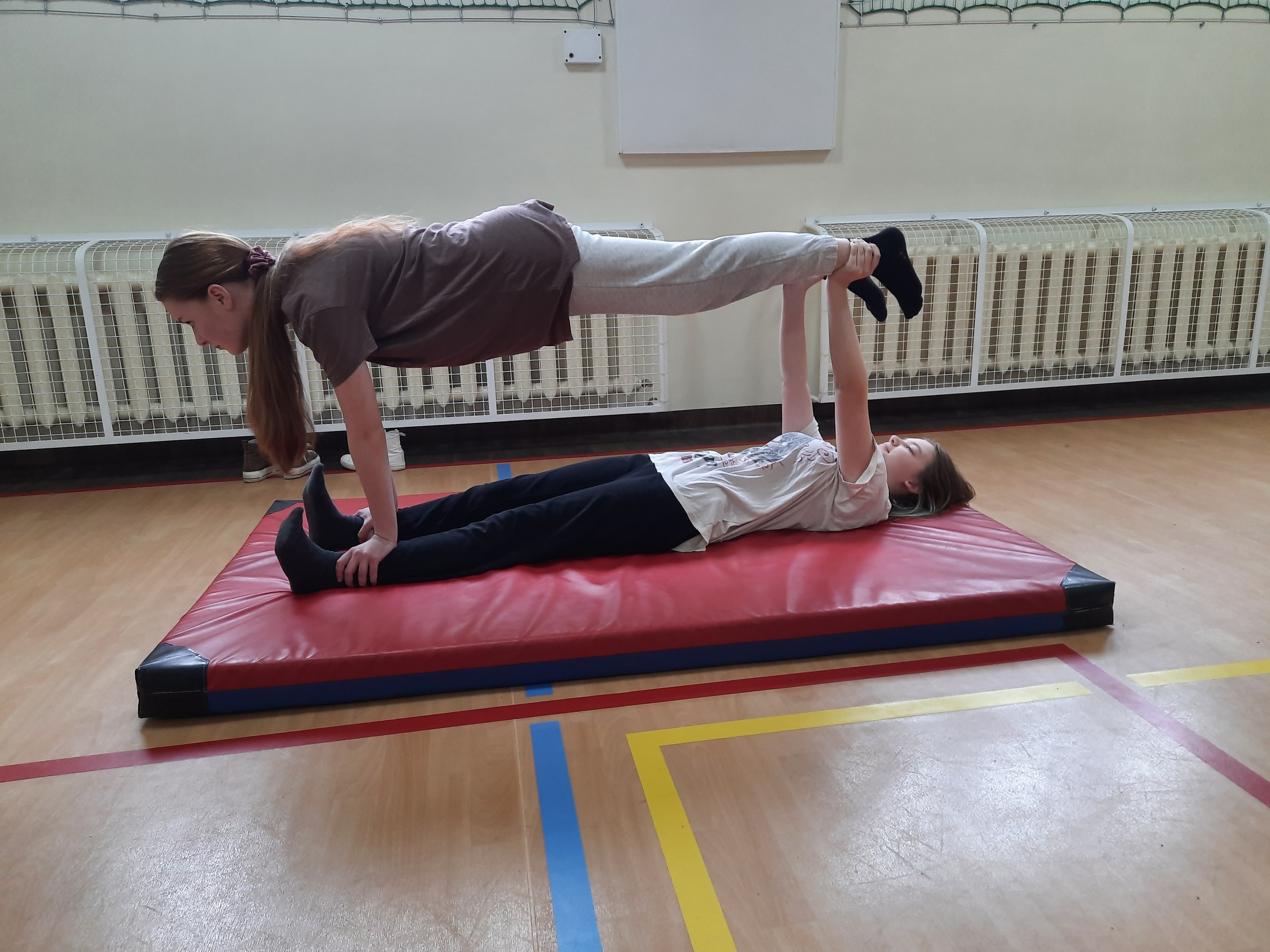 Na lekcjach wychowania fizycznego uczniowie klas 4 - 8 tworzyli różne piramidy gimnastyczne, te prostsze dwu i trzyosobowe, a także próbowali swoich sił w trudniejszych układach – piramidach wieloosobowych. Podczas takich zajęć trzeba wykazać się pomysłowością, aktywnością i kreatywnością. Działając w grupie uczniowie uczą się współpracować, polegać na sobie, wzajemnie się asekurować i wspierać, aby stworzyć wspaniały gimnastyczny pokaz. Jednocześnie  lekcje przynoszą wszystkim mnóstwo dobrej zabawy i śmiechu.