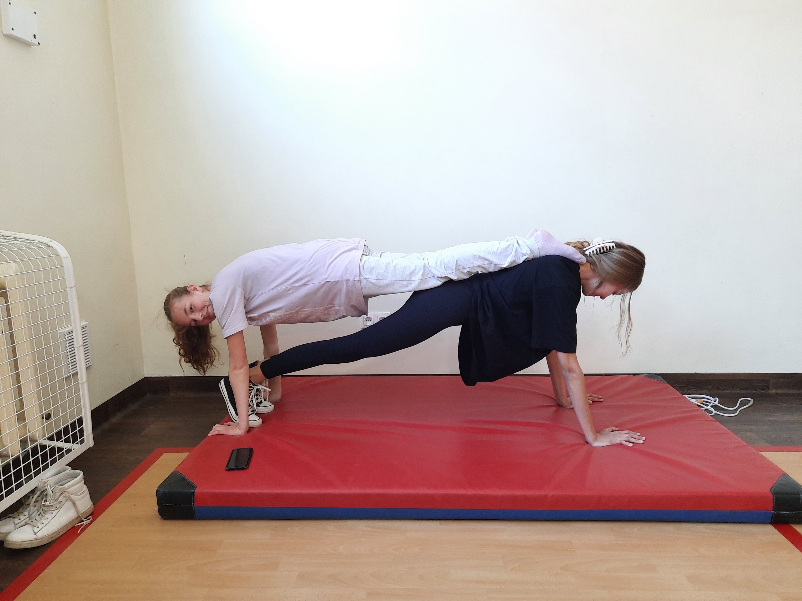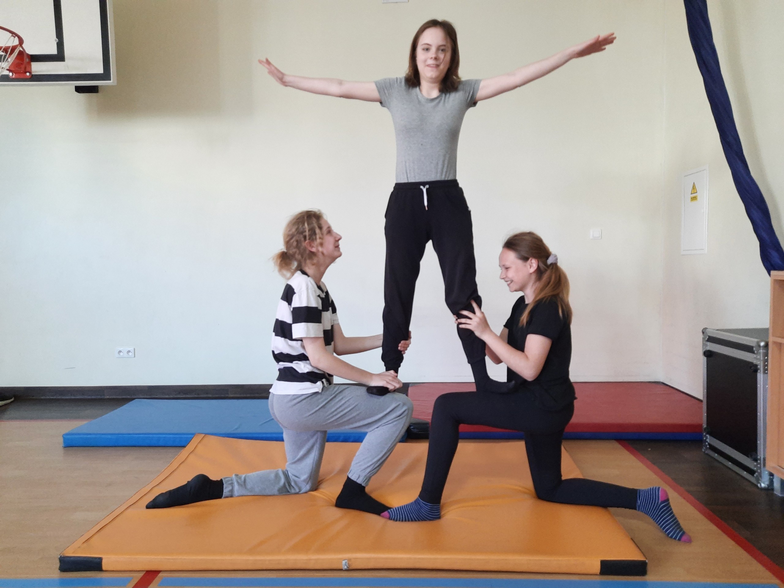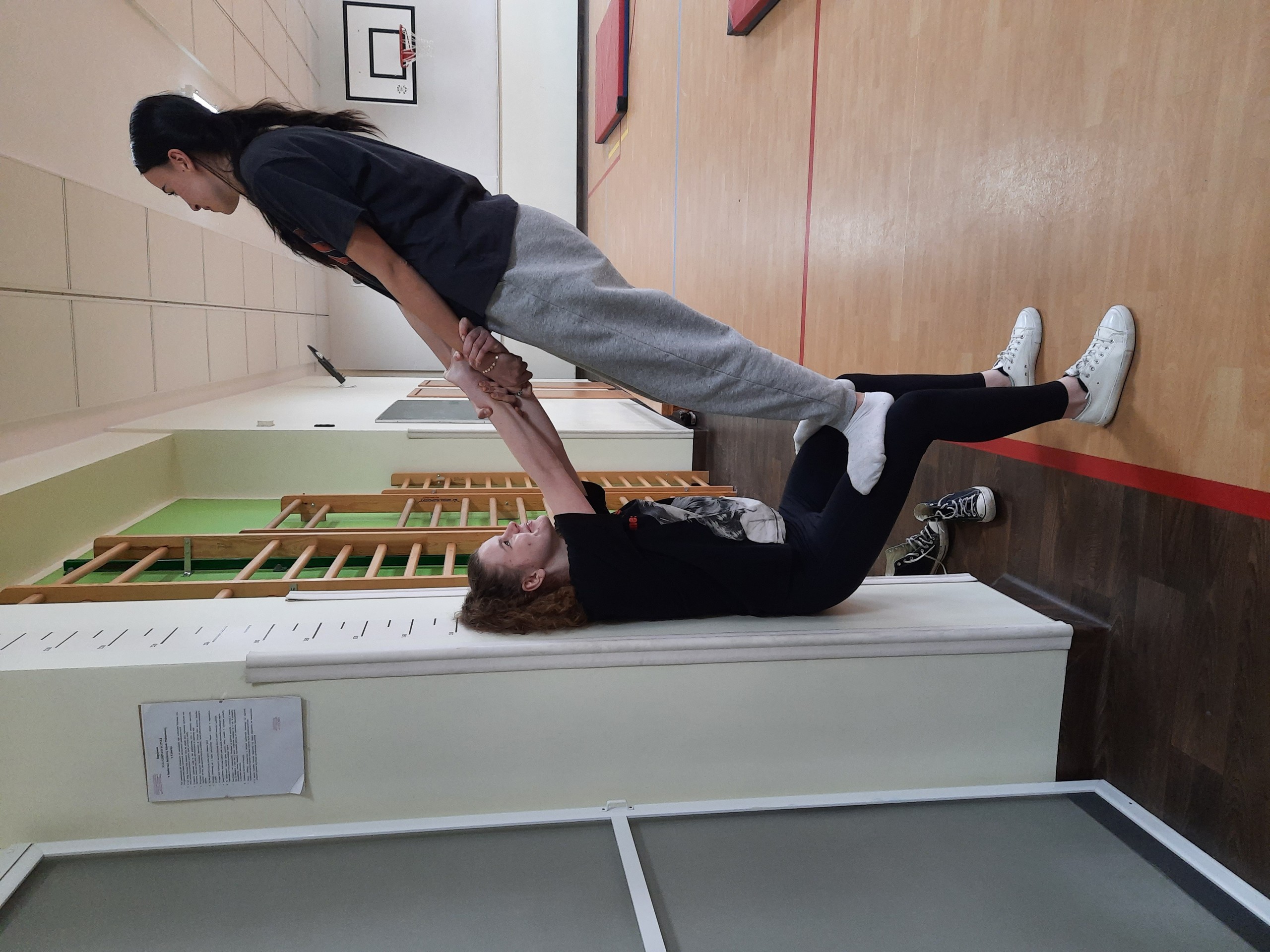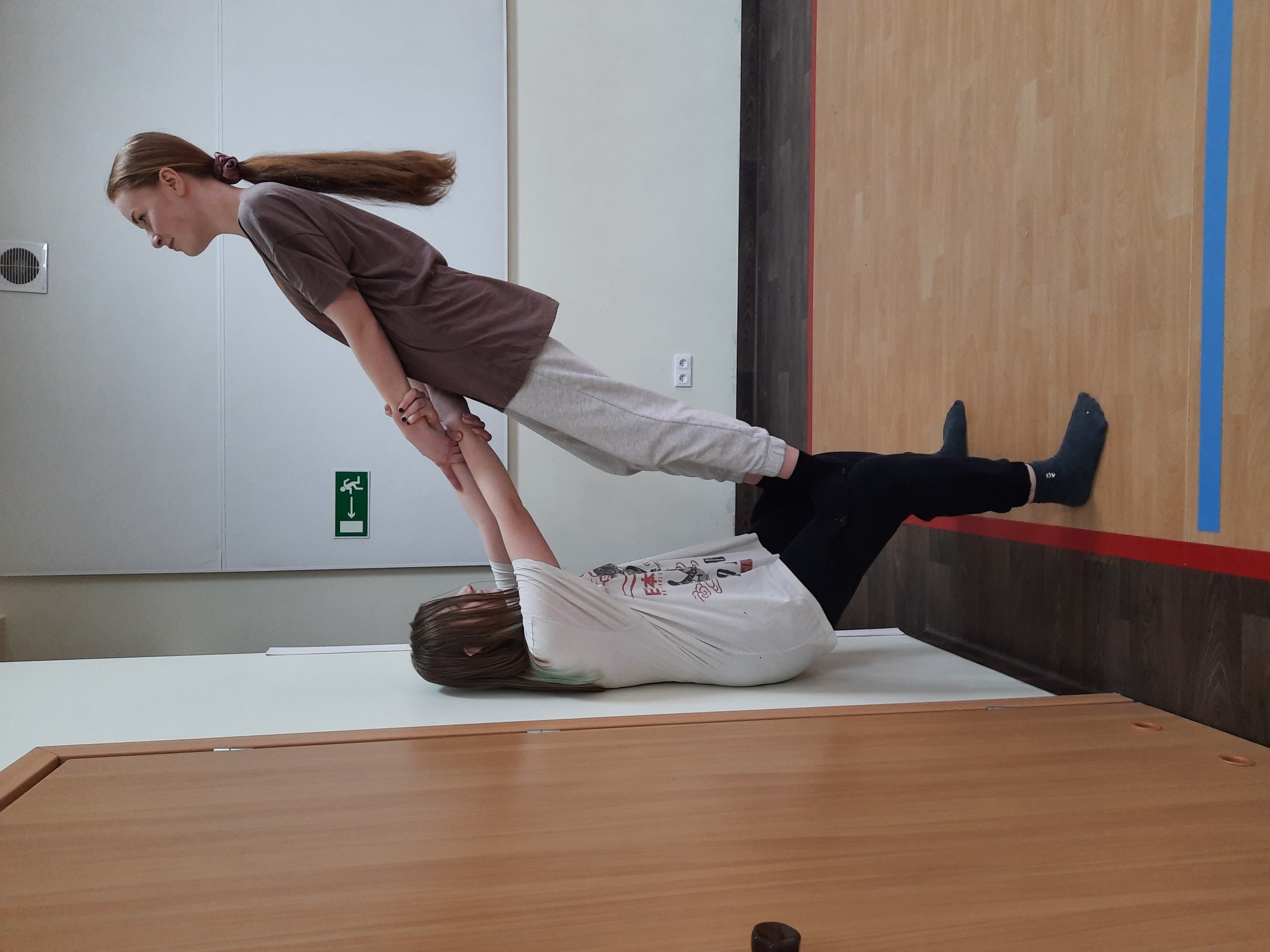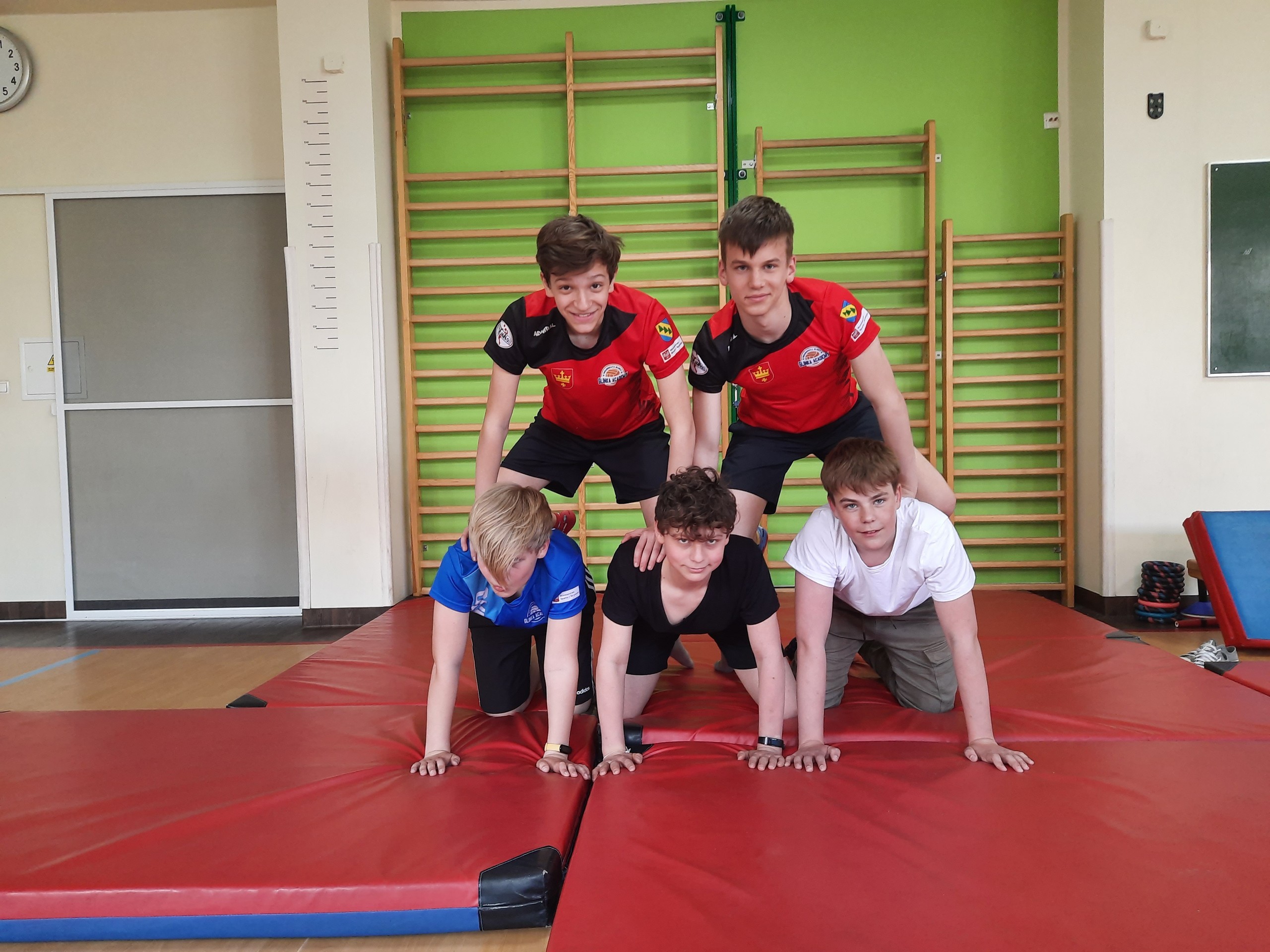 Na lekcjach wychowania fizycznego uczniowie klas 4 - 8 tworzyli różne piramidy gimnastyczne, te prostsze dwu i trzyosobowe, a także próbowali swoich sił w trudniejszych układach – piramidach wieloosobowych. Podczas takich zajęć trzeba wykazać się pomysłowością, aktywnością i kreatywnością. Działając w grupie uczniowie uczą się współpracować, polegać na sobie, wzajemnie się asekurować i wspierać, aby stworzyć wspaniały gimnastyczny pokaz. Jednocześnie  lekcje przynoszą wszystkim mnóstwo dobrej zabawy i śmiechu.