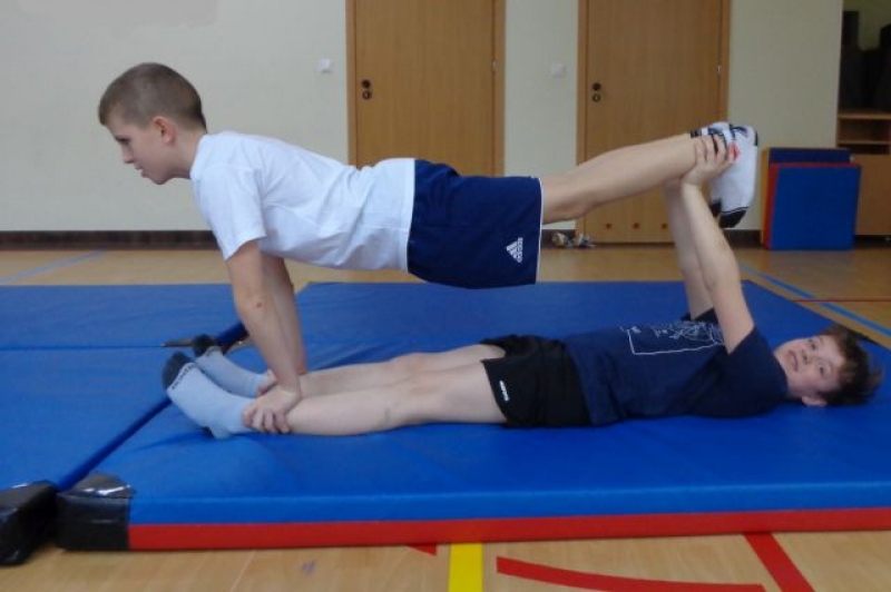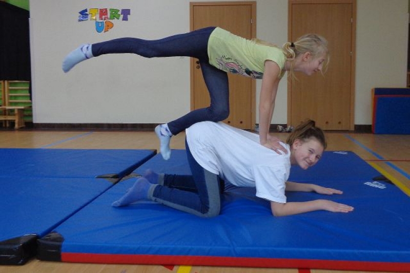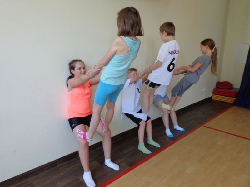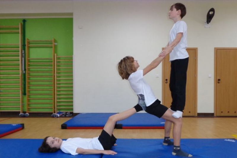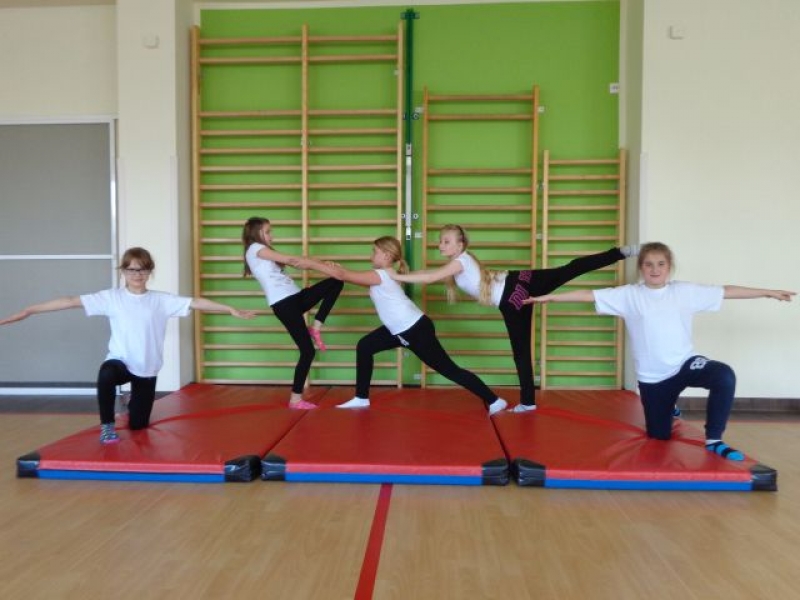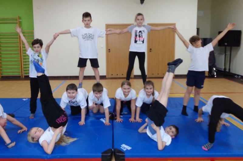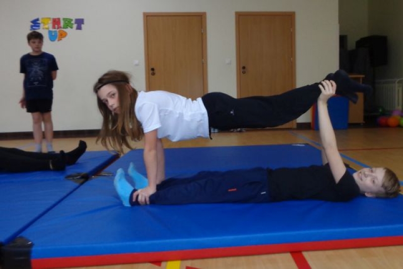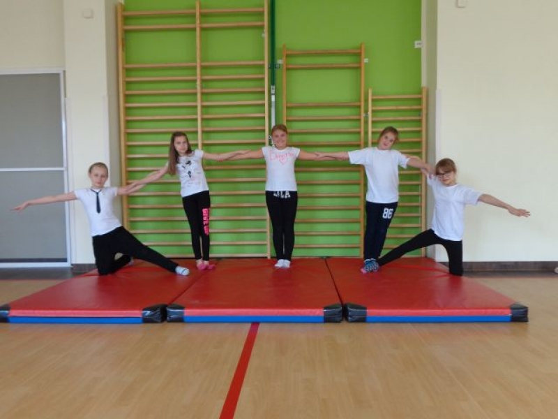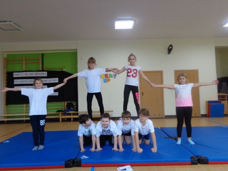 Na lekcjach wychowania fizycznego w ramach zajęć z gimnastyki uczniowie klas IV-VI wykonują piramidy, które są jedną z odmian ćwiczeń akrobatycznych o charakterze równoważno-statycznym. Ćwiczenia te są atrakcyjne dla ćwiczących, gdyż wprowadzają elementy nowe oraz wykorzystują już znane. W trakcie zajęć uczniowie doskonalą elementy gimnastyczne, wykazują się pomysłowością, ale przede wszystkim uczą się współdziałać w grupie, wzajemnie się asekurować i polegać na sobie. Uczniowie wykonywali proste piramidy dwu i trzyosobowe, a także próbowali swoich sił w najtrudniejszych układach – piramidach wieloosobowych.