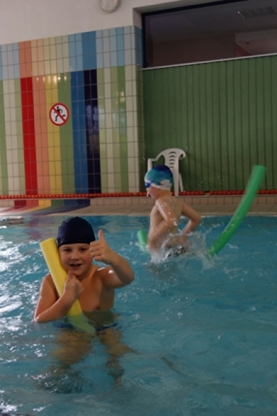 15 grudnia uczniowie klas I-III zakończyli cykl zajęć wychowania fizycznego, realizowanych w tym roku szkolnym na basenie. Od września dzieci uczyły się i doskonaliły różne elementy pływania. Najmłodsi oswajali się z wodą, ucząc się m. in. zanurzania głowy i wydechu do wody, ćwiczeń wypornościowych, pracy nóg do kraula i grzbietu. Starsi doskonalili zdobyte wcześniej umiejętności i uczyli się dokładanek do stylu dowolnego i grzbietowego. Wszyscy uczniowie poczynili ogromne postępy.