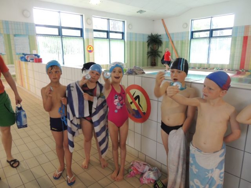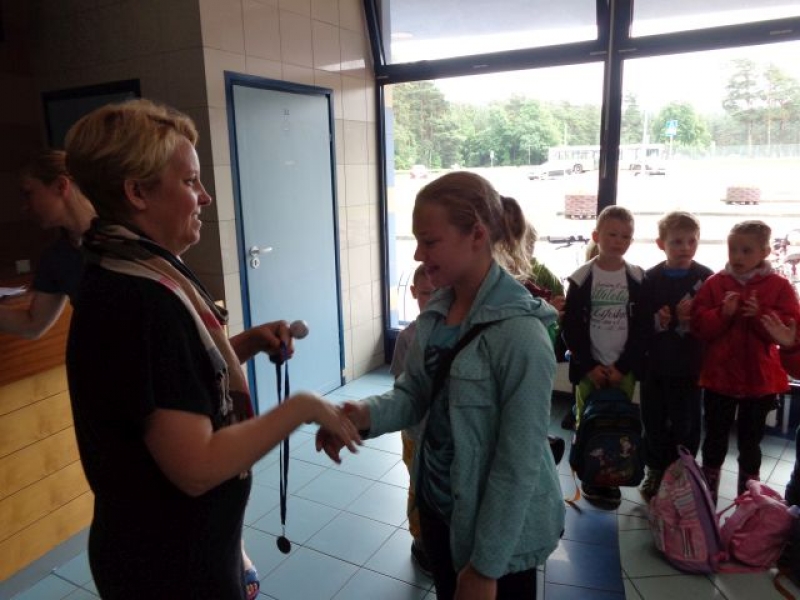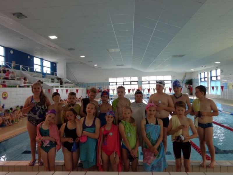W dniu 23 czerwca 2015r. na pływalni miejskiej „Rafa” odbyły się Szkolne Zawody Pływackie. Każdy z uczniów startował w 3 konkurencjach. Najmłodsi zmagali się na małej niecce basenu, transportując krążek na desce, pływając na plecach z makaronem i bawiąc się w poławiaczy skarbów. Starsi uczniowie (II-V) pływali na dużym basenie z makaronem, z deską i bez przyborów. Sześć pierwszych miejsc, w każdej konkurencji, było punktowanych, a o zdobyciu medalu decydowała suma uzyskanych punktów. Wśród klas IV i V w klasyfikacji przewidziano podział na dziewczęta i chłopców, ale uczennice z klas IV i V liczone były razem, podobnie jak chłopcy tych klas.